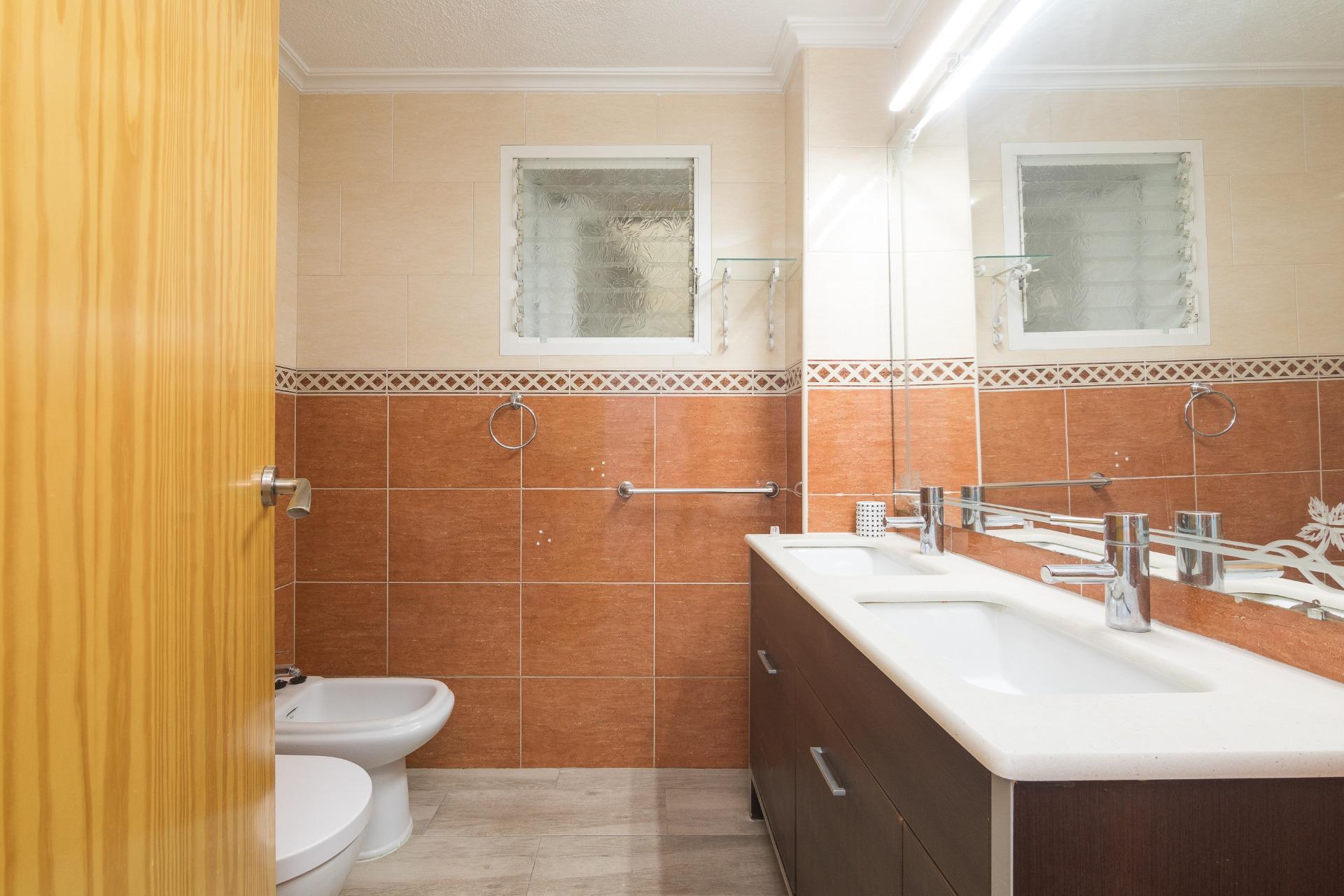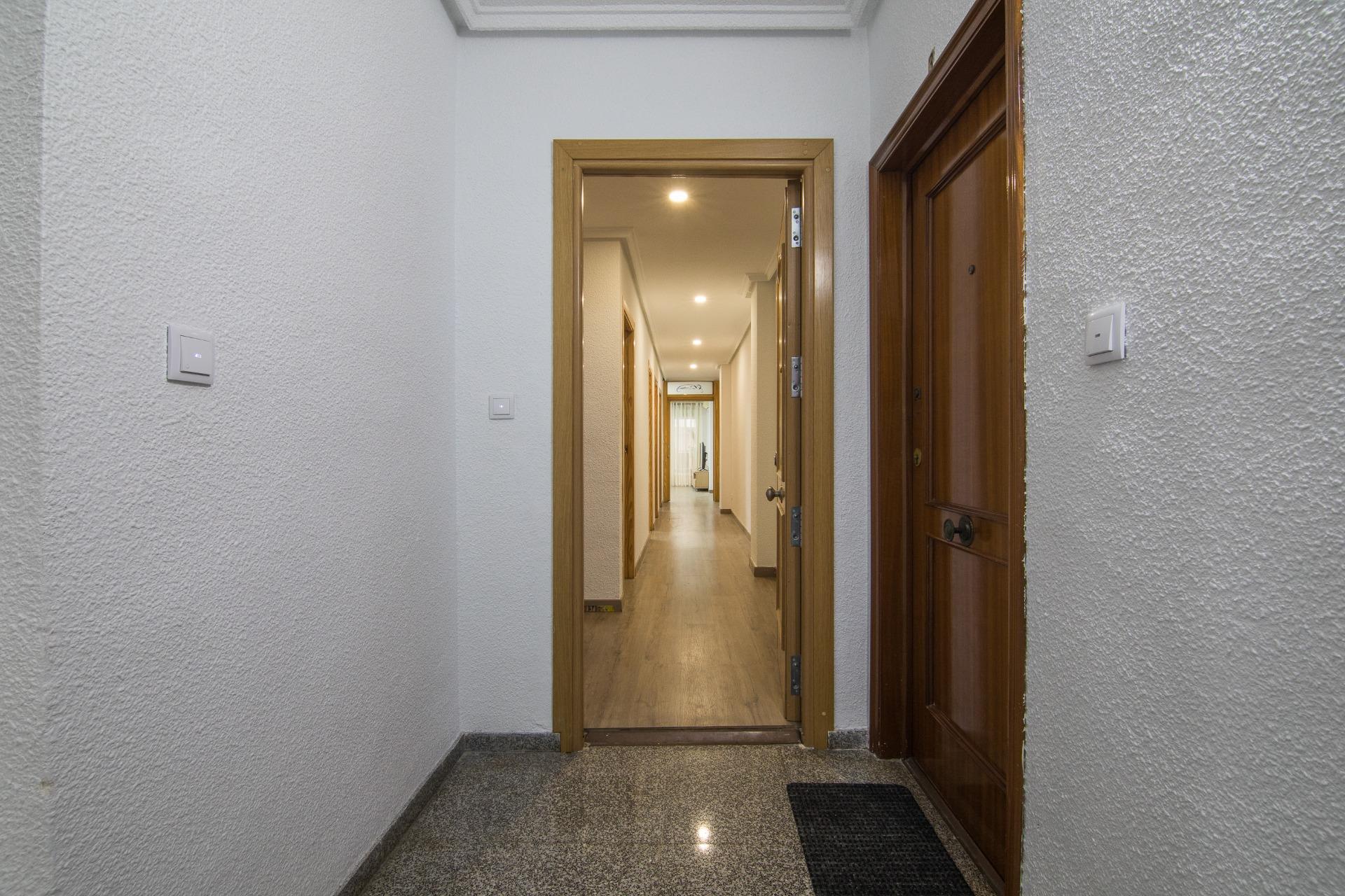 La vivienda originalmente disponia de 3 amplios dormitorios, que actualmente se añadió al salón consiguiendo un enorme salón. Hay posibilidad de volver a disponer el tercer dormitorio con solo levantar un tabique.
