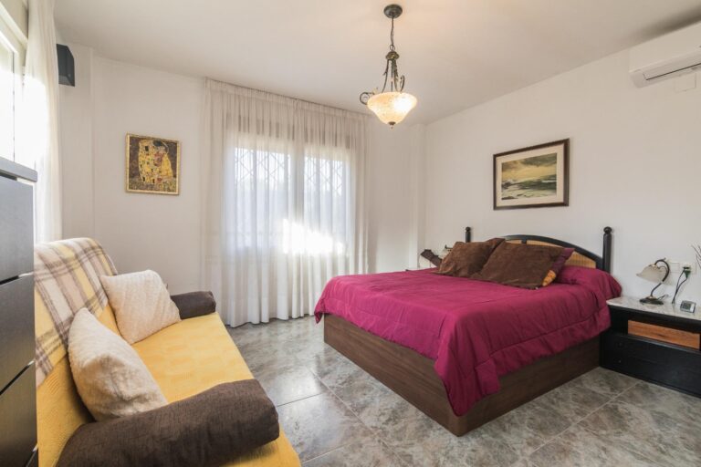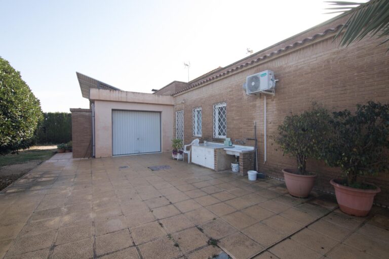 Presentamos este espectacular chalet ubicado en la tranquila zona de Alzabares, a un paso del casco urbano, dentro del término municipal de Elche. Con una generosa superficie construida de 480 m² y un área útil de 210 m², esta propiedad destaca por su buen estado y confortabilidad. La vivienda cuenta con cuatro amplias habitaciones dobles, todo en una planta; más un espacio extra en planta alta, a modo de comodín, para que lo destines a tus necesidades familiares o como espacio adicional para invitados. Además, dispone de dos baños completos y un aseo para mayor comodidad, armarios empotrados en las habitaciones y pasillo, vestidor en la habitación principal.
