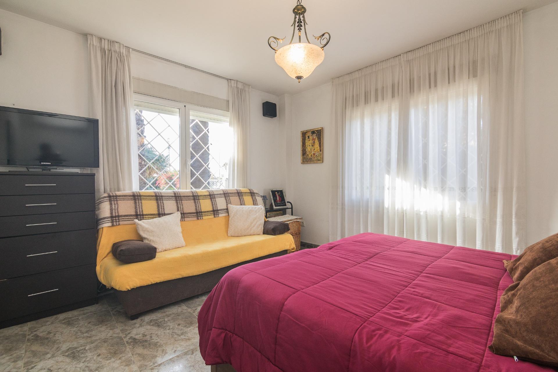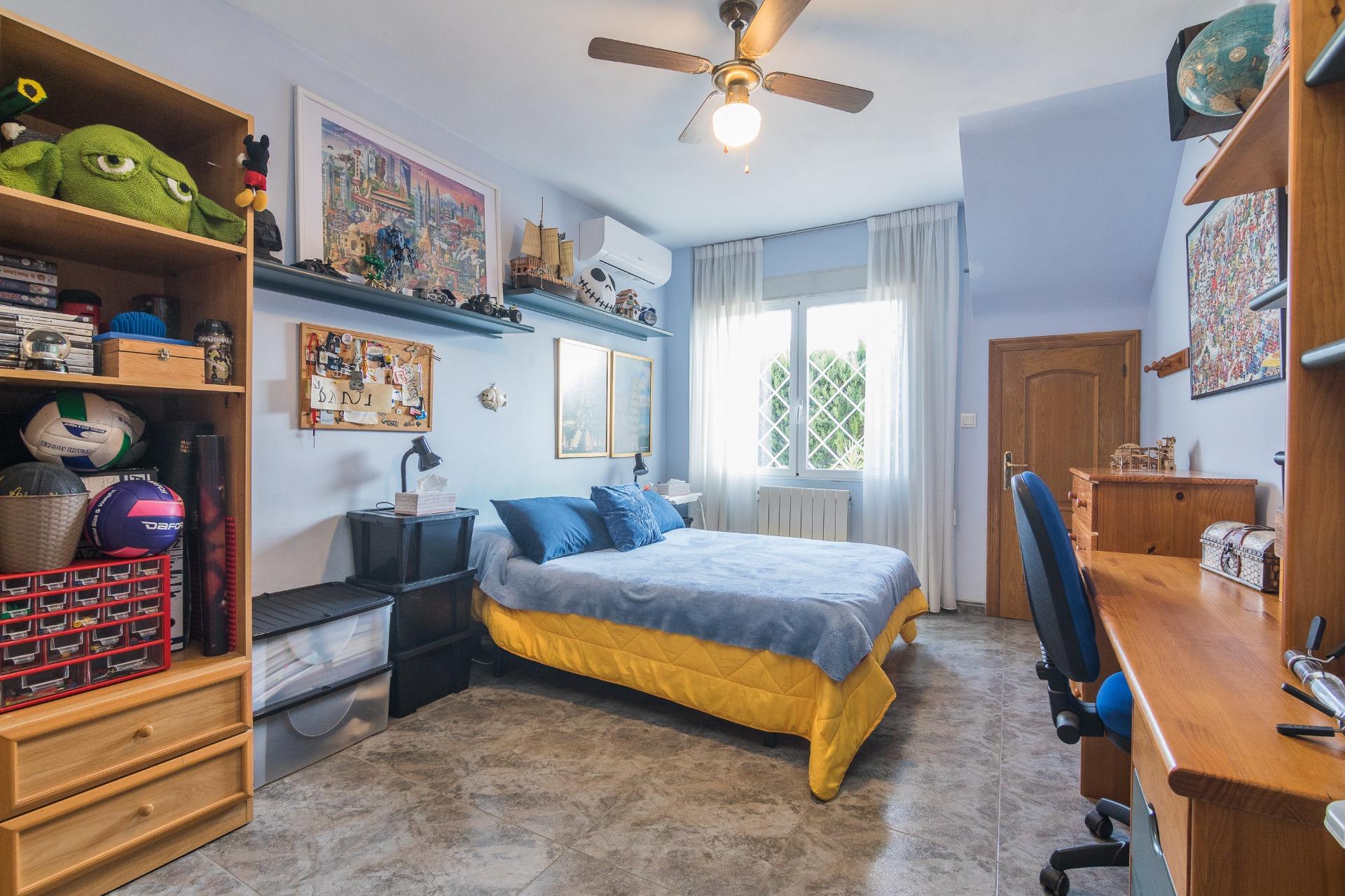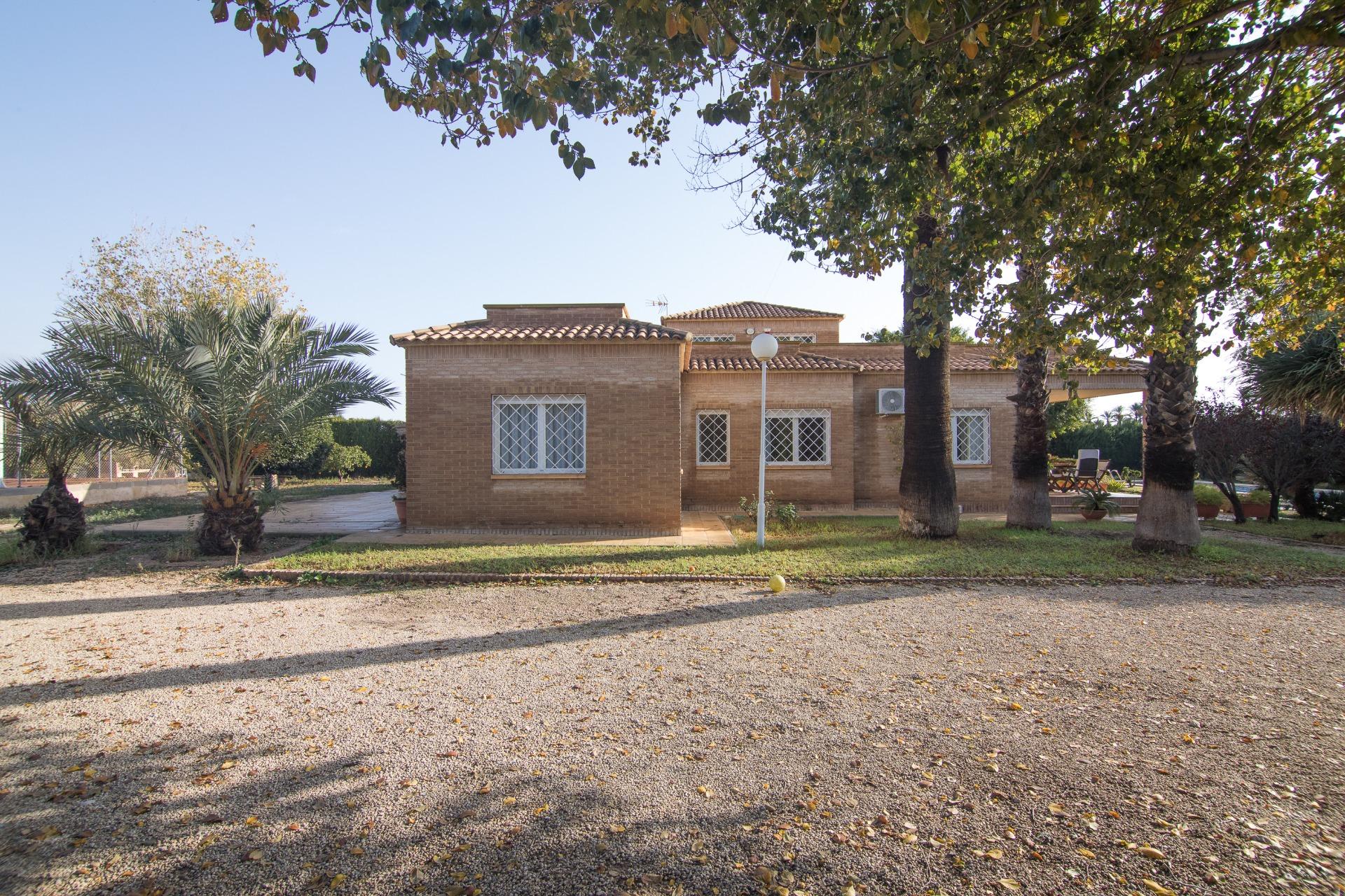 Presentamos este espectacular chalet ubicado en la tranquila zona de Alzabares, a un paso del casco urbano, dentro del término municipal de Elche. Con una generosa superficie construida de 480 m² y un área útil de 210 m², esta propiedad destaca por su buen estado y confortabilidad. La vivienda cuenta con cuatro amplias habitaciones dobles, todo en una planta; más un espacio extra en planta alta, a modo de comodín, para que lo destines a tus necesidades familiares o como espacio adicional para invitados. Además, dispone de dos baños completos y un aseo para mayor comodidad, armarios empotrados en las habitaciones y pasillo, vestidor en la habitación principal.