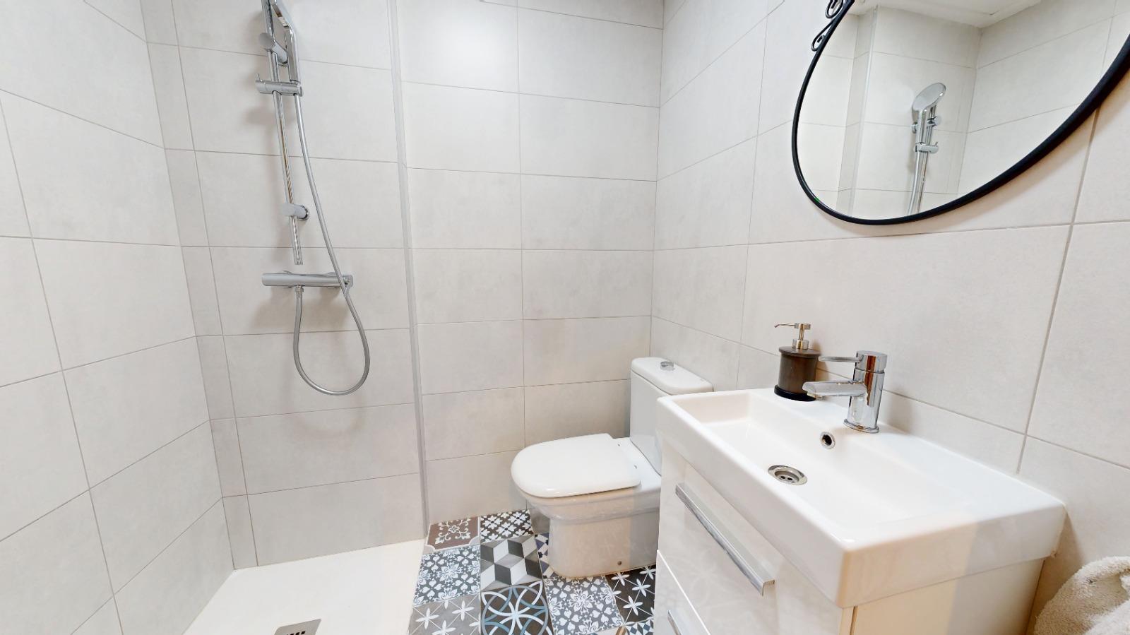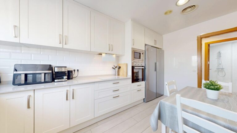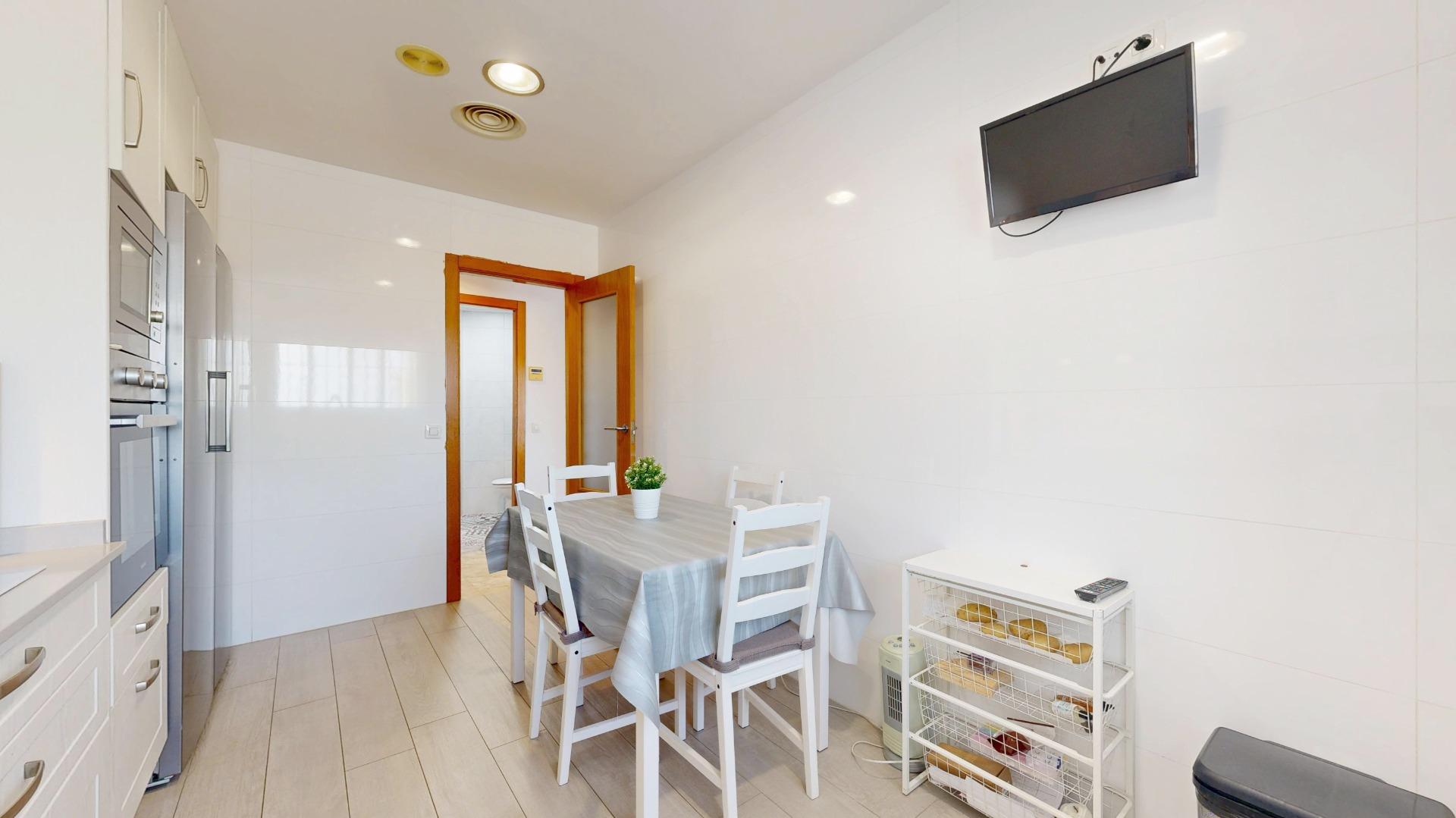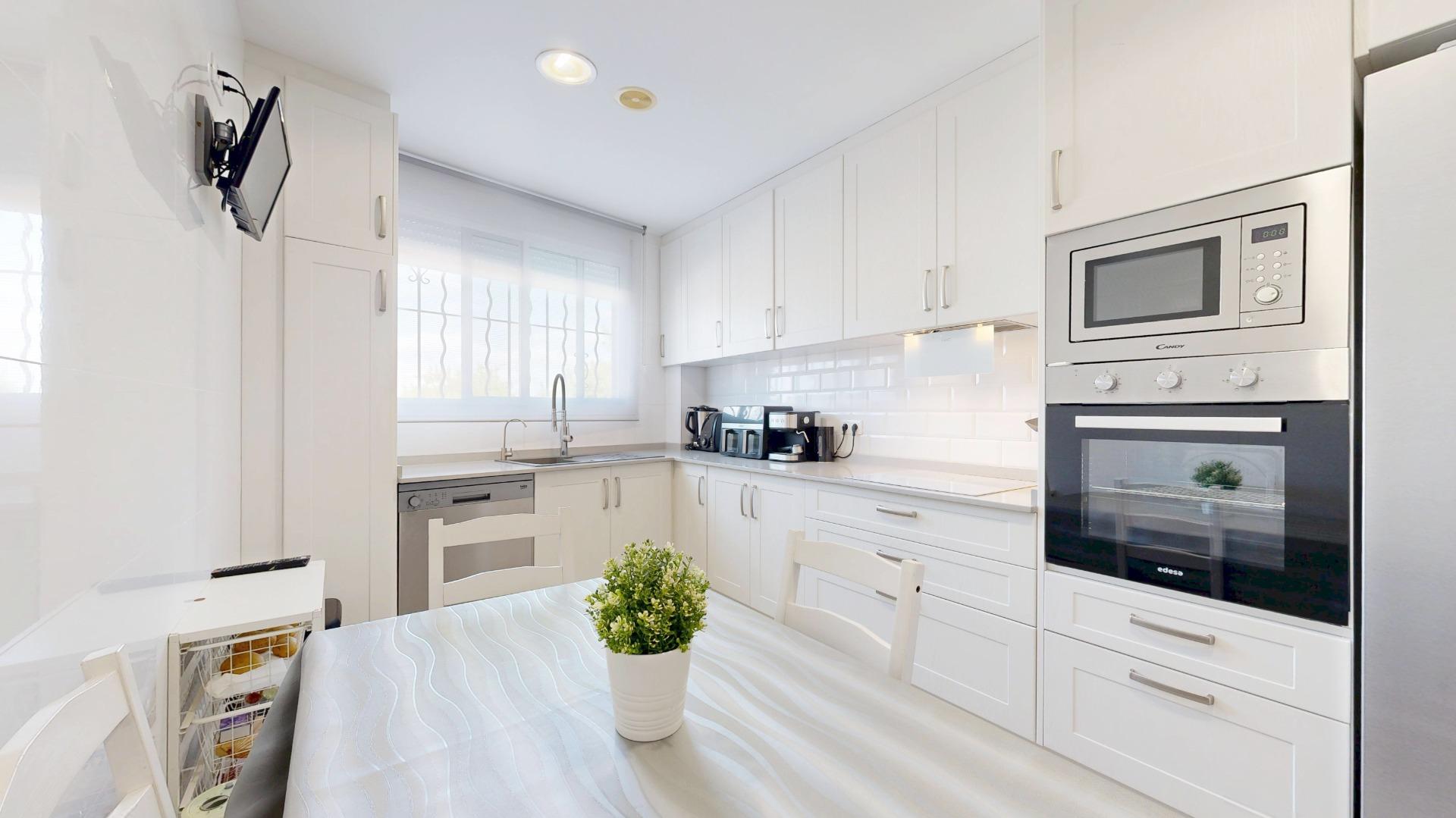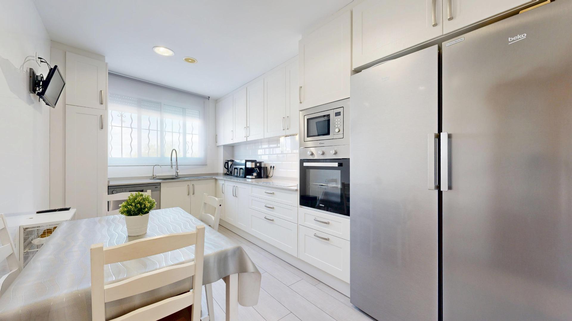 Al llegar al inmueble nos encontramos una bonita entrada privada, que nos da acceso a la planta principal del inmueble, en su interior, nos recibe, un amplio salón-comedor con grandes ventanales, lo que hace un espacio muy luminoso y acogedor. Una amplia cocina independiente, totalmente equipada, reformada íntegramente con exquisito gusto, provista de azulejo estilo metro, bancada de silestone, electrodomésticos encastrados, preciosa armariada con gran capacidad de almacenaje y una amplia zona para comer. En esta misma planta se ubica una habitación triple y un baño completo, con azulejo estilo hidráulico, provisto de ducha, al fondo de esta planta tenemos un hall, que nos da acceso a la planta inferior y superior del inmueble.