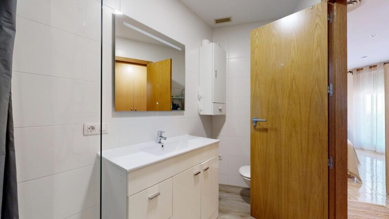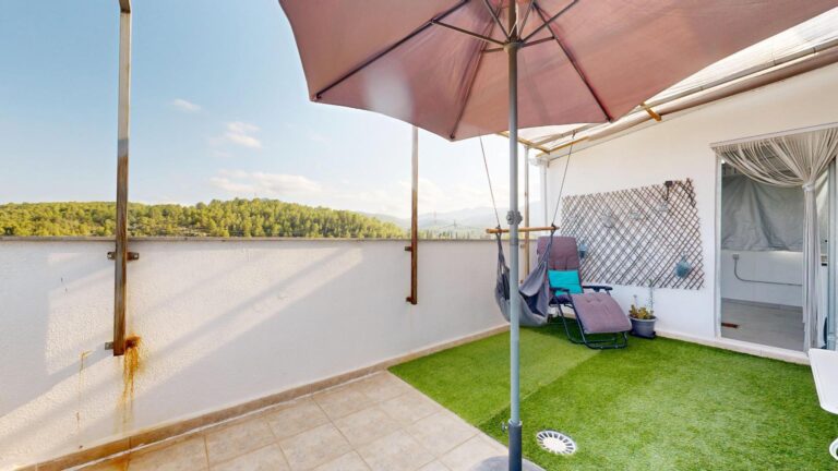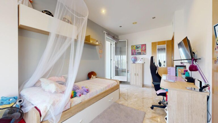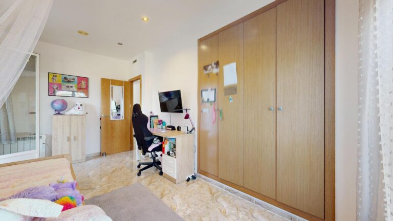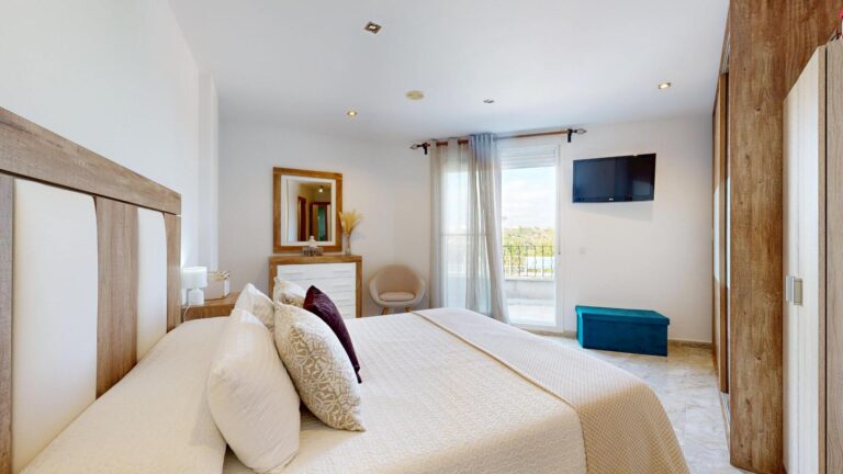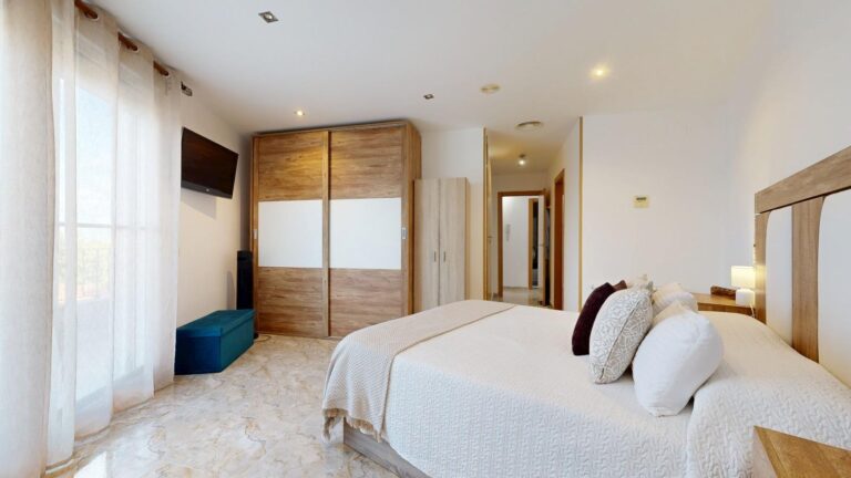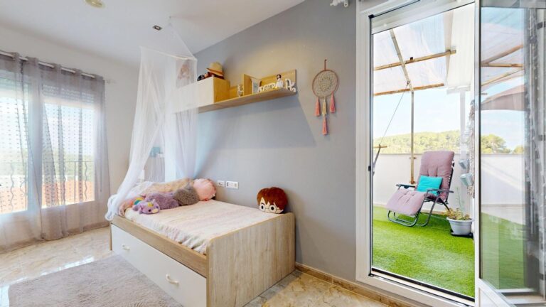 La planta superior del inmueble, consta de tres dormitorios dobles, todos ellos provistos de armarios empotrados vestidos, dos baños completos uno de ellos en suite provisto de ducha y el segundo baño provisto de bañera de hidromasaje, el dormitorio principal tiene acceso a un amplio balco/terraza, con espacio suficiente para zona de descanso al aire libre. En esta planta encontramos también otra amplia terraza/ solárium y una lavandería lo que lo hace mas funcional, dando servicio a la zona de noche.