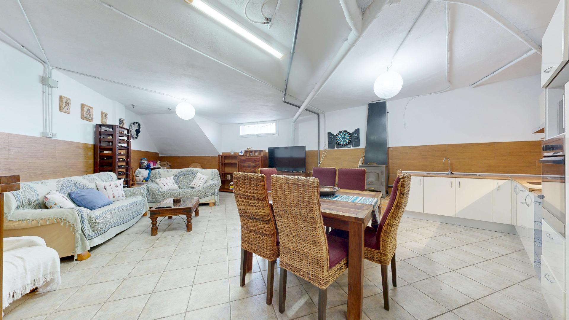 La planta baja (sótano) consta de un amplio espacio de comedor/ zona de Juegos, cocina abierta, y aseo, lo que lo hace un espacio perfecto para tener un apartamento independiente o un espacio extra de ocio.