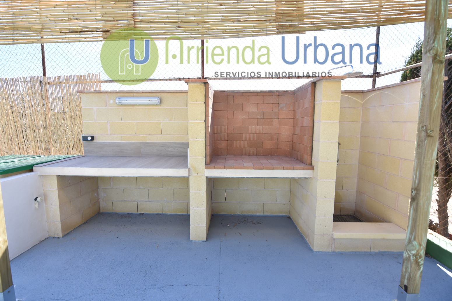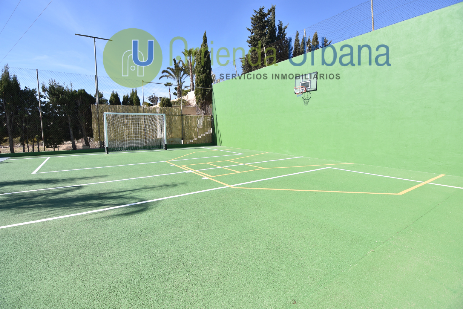 Tiene 3 habitaciones, un baño con plato de ducha, salón comedor con cocina americana y un espacio deportivo en la parcela con Piscina privada, barbacoa además de dos plazas de garaje. Aire acondicionado y calefacción en salón comedor.