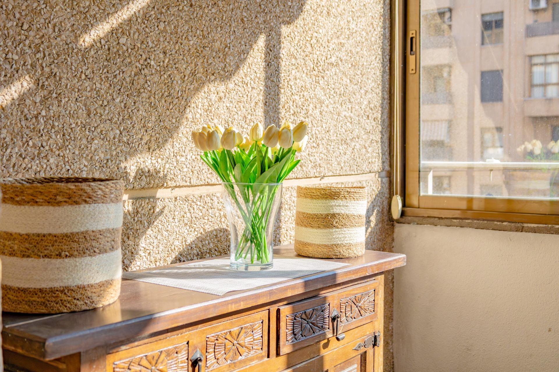 Al entrar, un amplio hall con armario empotrado actúa como eje central de la vivienda y conecta de forma natural con el gran salón-comedor, un espacio muy luminoso y acogedor con salida directa a un balcón exterior, perfecto para colocar una mesa, disfrutar del sol o compartir momentos con familia y amigos.