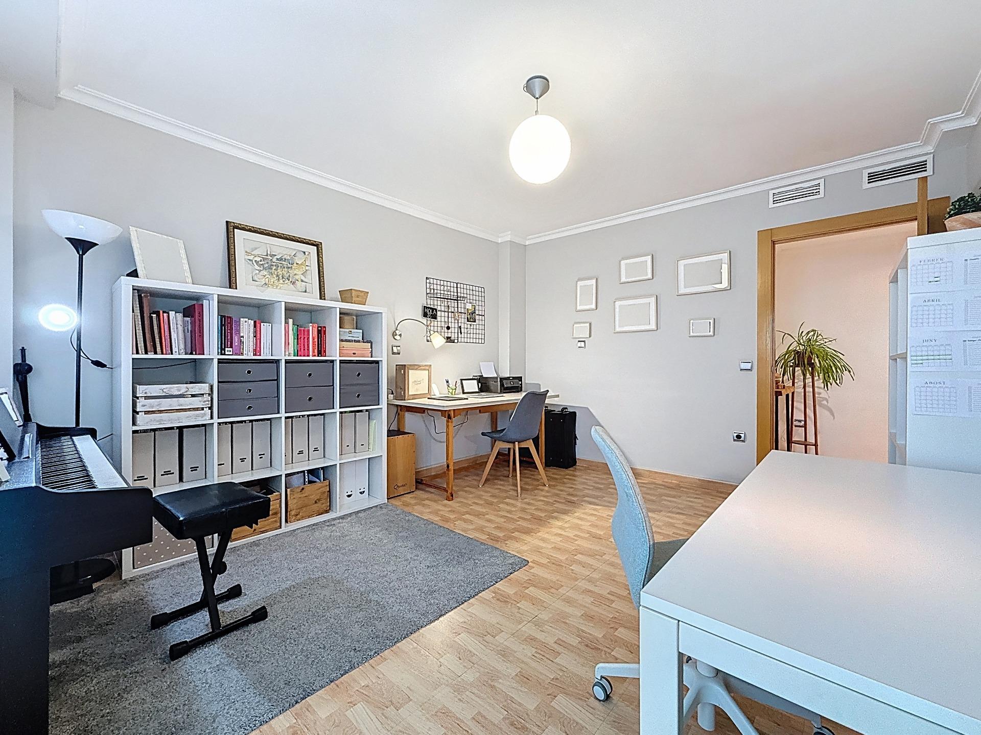 La zona de noche se distribuye en 3 dormitorios, con 2 habitaciones dobles y 1 individual. El dormitorio principal ofrece un espacio especialmente cómodo, con un amplio vestidor y baño en suite con ducha. La segunda habitación doble también tiene muy buenas dimensiones, y la habitación individual puede adaptarse perfectamente como dormitorio juvenil, despacho o zona de estudio.