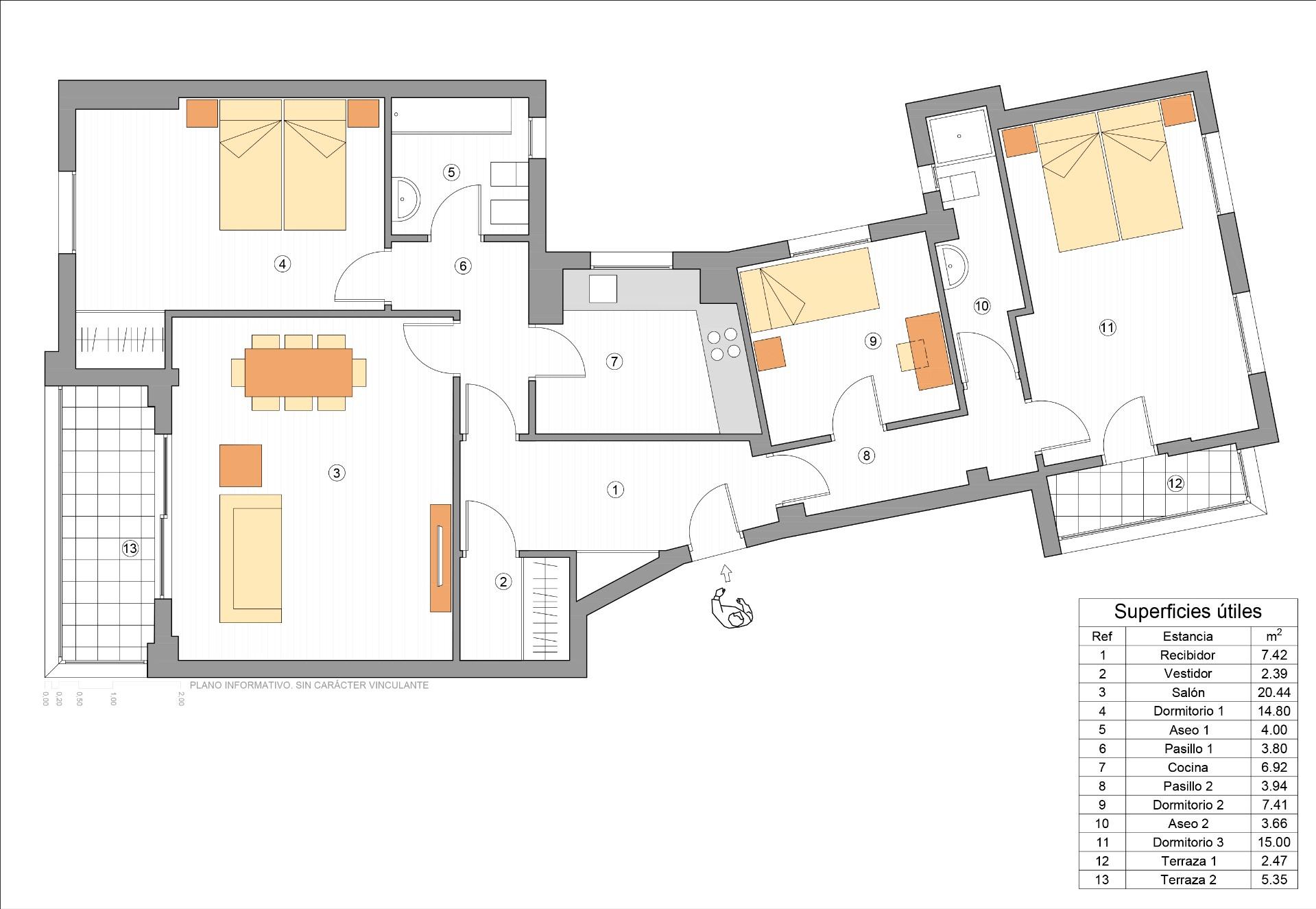 Con una generosa superficie construida de 124 m² y orientación Sur, este inmueble se destaca por su abundante luz natural durante todo el día.