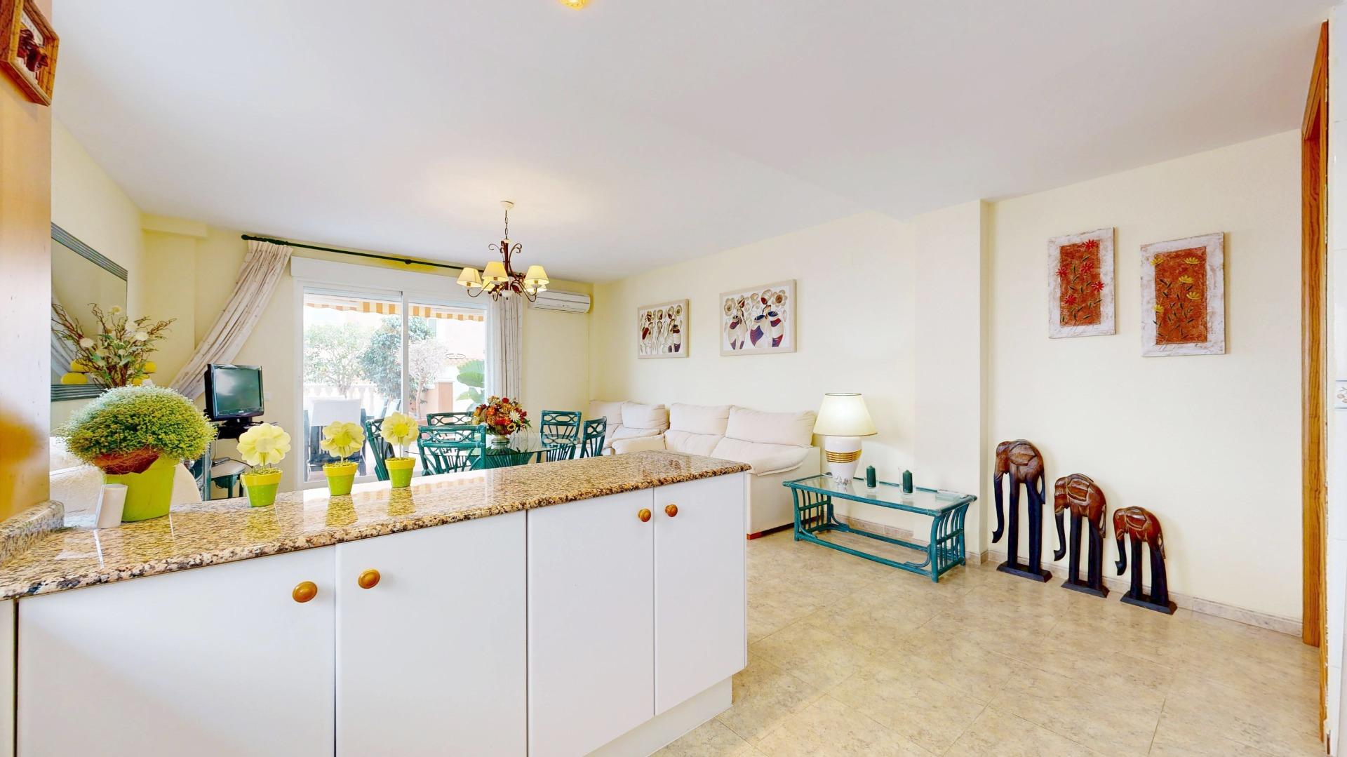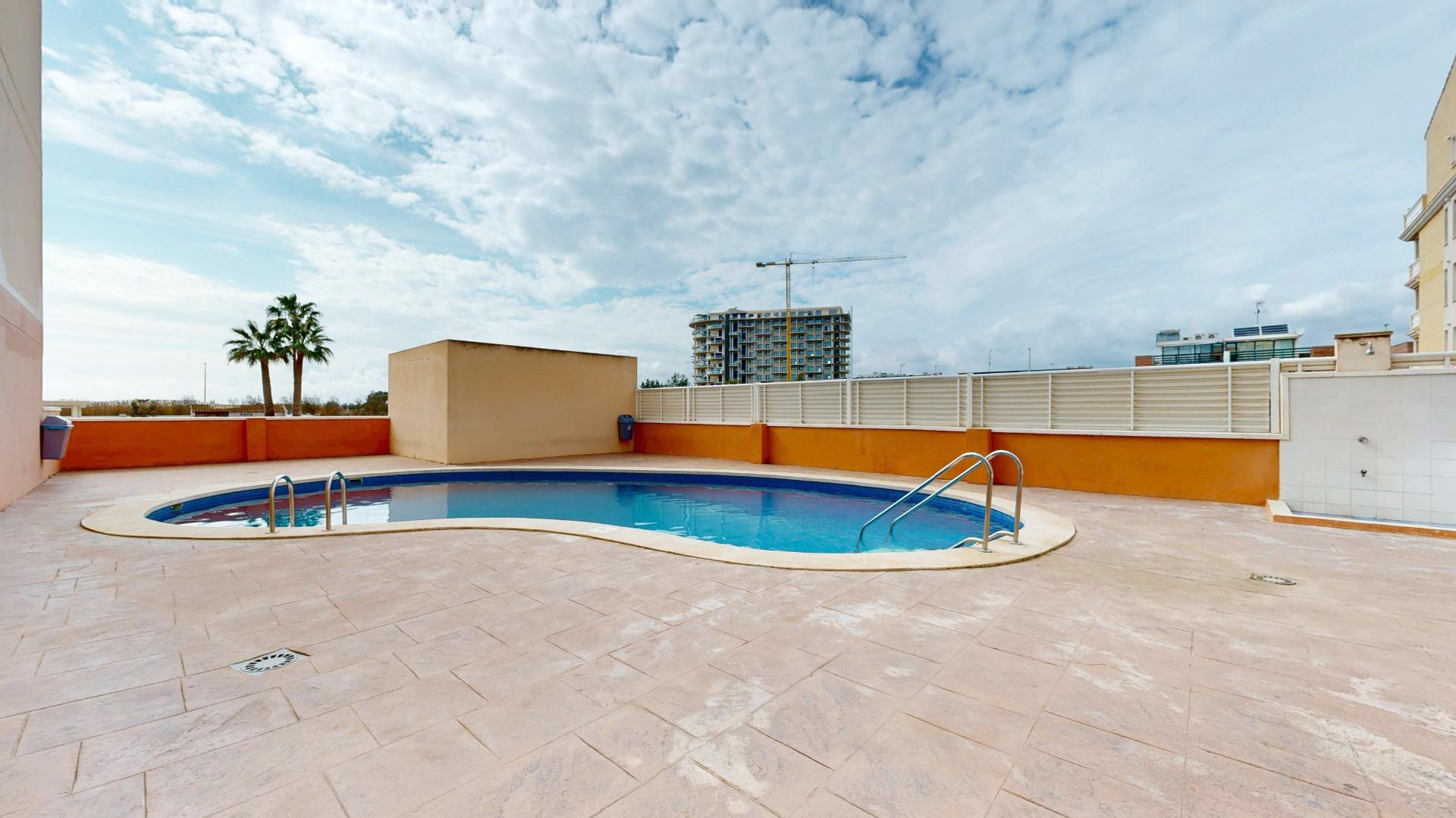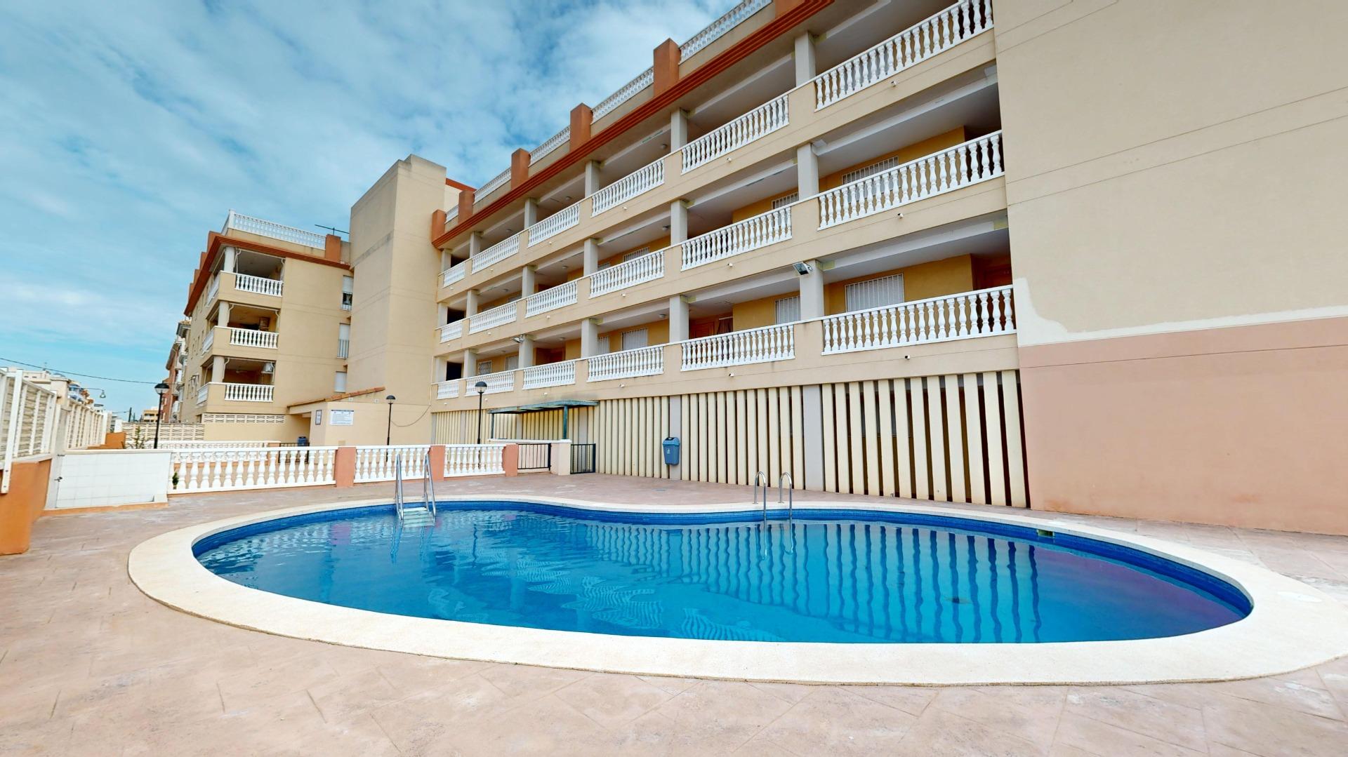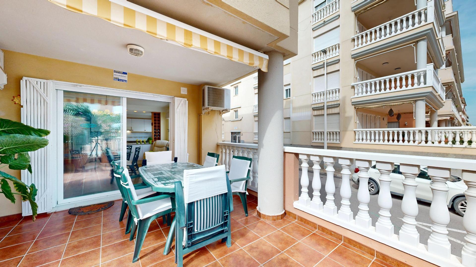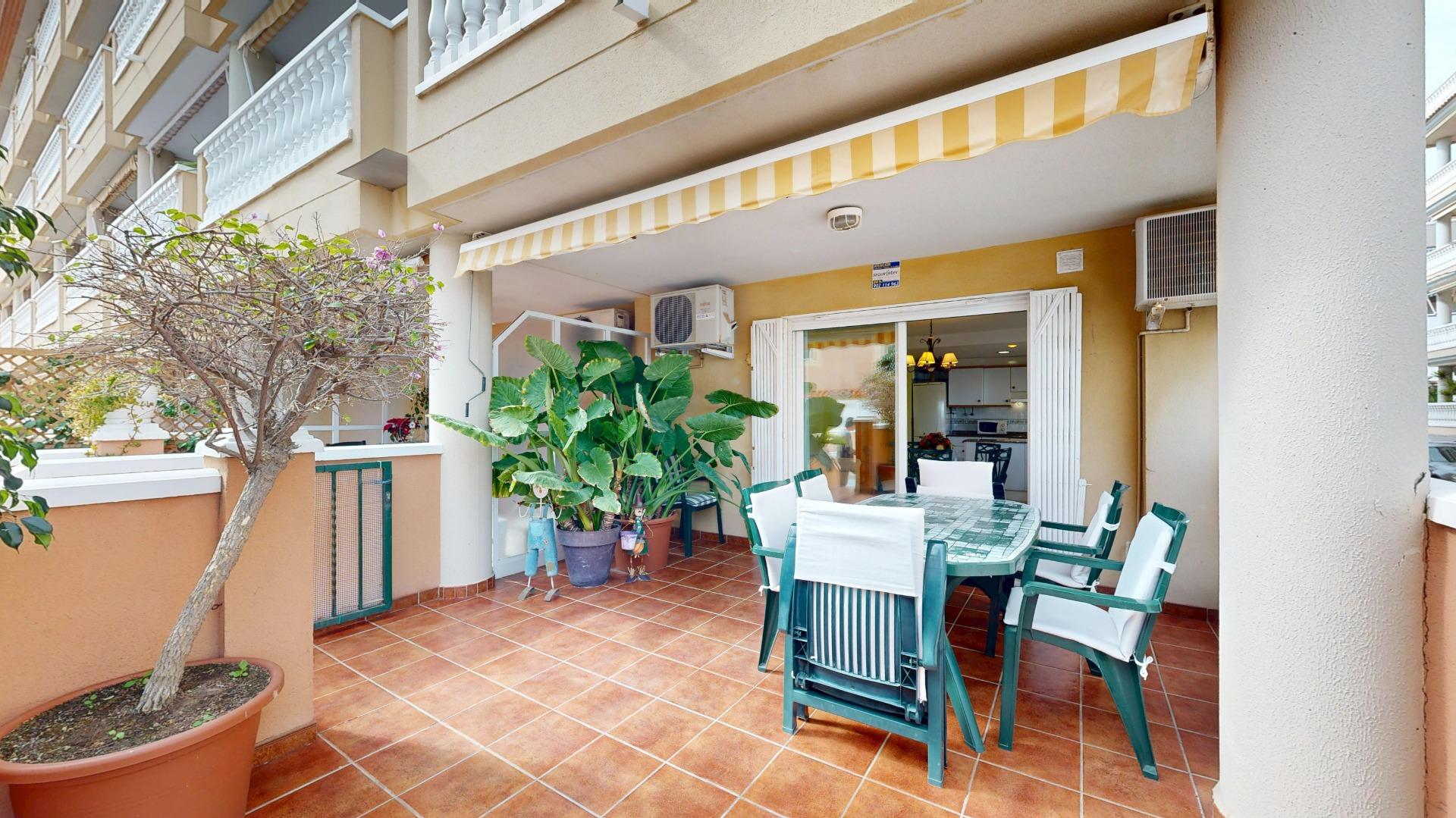 Este apartamento de 110 m2 ubicado en un complejo residencial, en planta baja, con acceso elevado y directo a la calle, cuenta con zonas comunes, piscina, garaje doble, con cabina cerrada y trastero, este bonito apartamento consta de un amplio salón/comedor, con cocina office abierta al comedor, tres dormitorios dobles, un baño completo y la joya del inmueble una amplia terraza, para disfrutar al aire libre