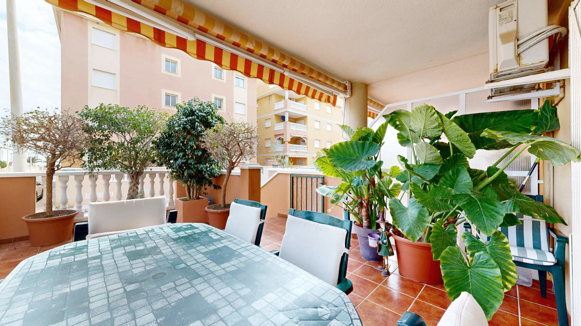 Una gran terraza de 9,20 m2, que cuenta con un amplio toldo articulado, doble puerta de seguridad y una de las mejores orientaciones para disfrutar de ella, en todas las épocas del año, con vistas al mar.
