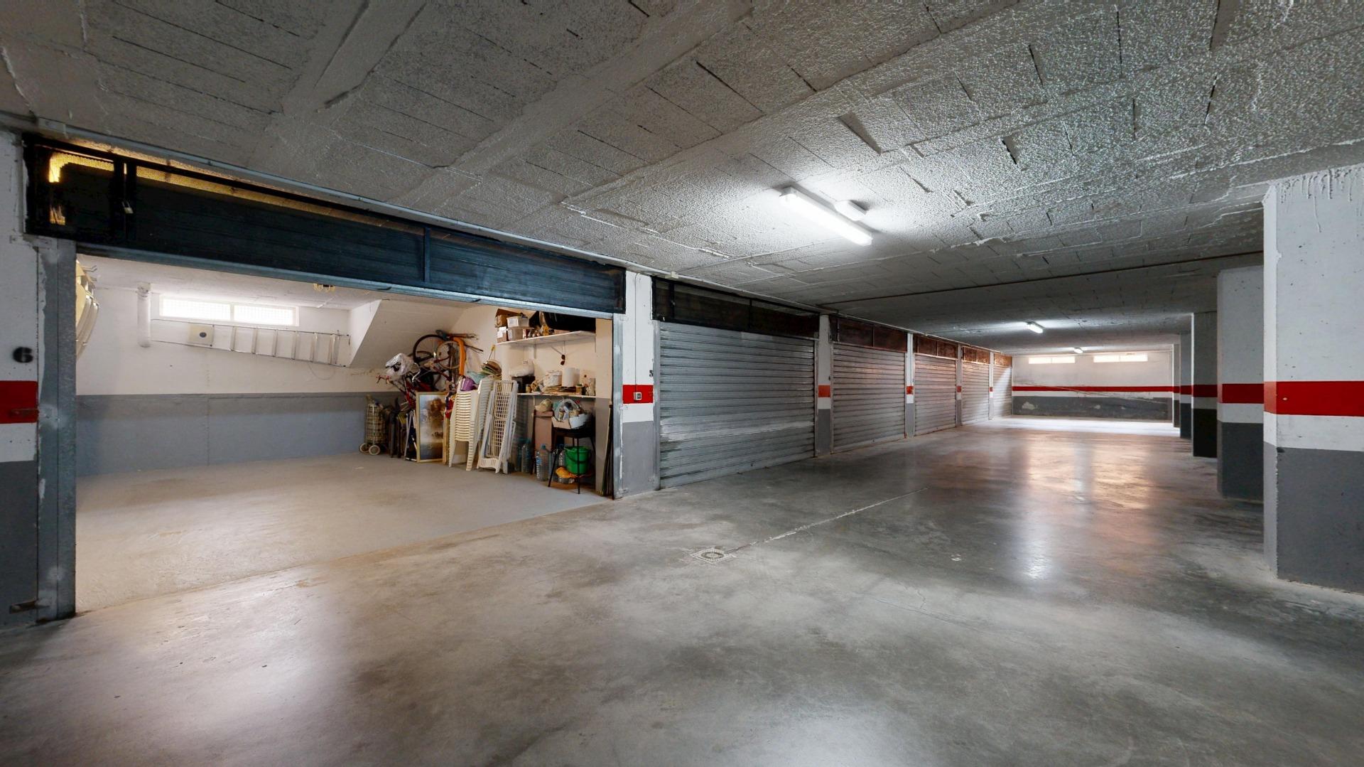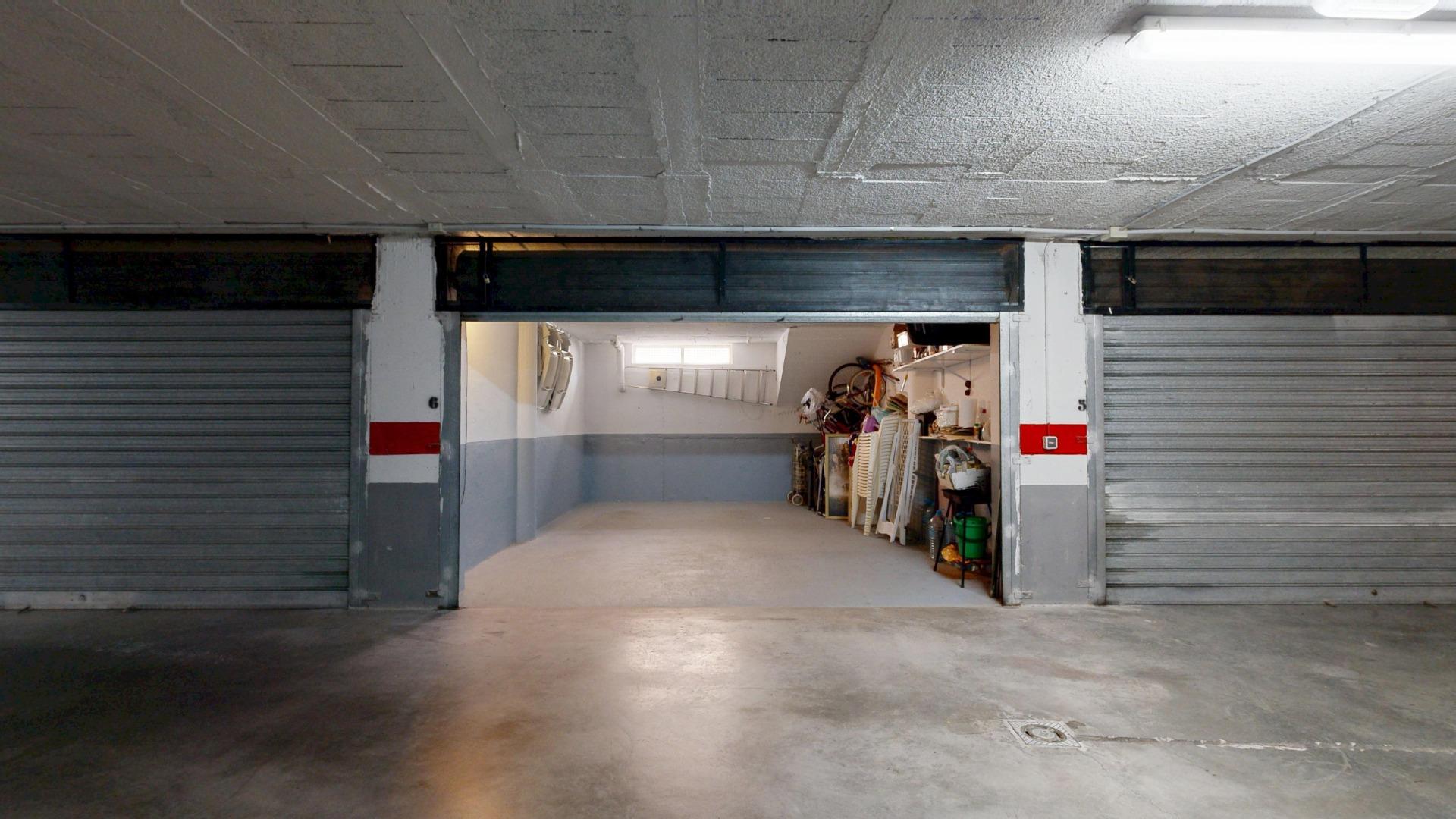 Garaje doble con cabina cerrada, de 22,60 m2 con puerta monitorizada y amplio trastero