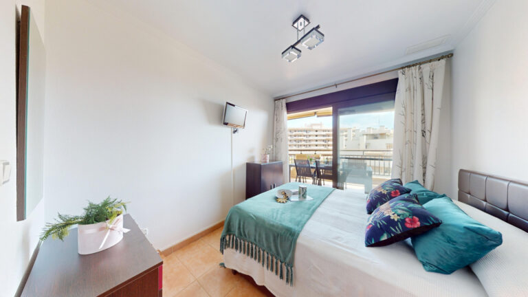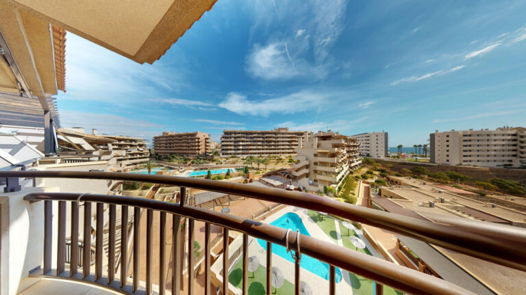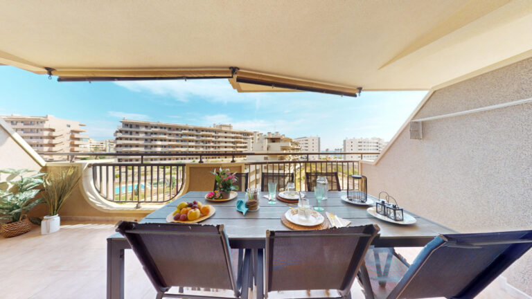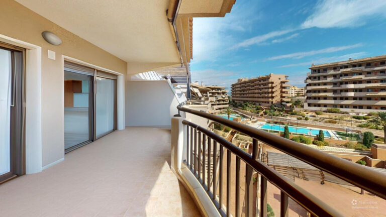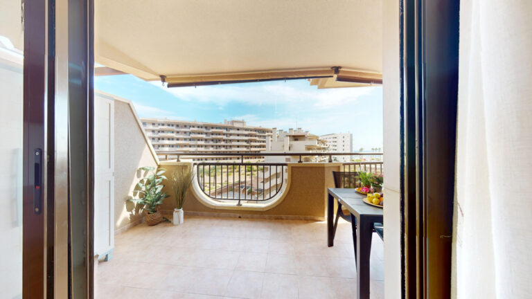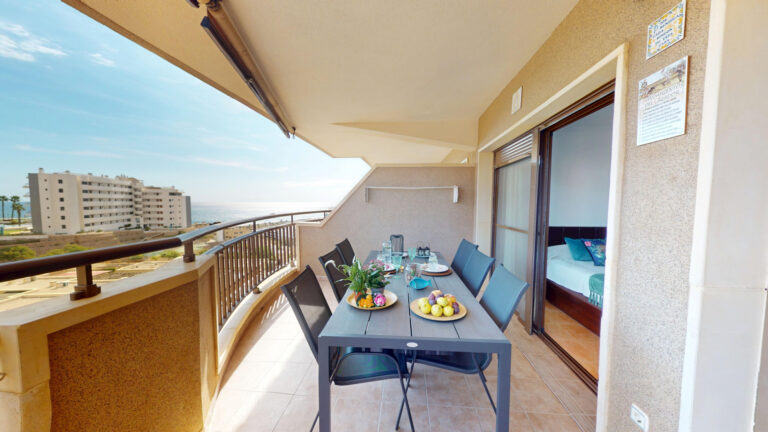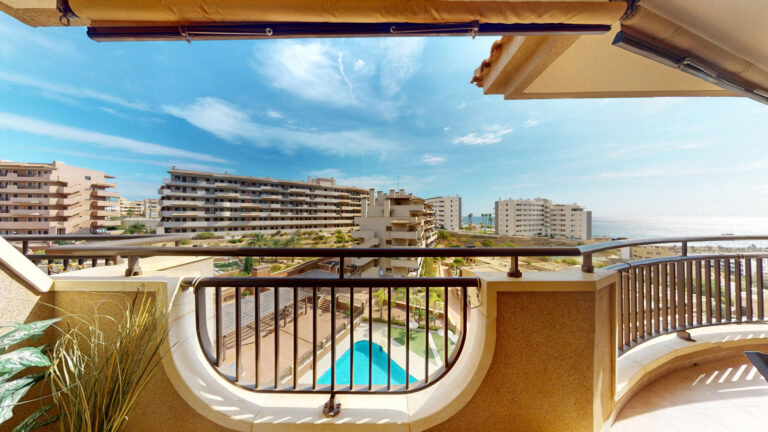 -TERRAZA de 25m2 con salida desde el salón comedor y desde la habitación principal ,con vistas al mar y a la piscina comunitaria