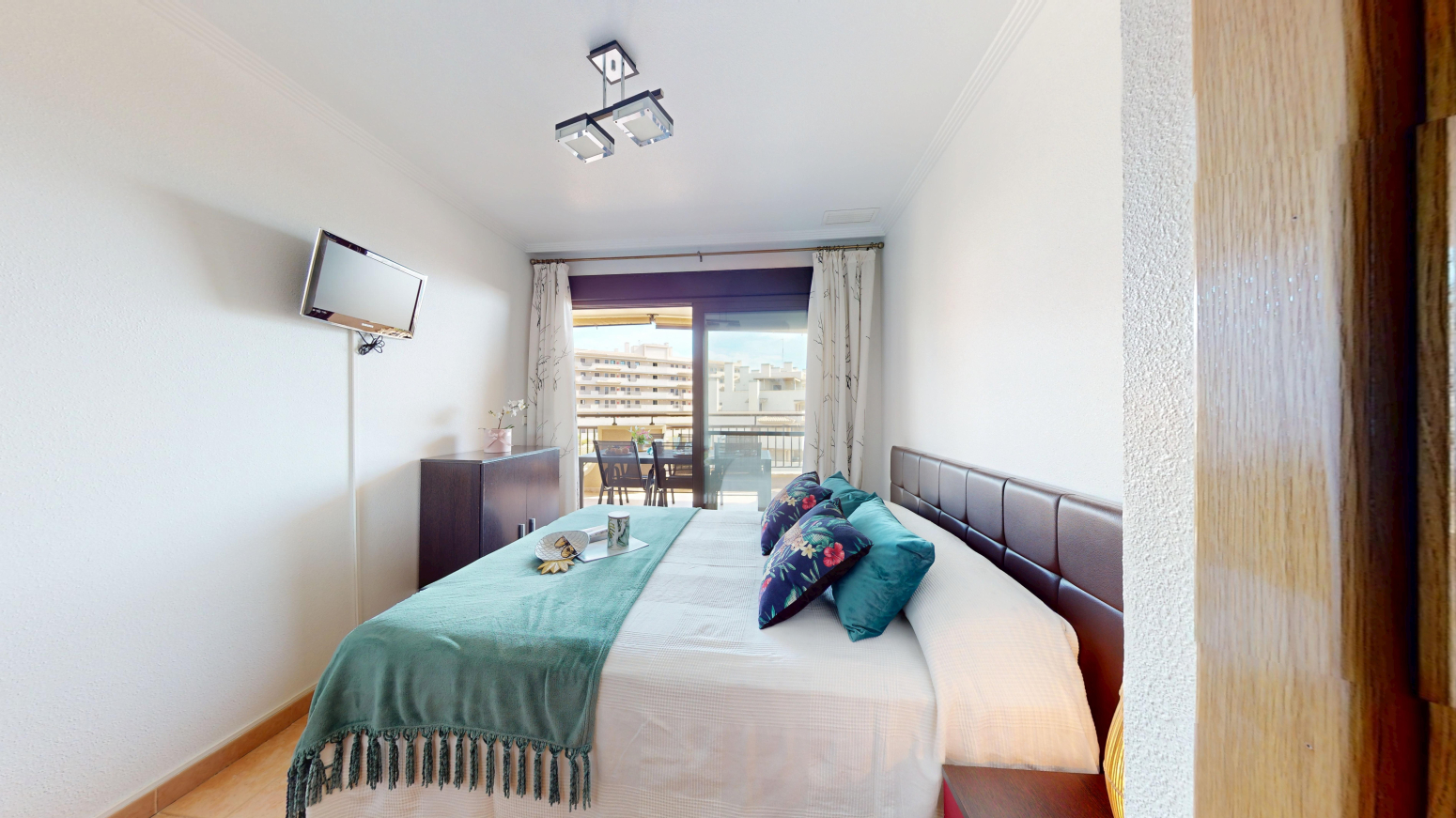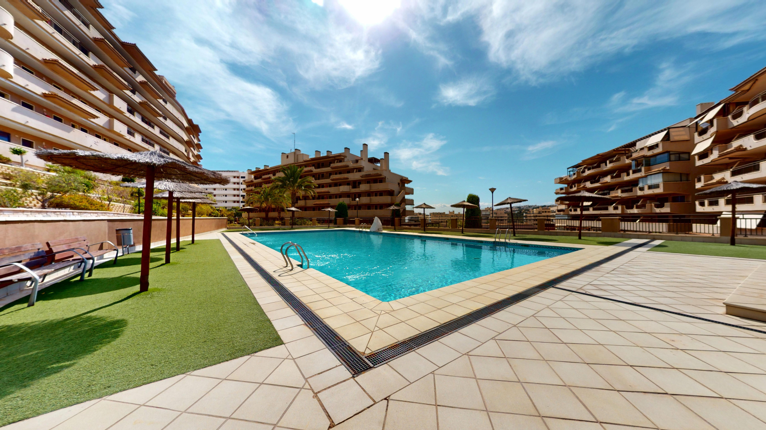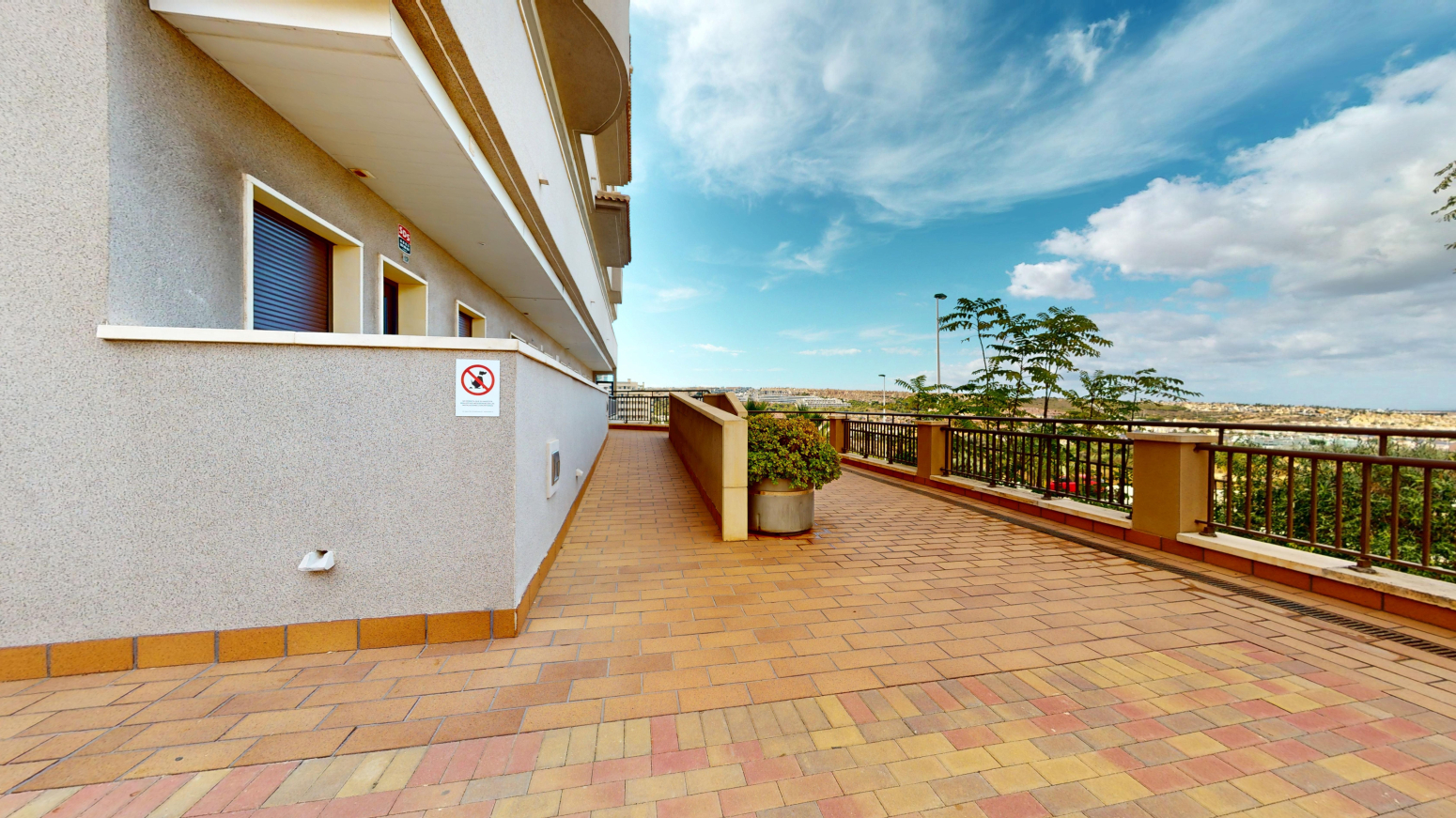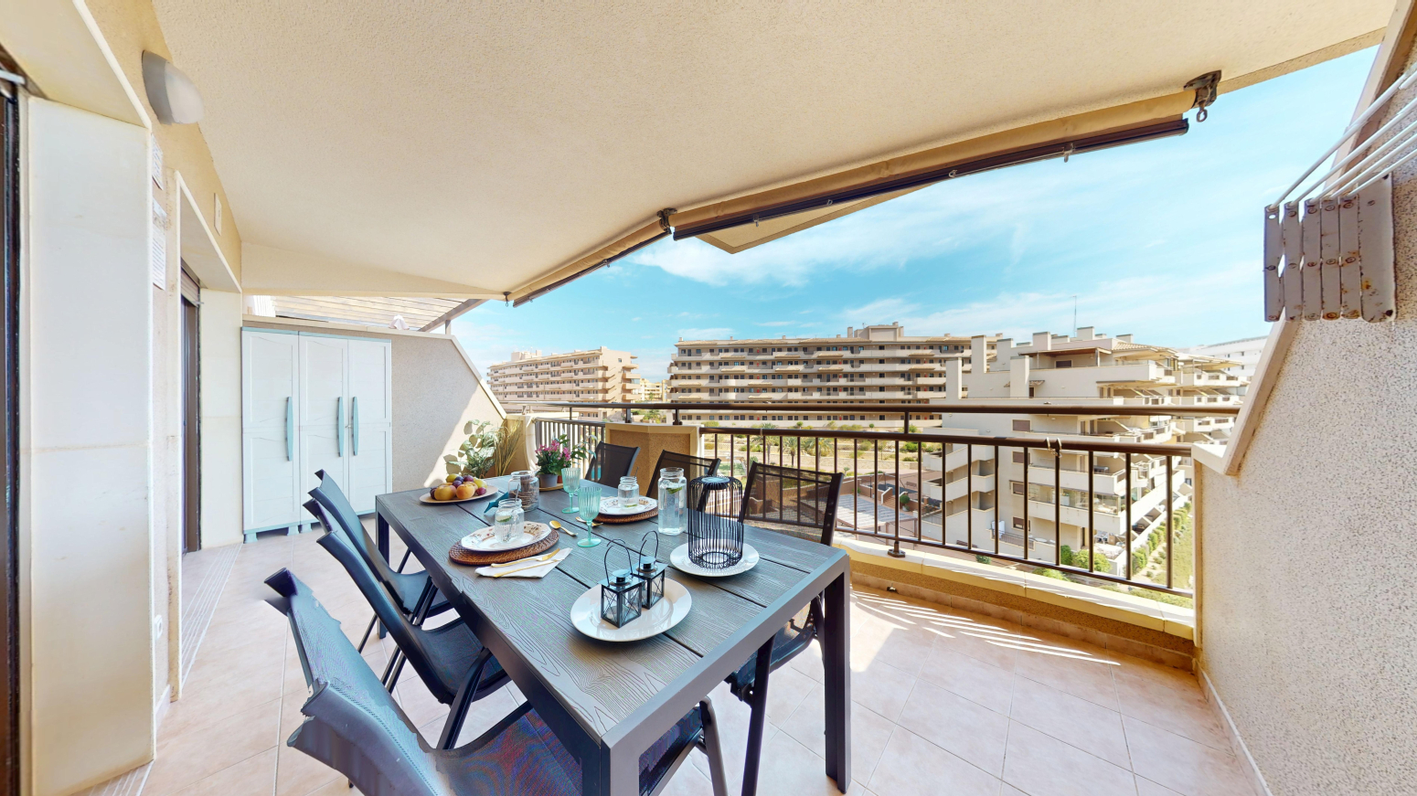 -TERRAZA de 25m2 con salida desde el salón comedor y desde la habitación principal ,con vistas al mar y a la piscina comunitaria