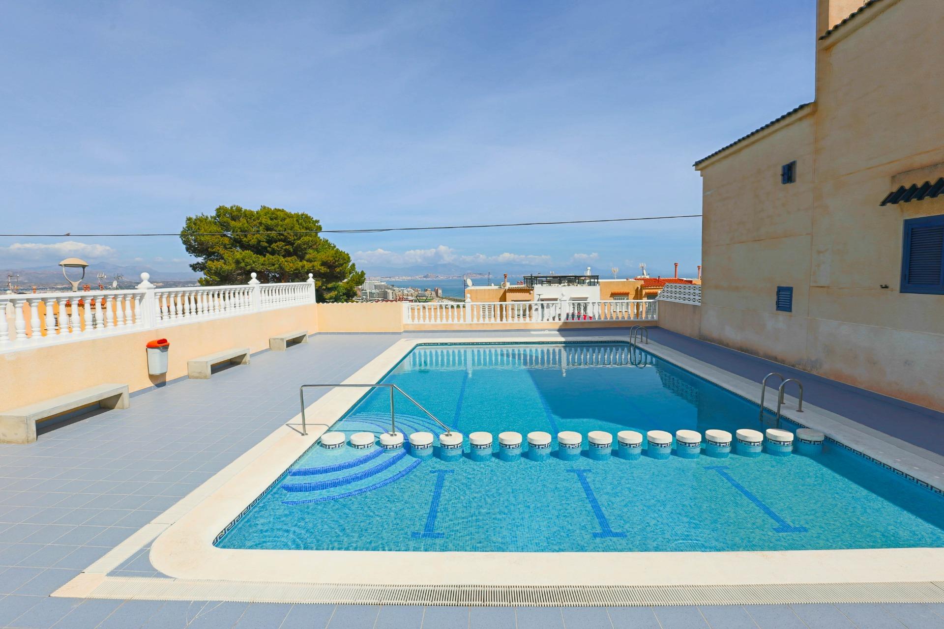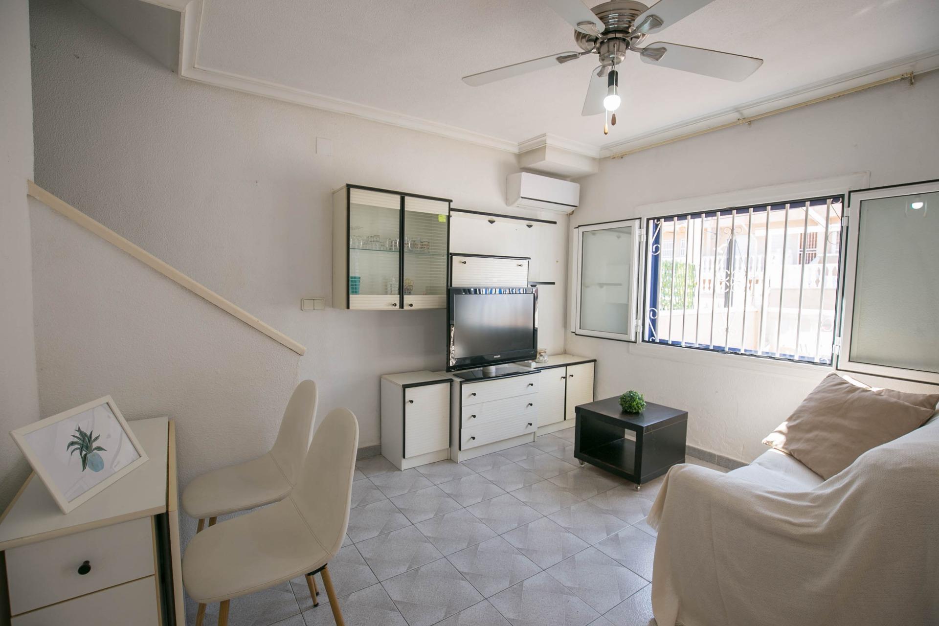Acogedor bungalow ADOSADO de dos plantas, situado en la parte alta de GRAN ALACANT , zona y rodeado de cafeterías, restaurantes, supermercados y todo tipo de servicios.