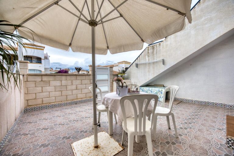 La parcela tiene un tamaño total de aproximadamente 18 m² y se encuentra dentro de una urbanización cerrada llena áreas verdes donde podrás disfrutar del clima mediterráneo gracias a sus tres refrescantes piscinas comunitarias rodeadas por jardines bien cuidados.