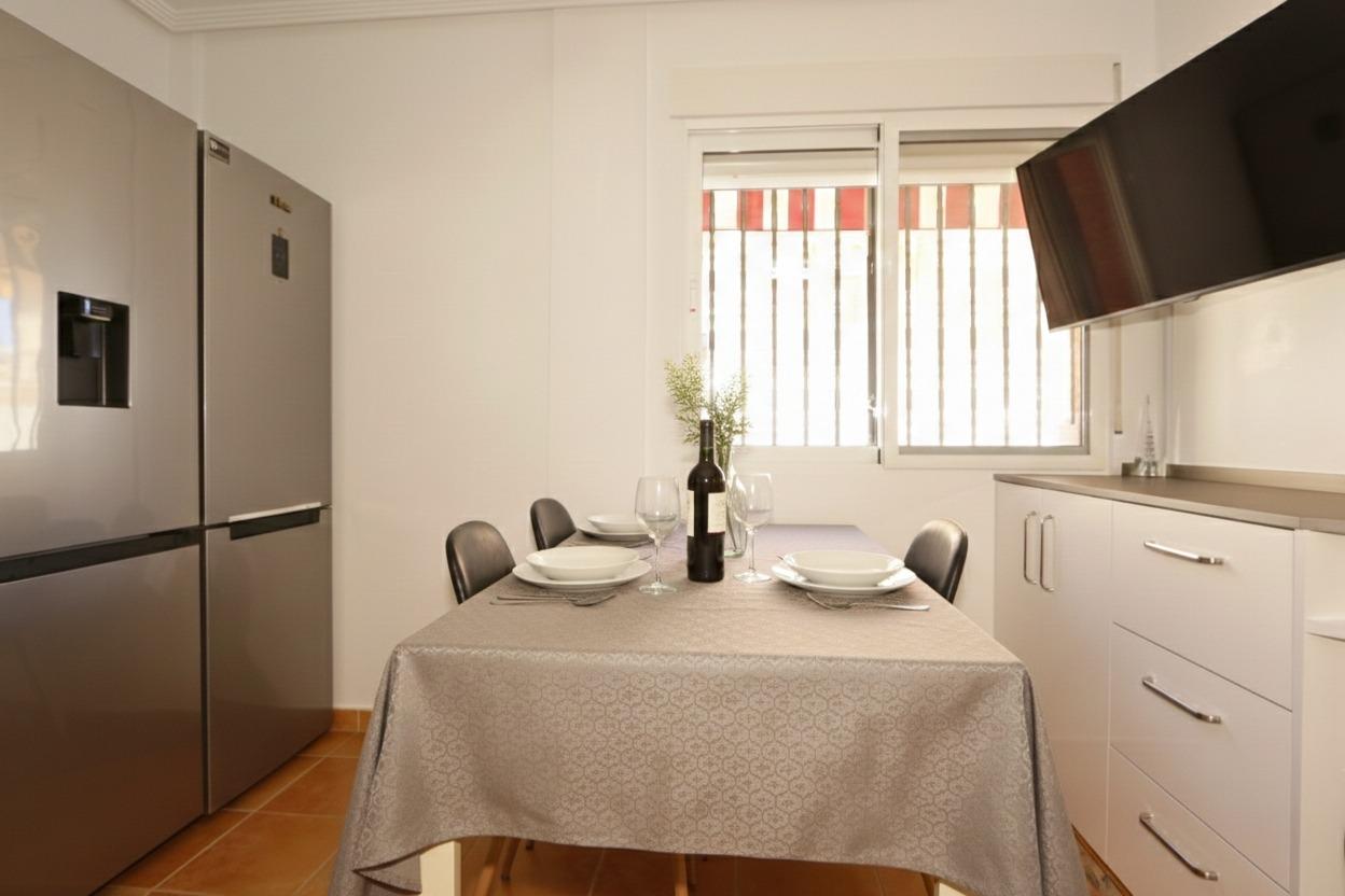 Frente a la cocina se encuentra una práctica zona office, perfecta para las comidas del día a día en un ambiente cómodo y familiar.