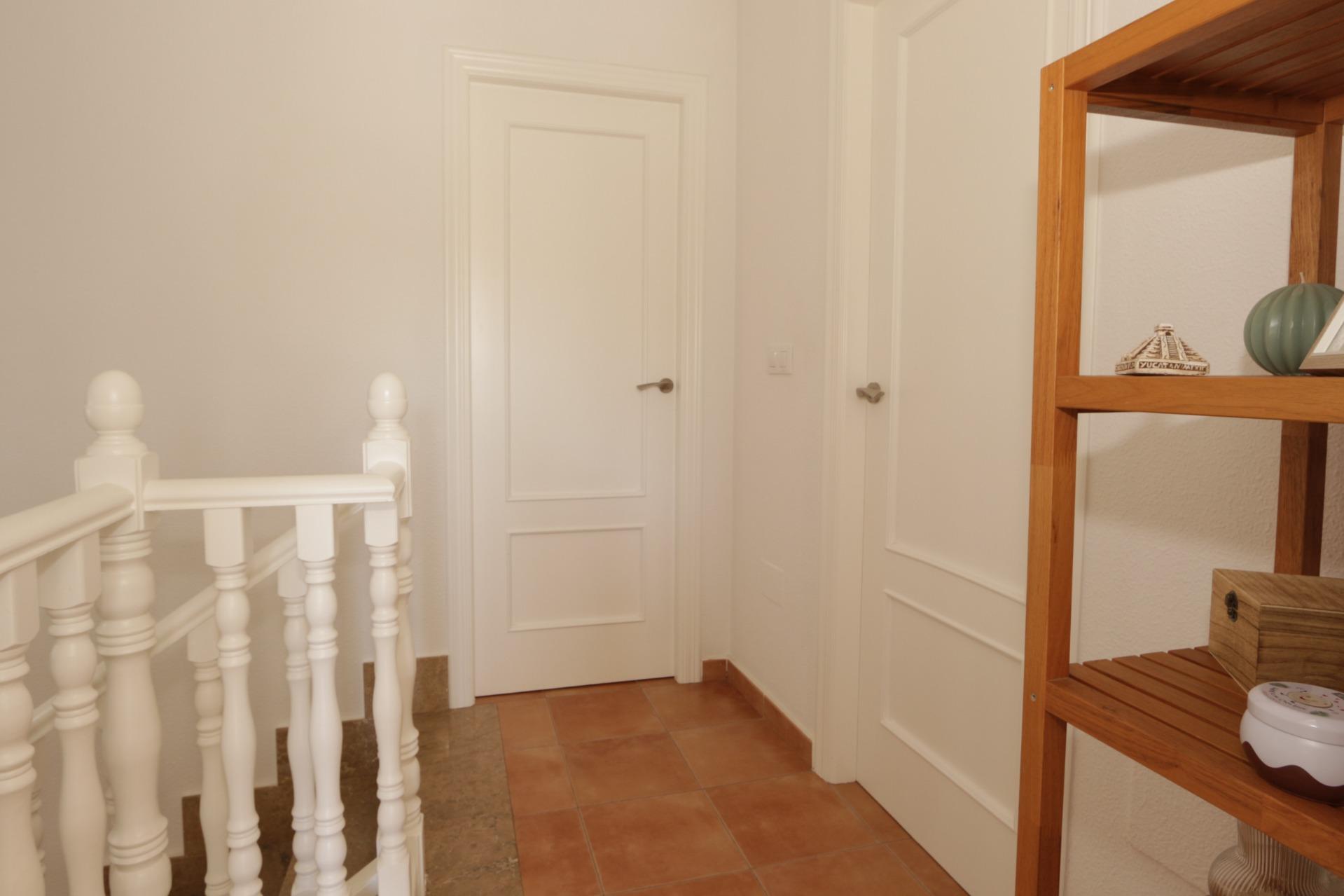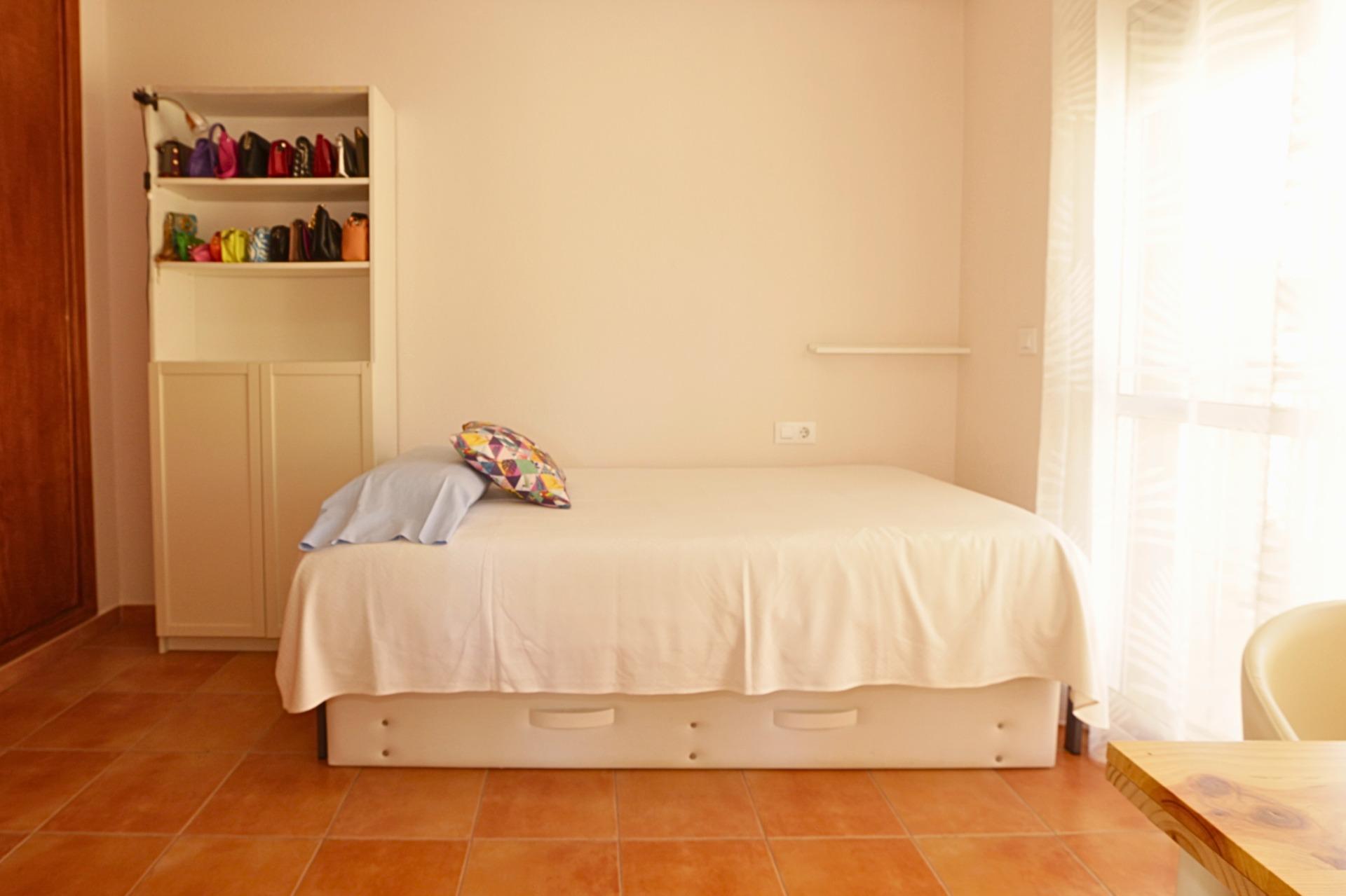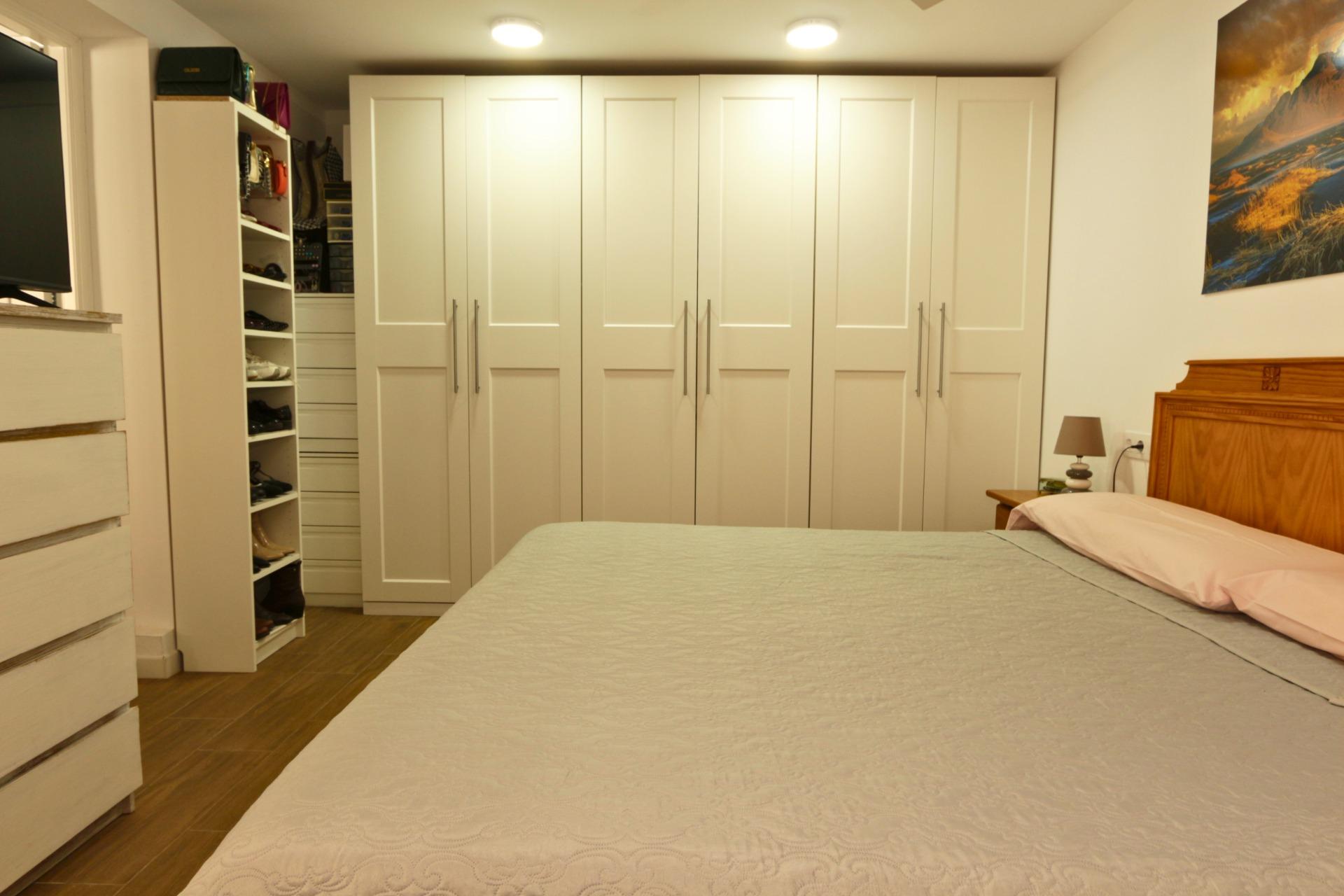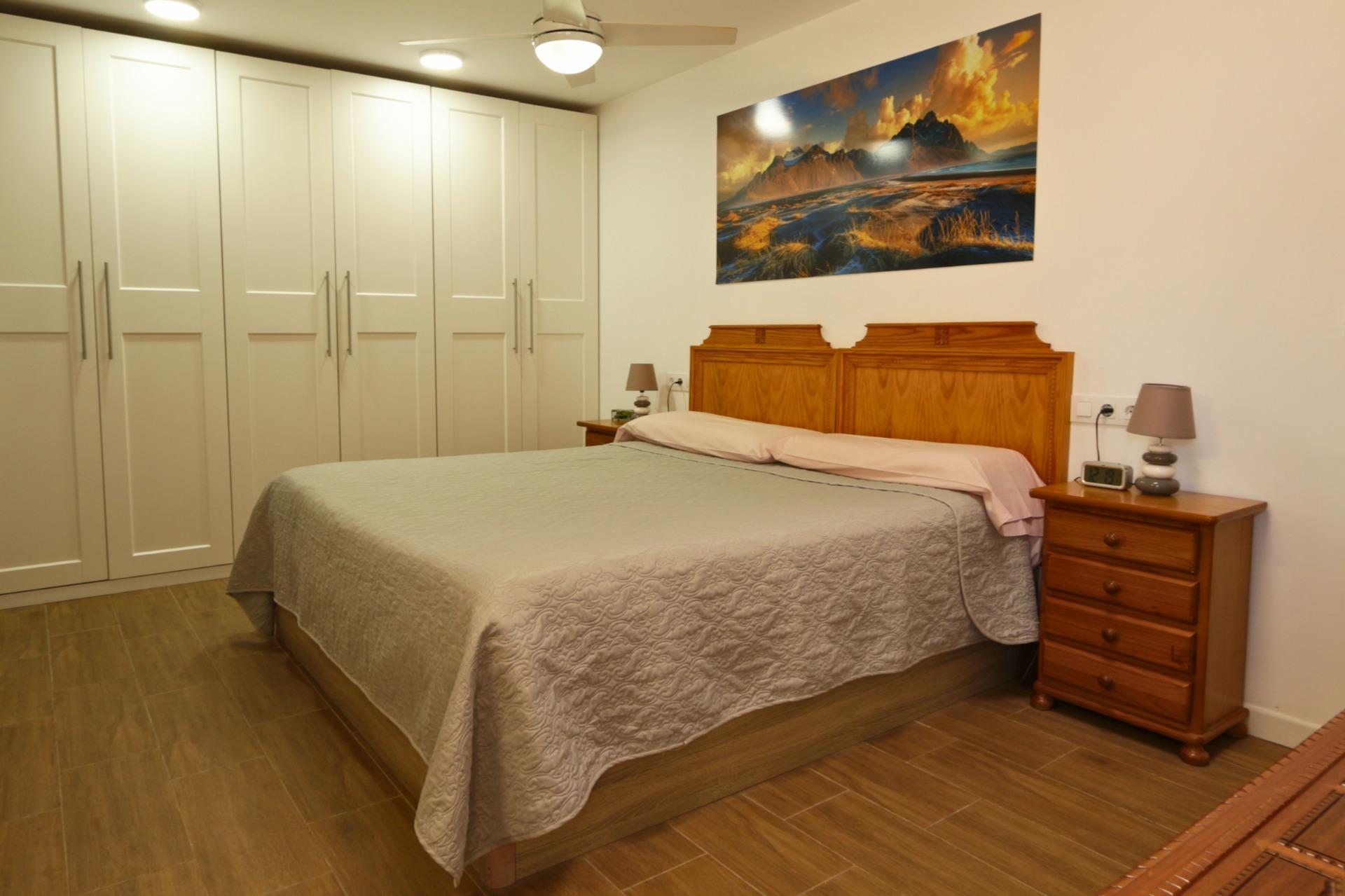Dormitorio principal en planta baja (más de 20 m²): Uno de los grandes valores de esta vivienda es su dormitorio principal en planta baja, amplio y funcional, ideal para quienes buscan evitar escaleras o priorizan la comodidad. Incluye: armarios a medida, ducha independiente, zona de aseo con lavabo, WC y bidé, aire acondicionado frío/calor mediante split y ventilador de techo. Una distribución que aporta independencia y confort.