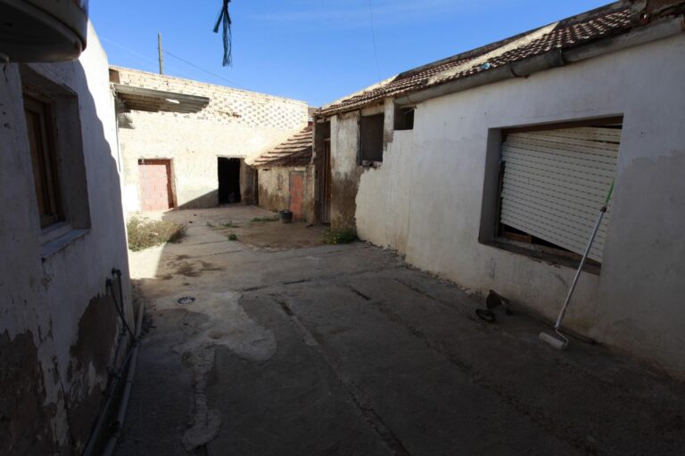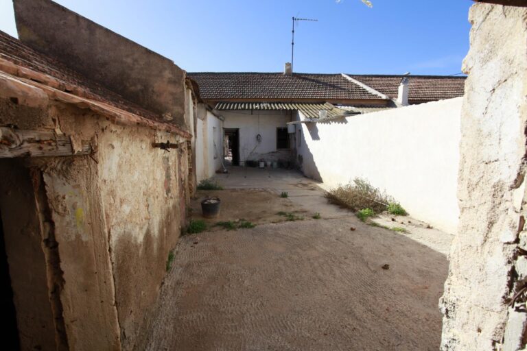 Casa con terreno patio y un almacén trasero de unos 99 metros cuadrados, da a dos calles y esta para reformar o poder construir, situado es una zona de buen acceso y céntrico al pueblo.