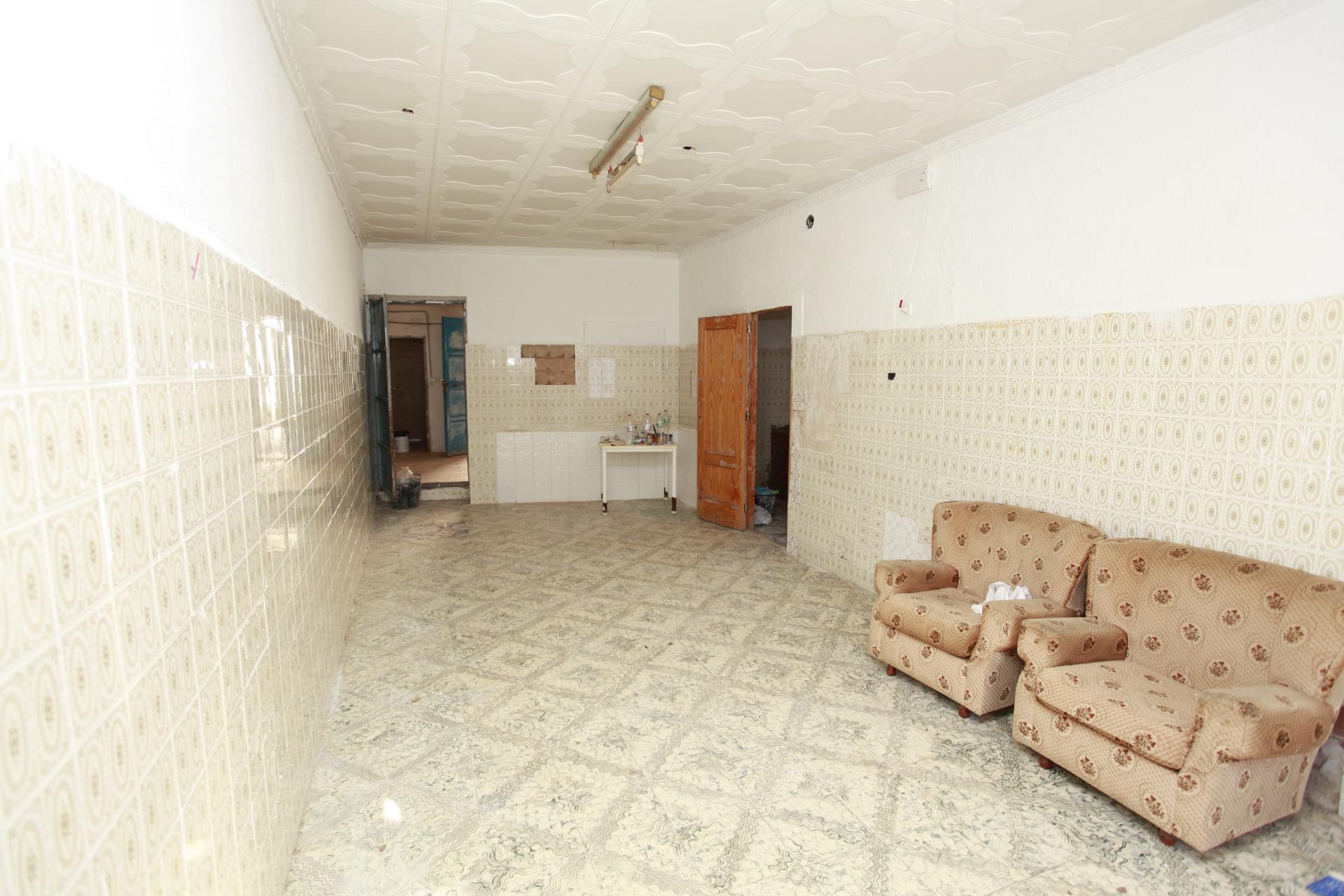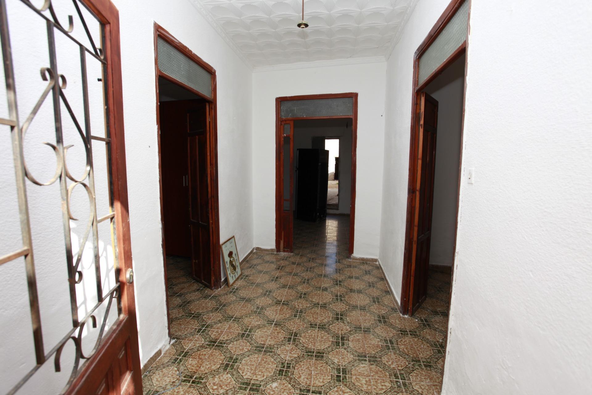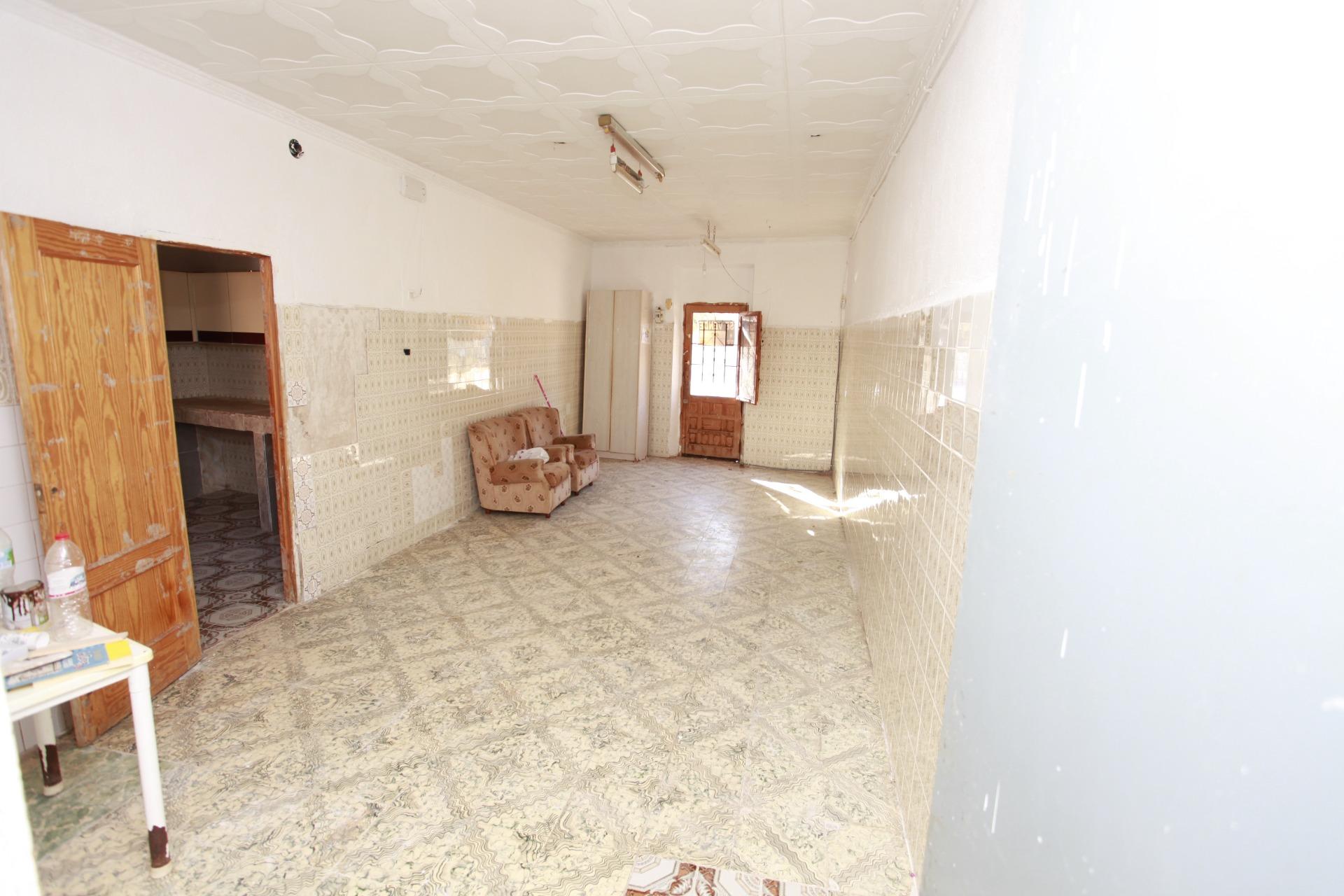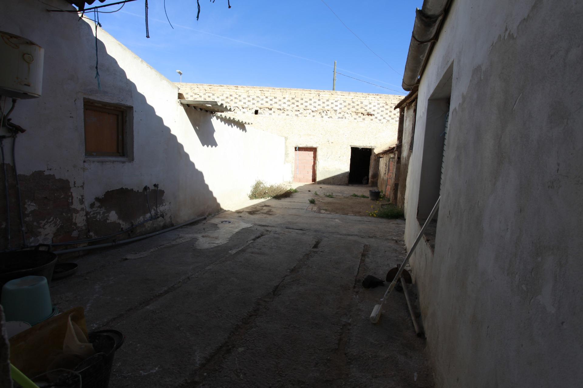 Casa con terreno patio y un almacén trasero de unos 99 metros cuadrados, da a dos calles y esta para reformar o poder construir, situado es una zona de buen acceso y céntrico al pueblo.