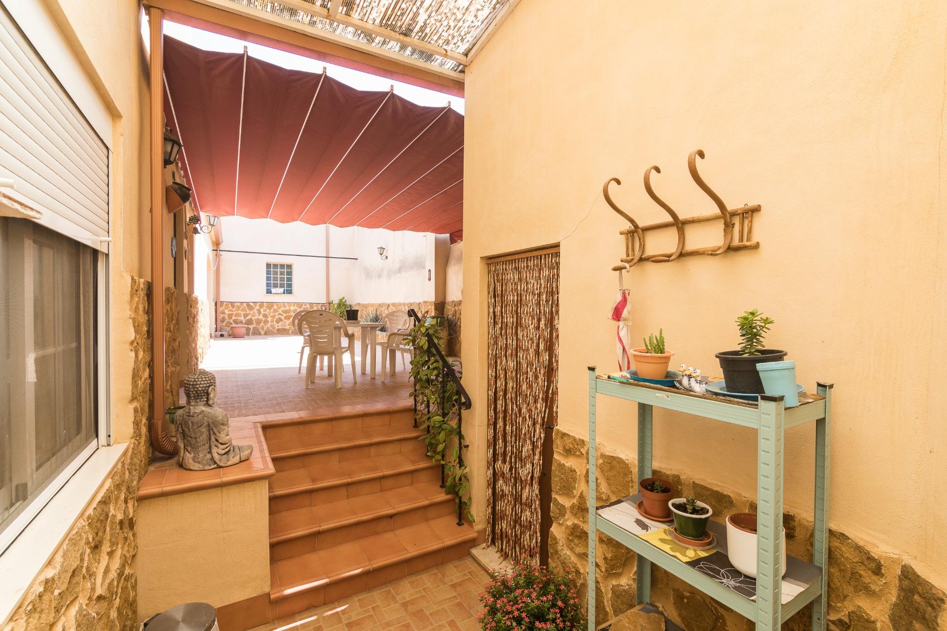 La casa distribuida en dos plantas, cuenta en la planta baja con tres dormitorios, un aseo, y un baño, un luminoso salón con chimenea que se conecta con una cocina totalmente equipada, además de un patio de gran tamaño, que incluye una segunda cocina con barbacoa y horno de leña, que hacen de este espacio un rincón perfecto para reuniones familiares y momentos de descanso. Dispone también de despensa para almacenar, y garaje con acceso a otra calle, esta maravillosa casa tiene en la parte de arriba del garaje, una nave adicional que aporta múltiples posibilidades de uso.