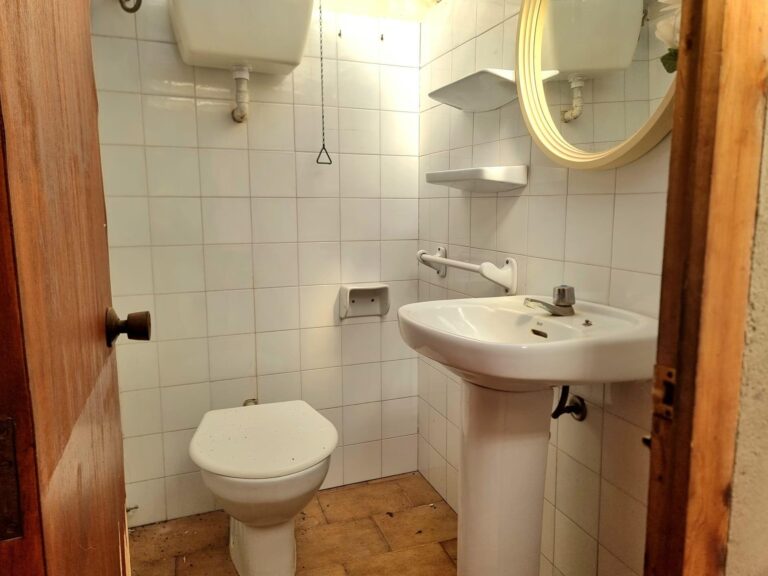La casa del año 1888, reformada en los años 60, cuenta con 200m2. En la planta baja tenemos un gran recibidor y un baño completo con bañera y ducha. En el mismo recibidor hay una puerta para acceder a la primera planta.