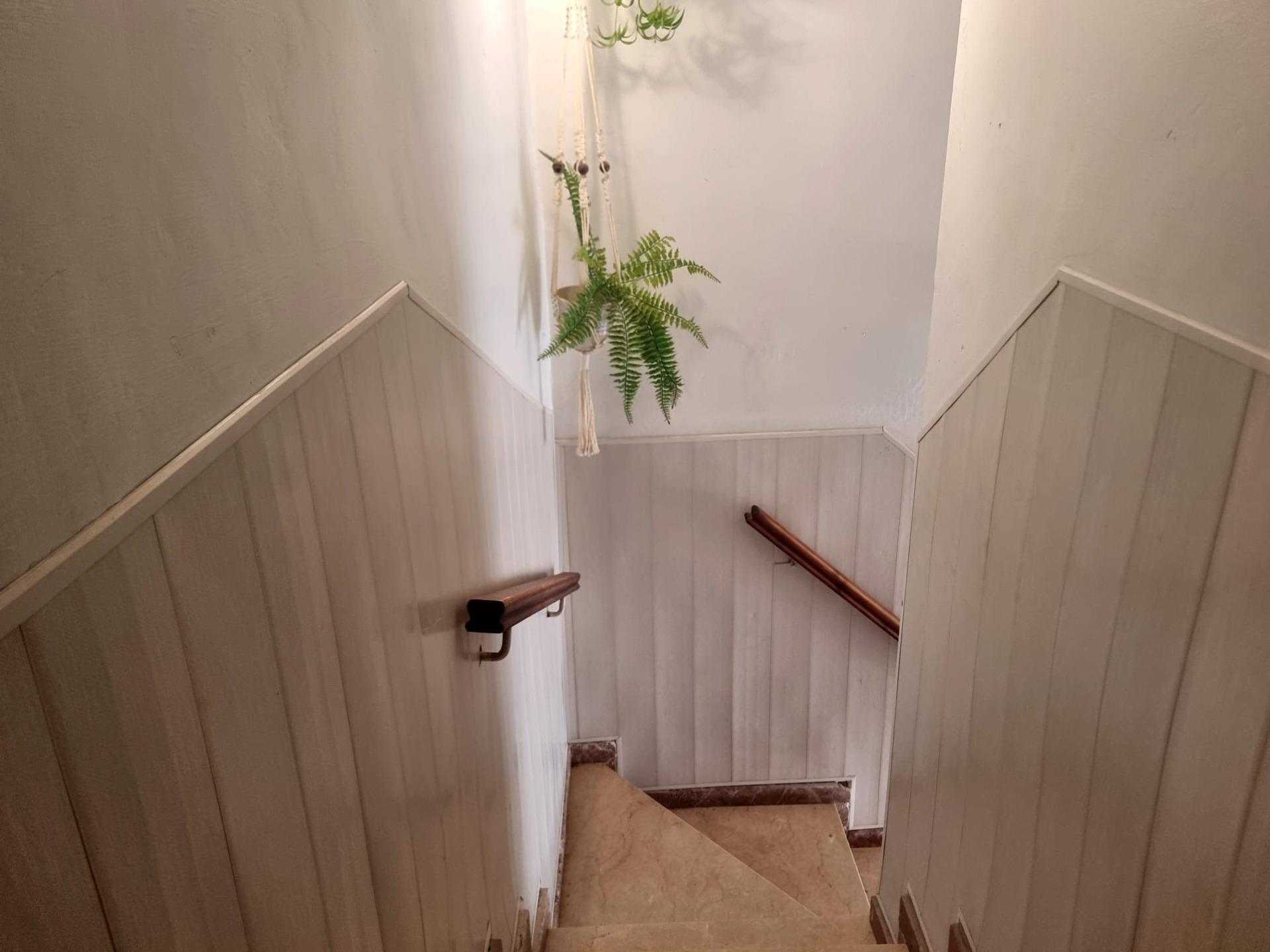 Si continuamos entraremos a un gran salón que tiene una puerta a la habitación de la planta baja. Y otra puerta a un trastero de buen tamaño.