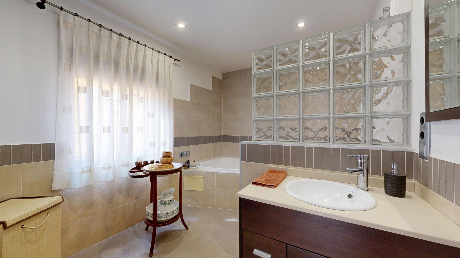 • 🛁 3 baños completos y 1 fuera en jardín
