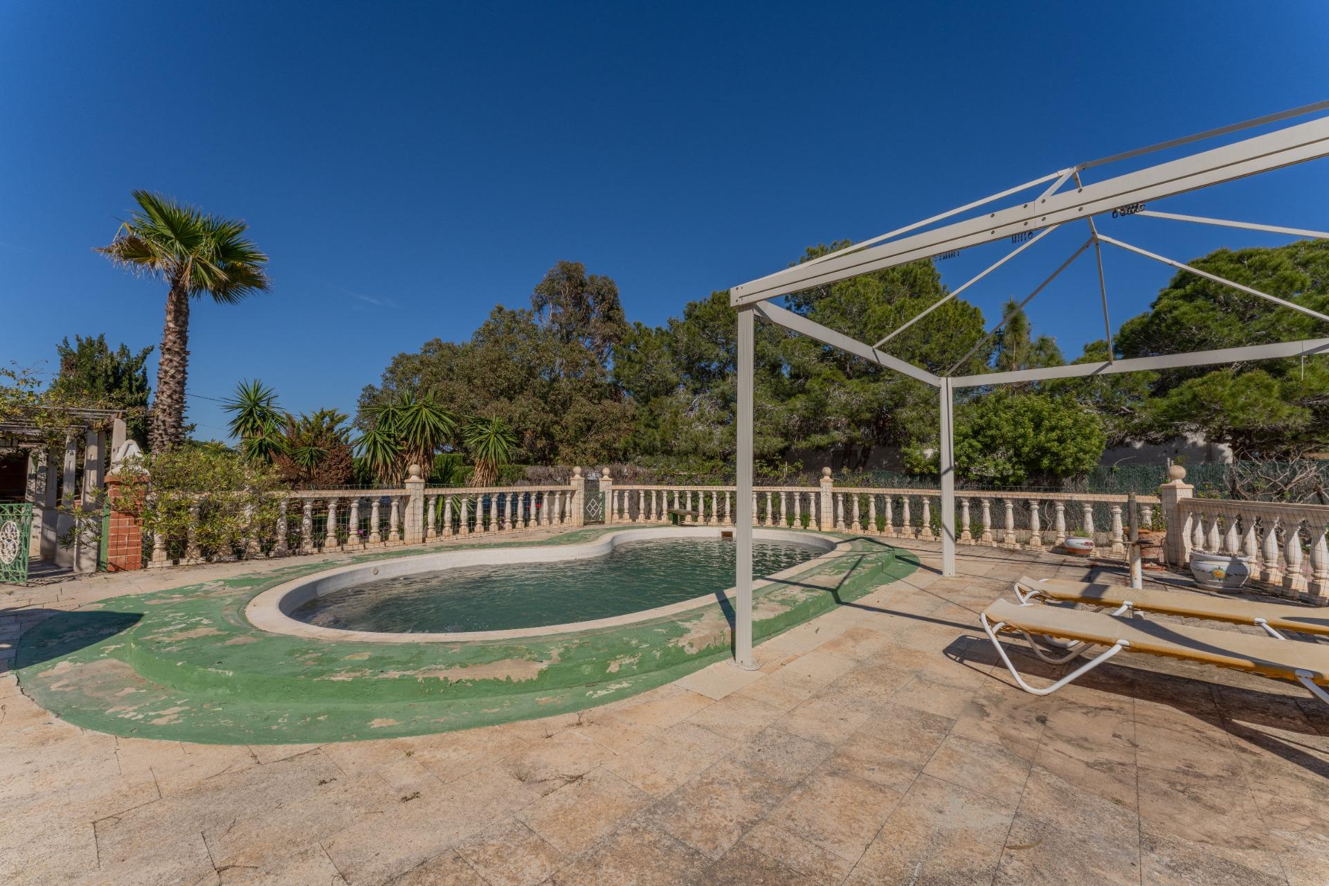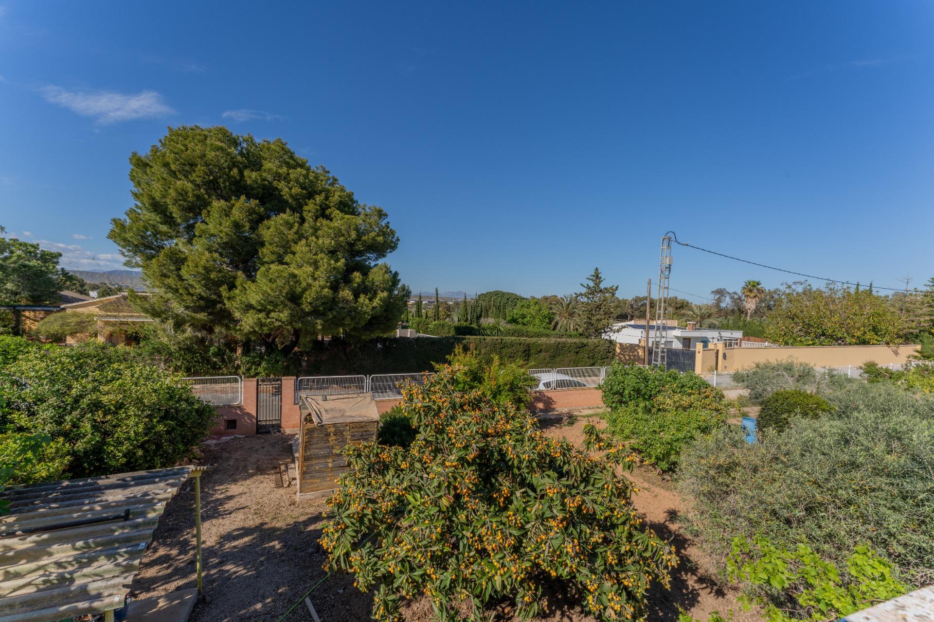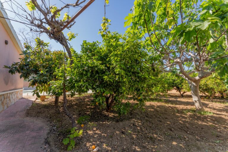 Vive la tranquilidad del campo con todas las comodidades: amplio chalet de 173 m² con piscina privada, gran parcela y múltiples construcciones auxiliares, a solo minutos de la playa, el aeropuerto y Elche.
