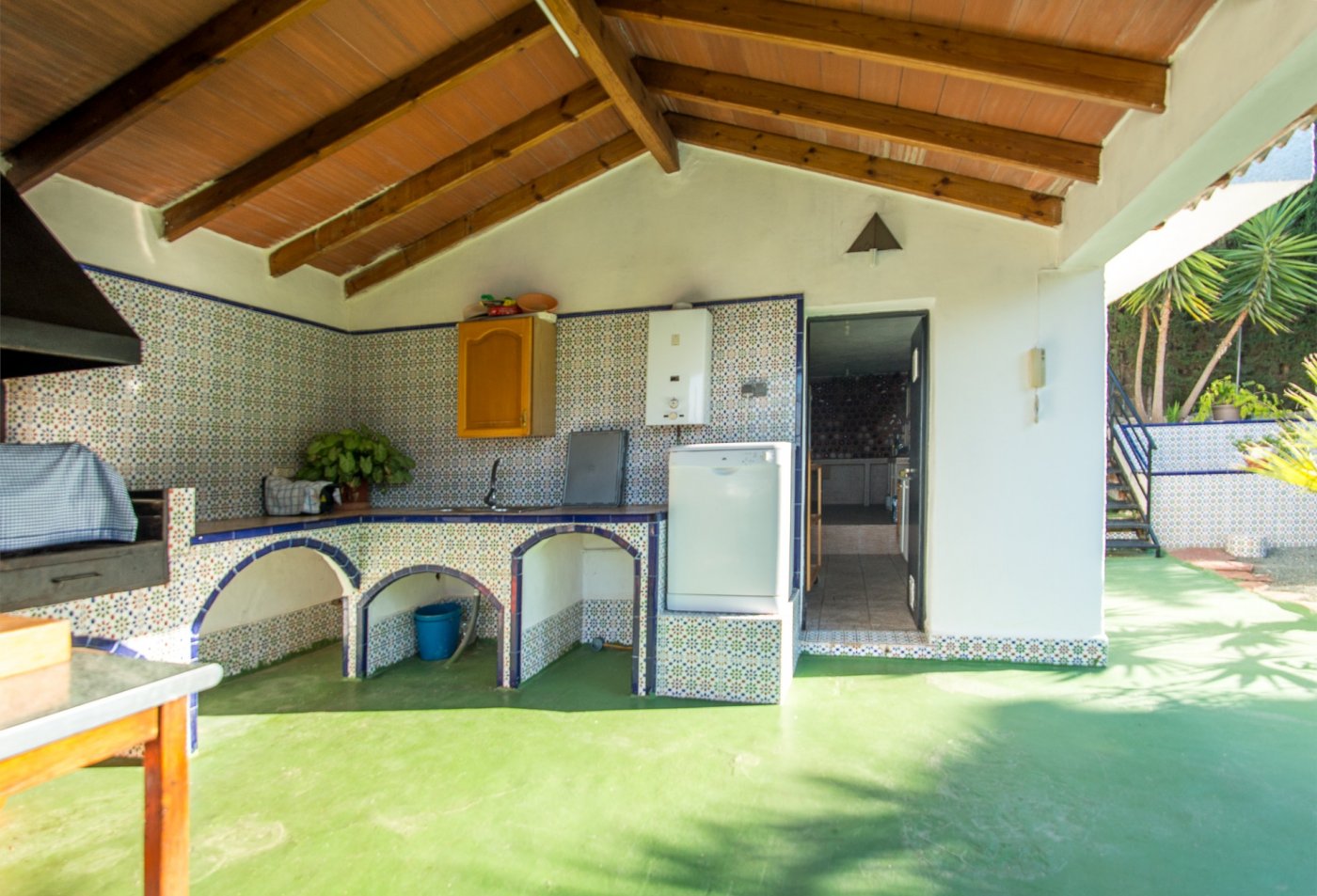 En la parcela, junto a la barbacoa con cocina, existe otra construcción independiente con un salon, dormitorio y baño.