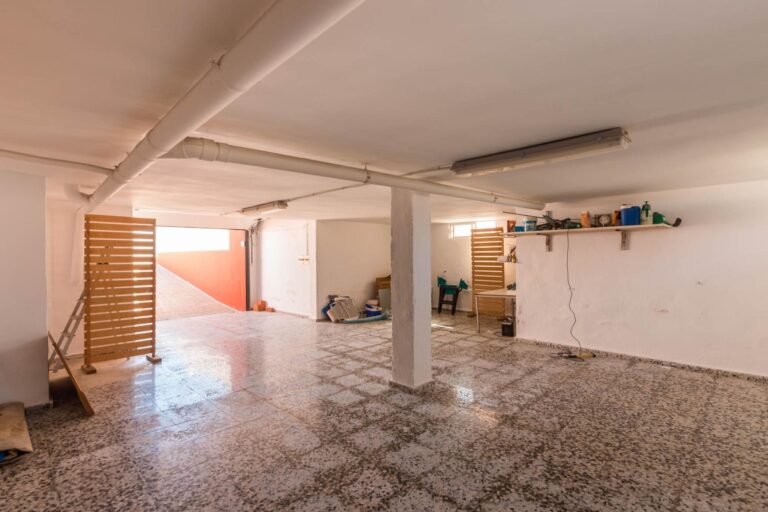 La vivienda se distribuye en dos plantas y un semisótano destinado a garaje. Su diseño interior destaca por la luminosidad y el juego de alturas: el salón-comedor se abre a doble altura, creando una sensación de amplitud y conexión entre espacios. En la planta principal se encuentran una cocina independiente totalmente equipada, un dormitorio y un baño con ducha.
