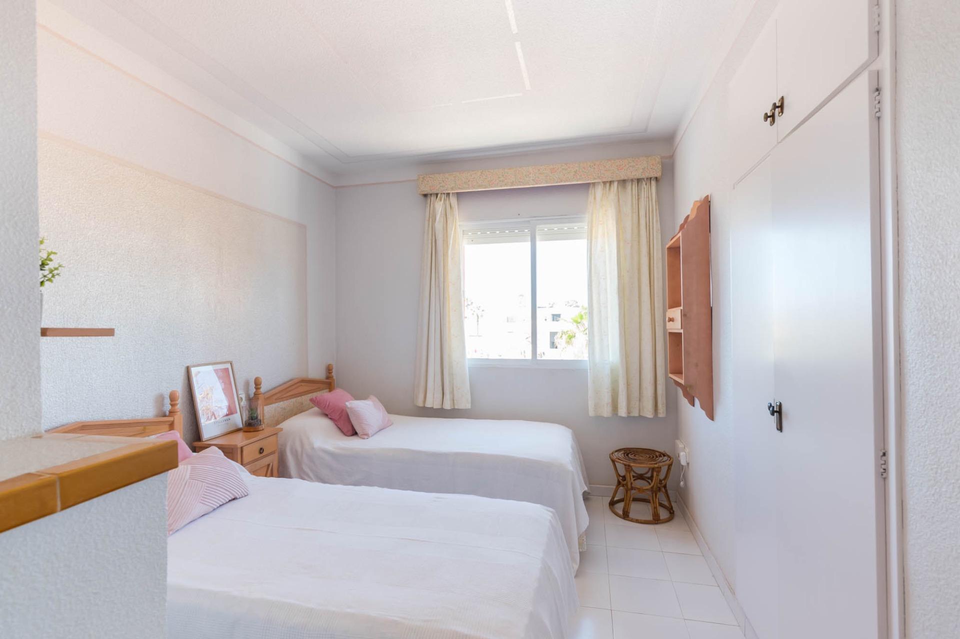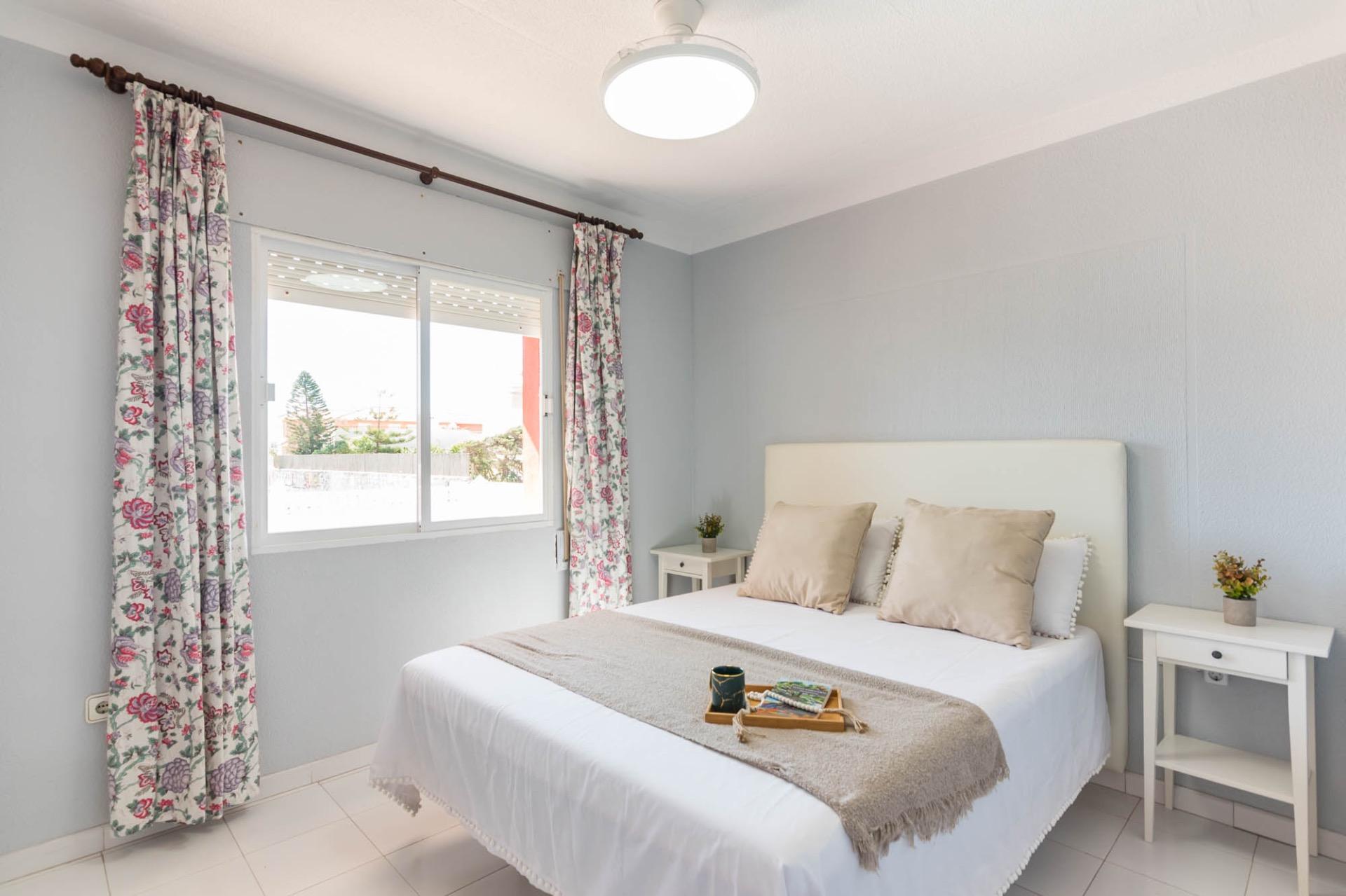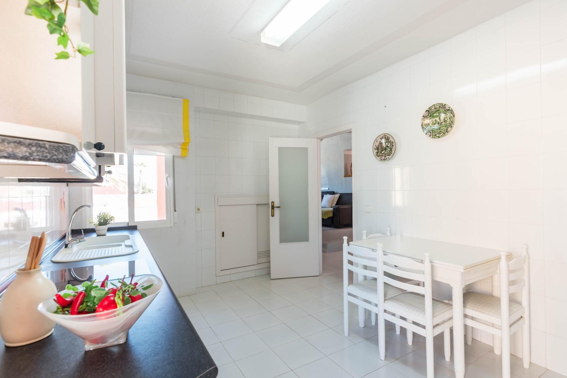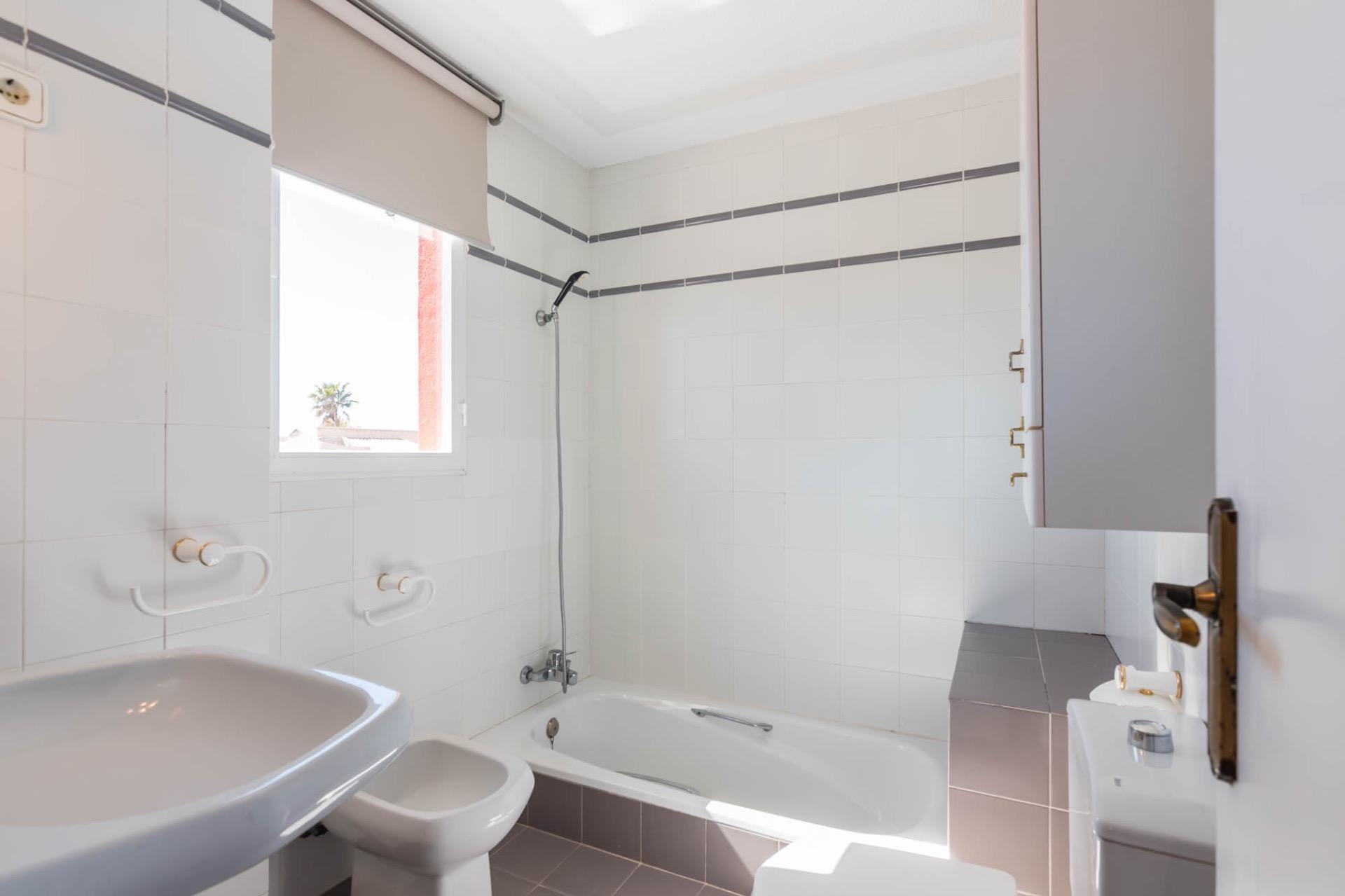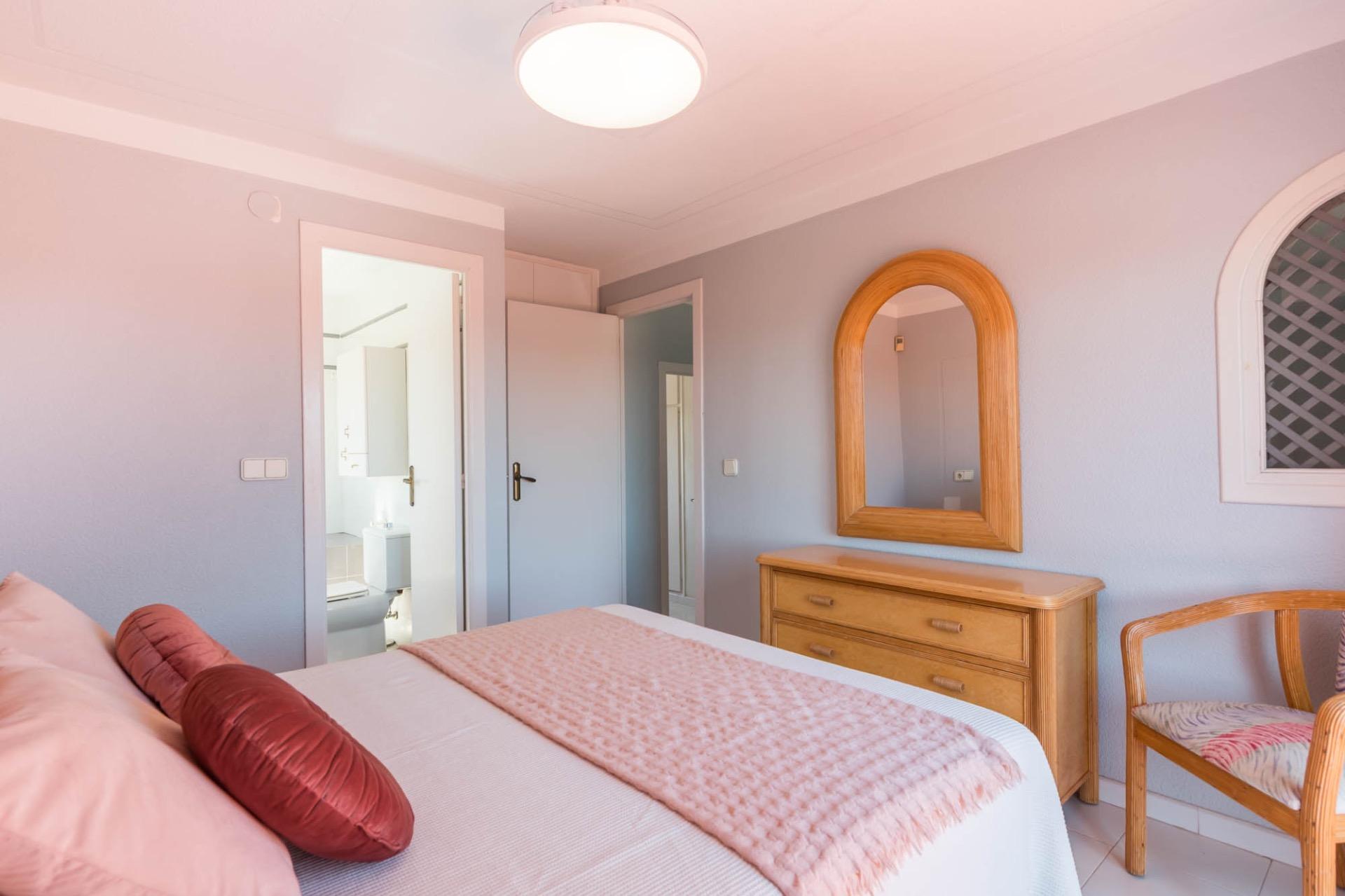 En la planta superior, tres dormitorios llenos de luz natural y un baño completo forman la zona de descanso. El dormitorio principal, ligeramente elevado, dispone de acceso a una terraza privada perfecta para contemplar el atardecer sobre el Mar Menor.
