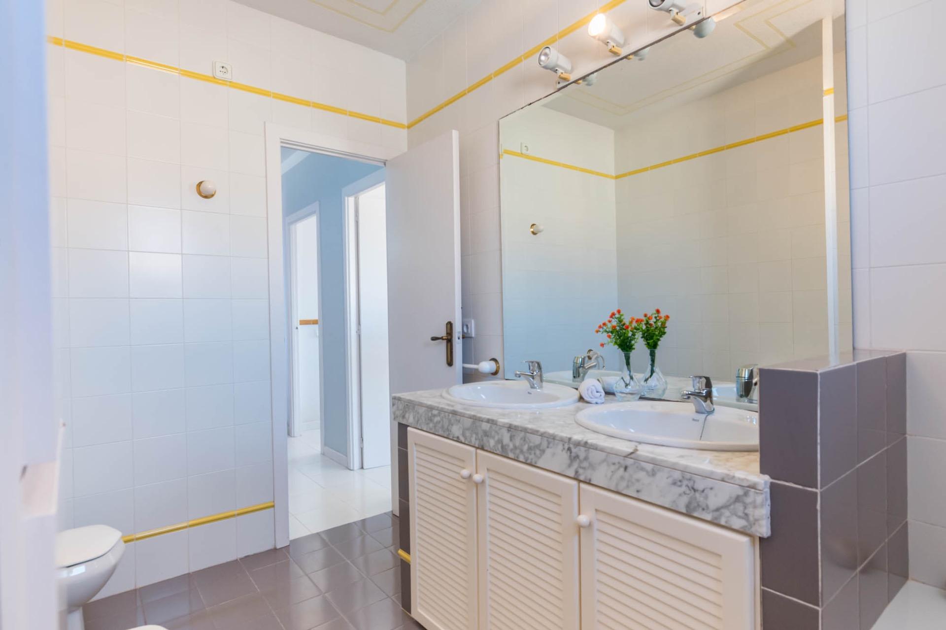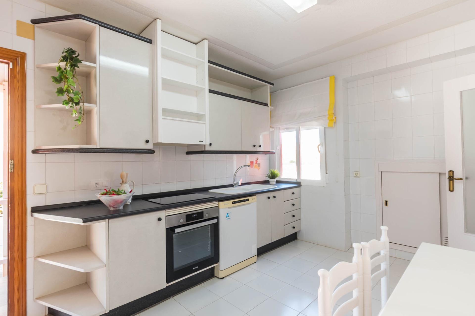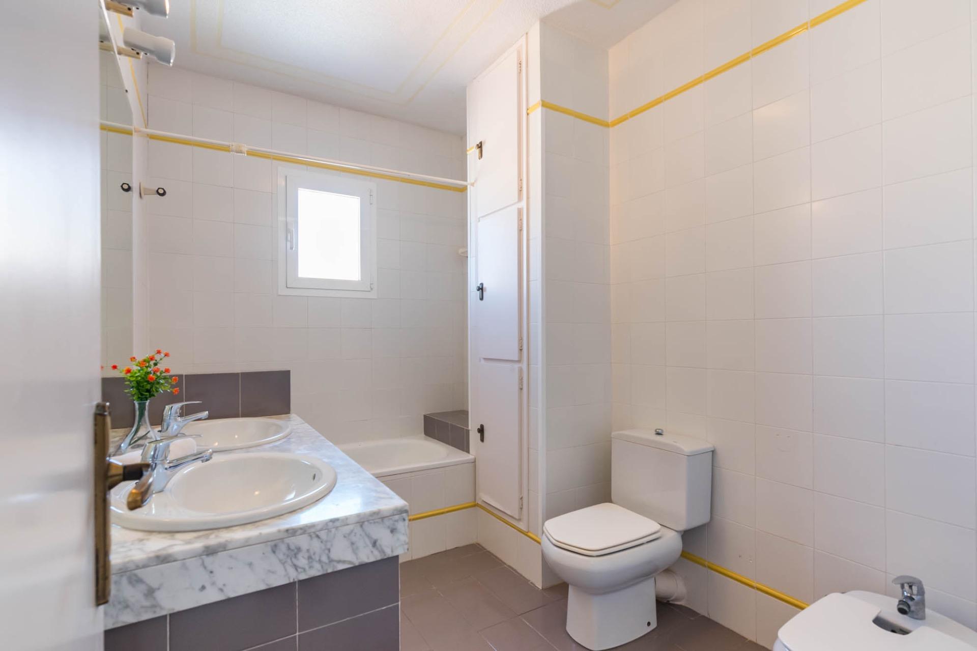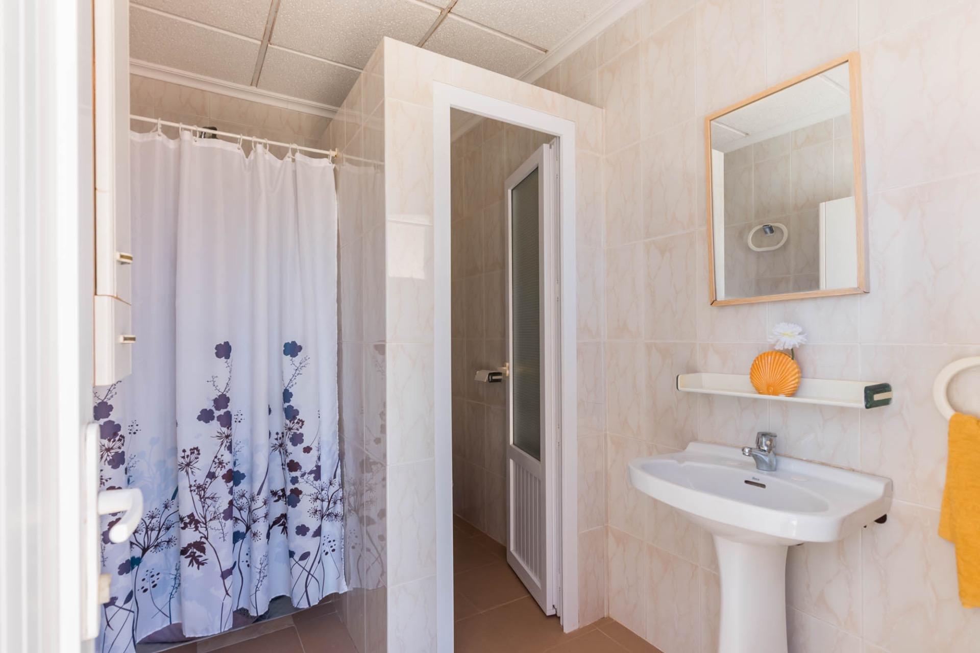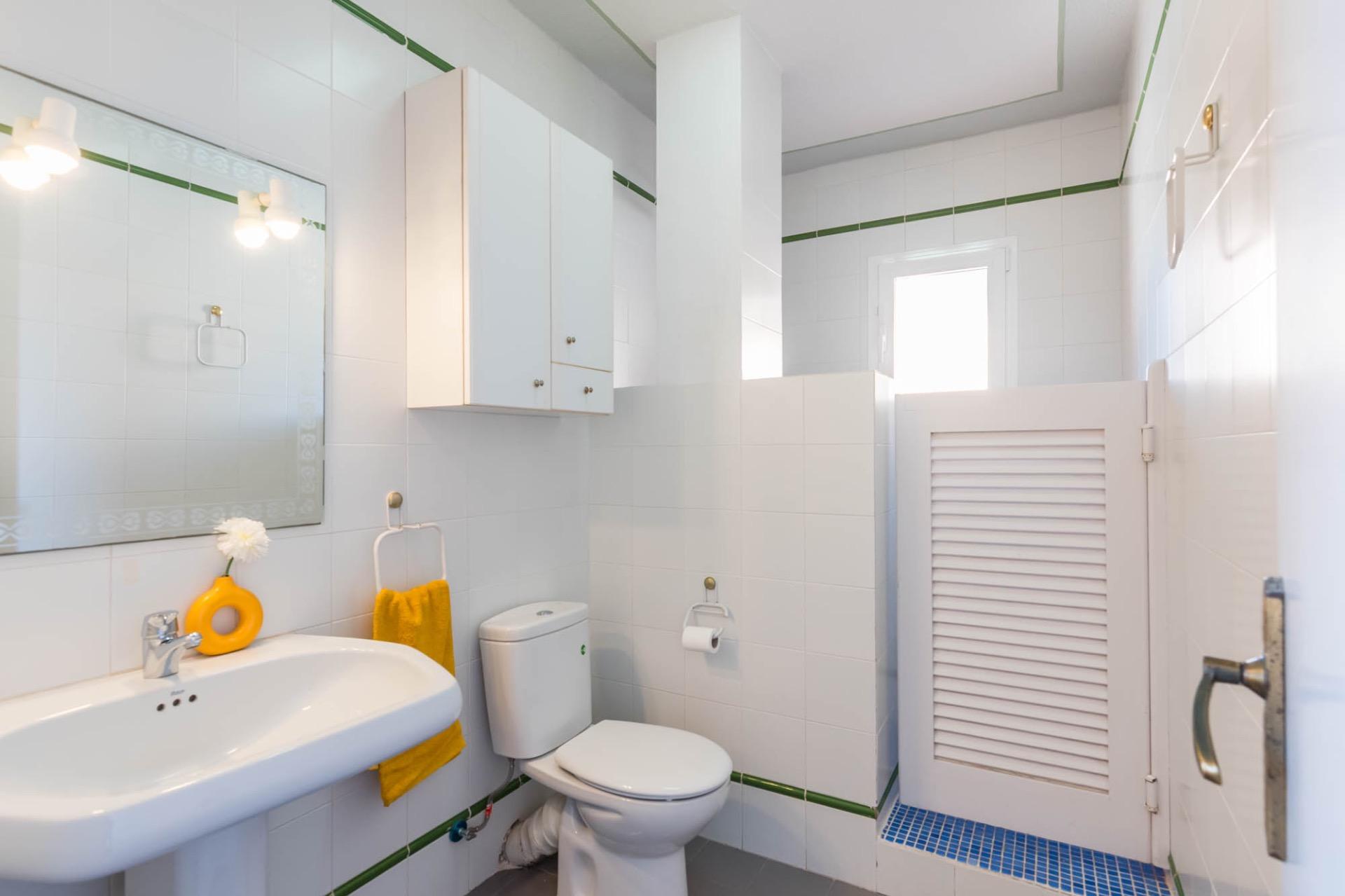 En la planta superior, tres dormitorios llenos de luz natural y un baño completo forman la zona de descanso. El dormitorio principal, ligeramente elevado, dispone de acceso a una terraza privada perfecta para contemplar el atardecer sobre el Mar Menor.