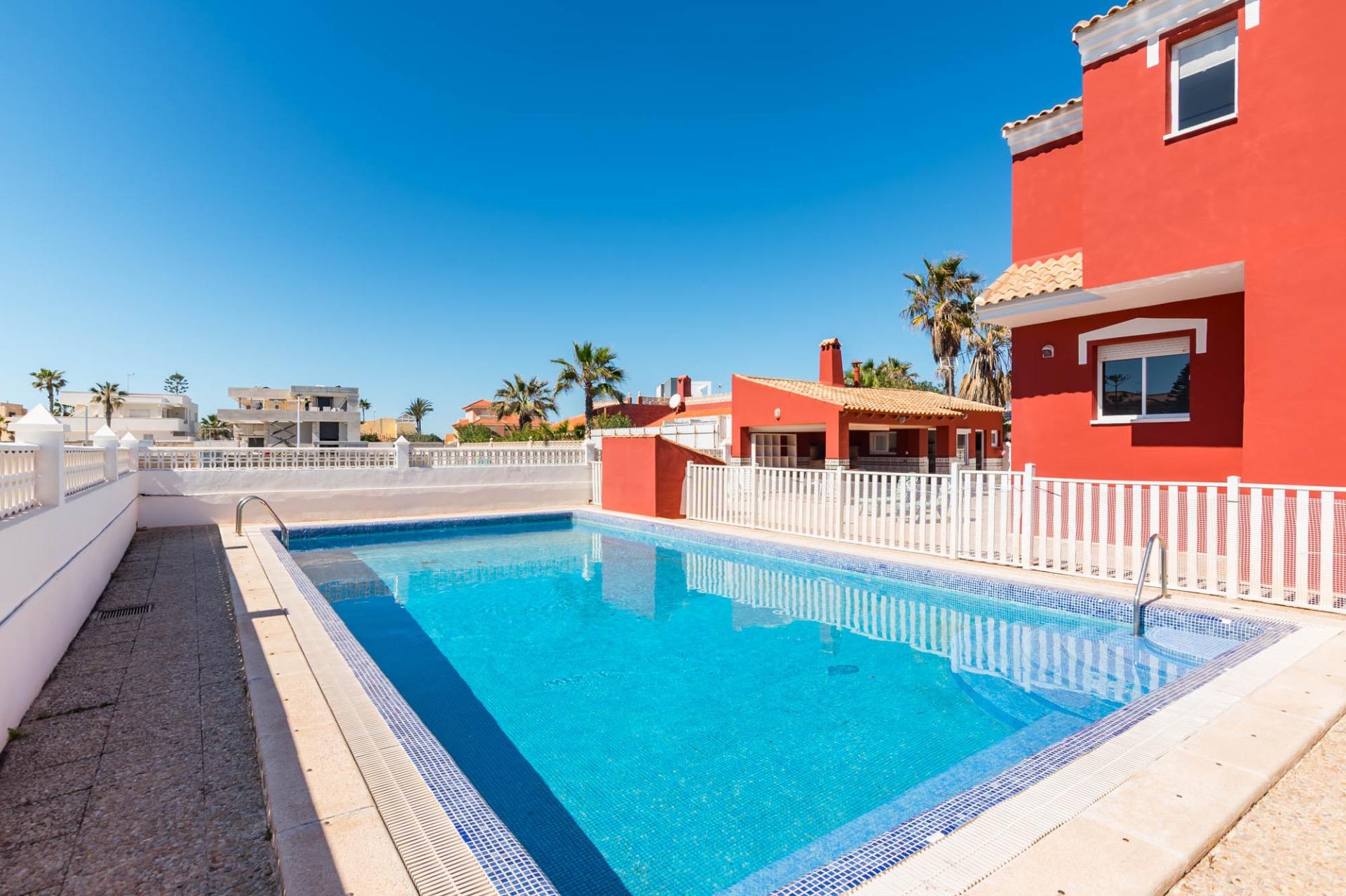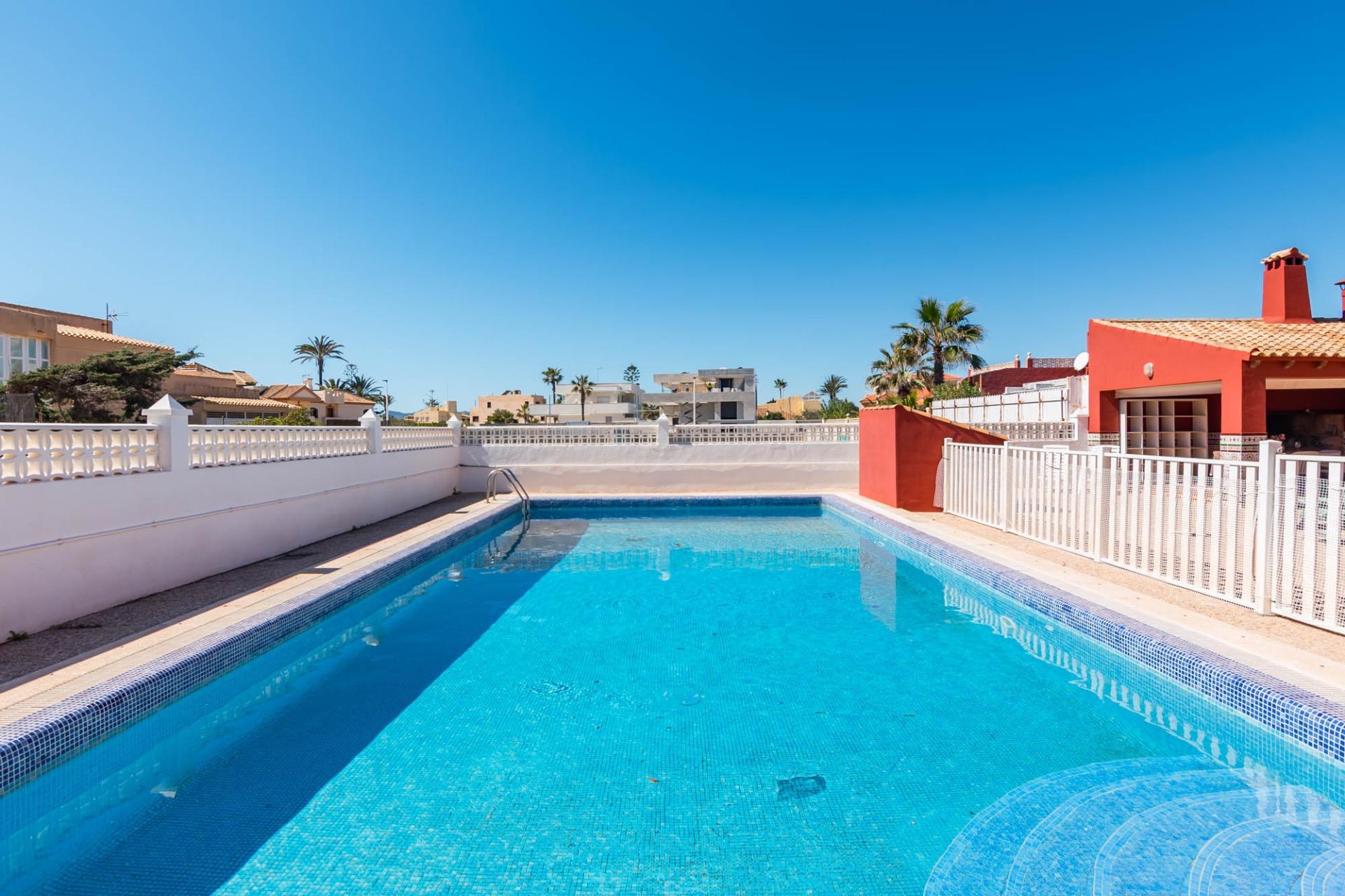 Esta villa unifamiliar combina el encanto mediterráneo con la comodidad de un hogar pensado para disfrutar cada temporada del año. Situada en una de las zonas más exclusivas de La Manga, se levanta sobre una amplia parcela privada con acceso cómodo y vistas despejadas.