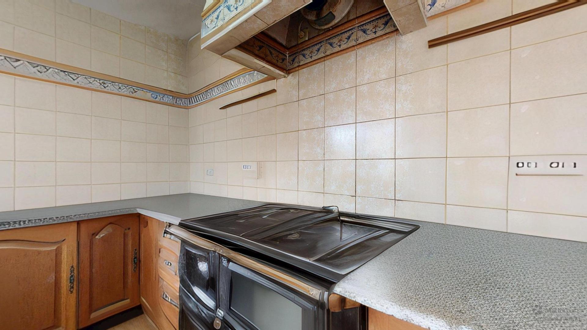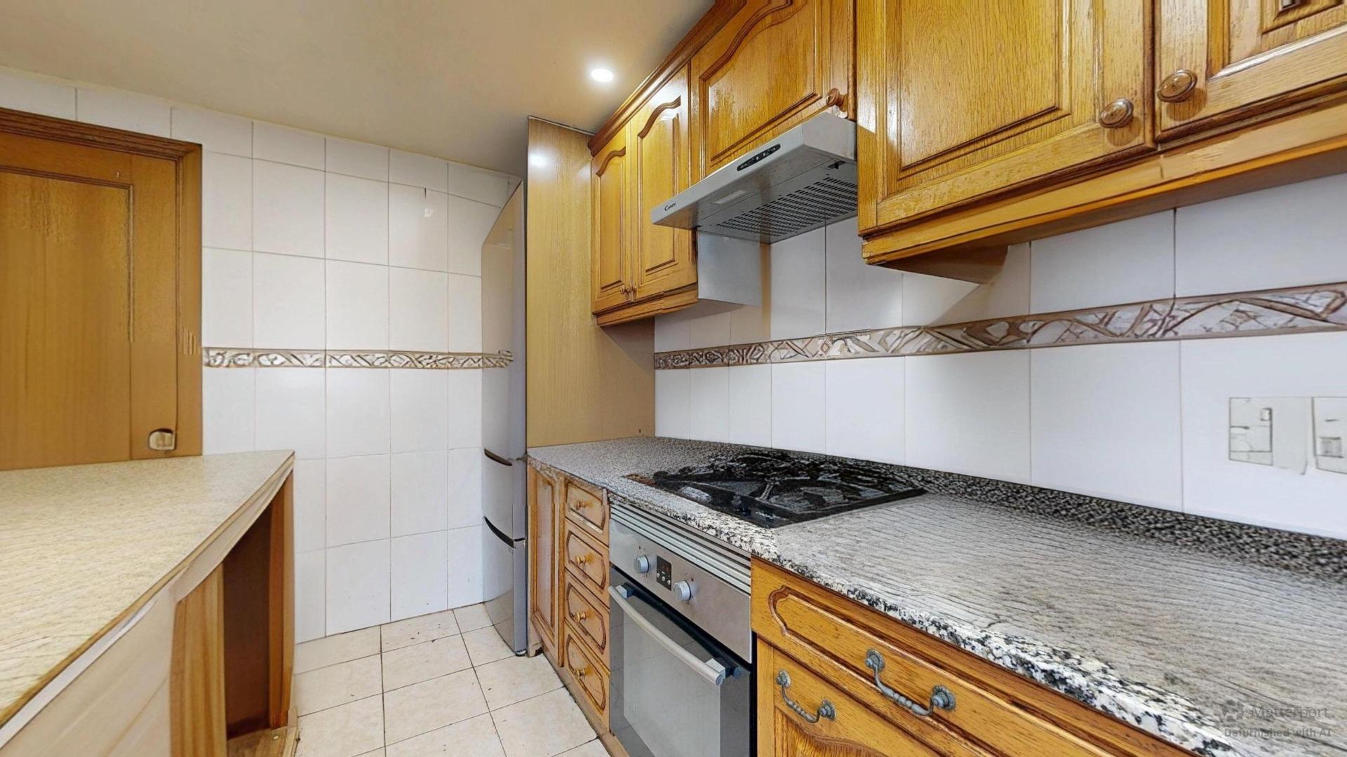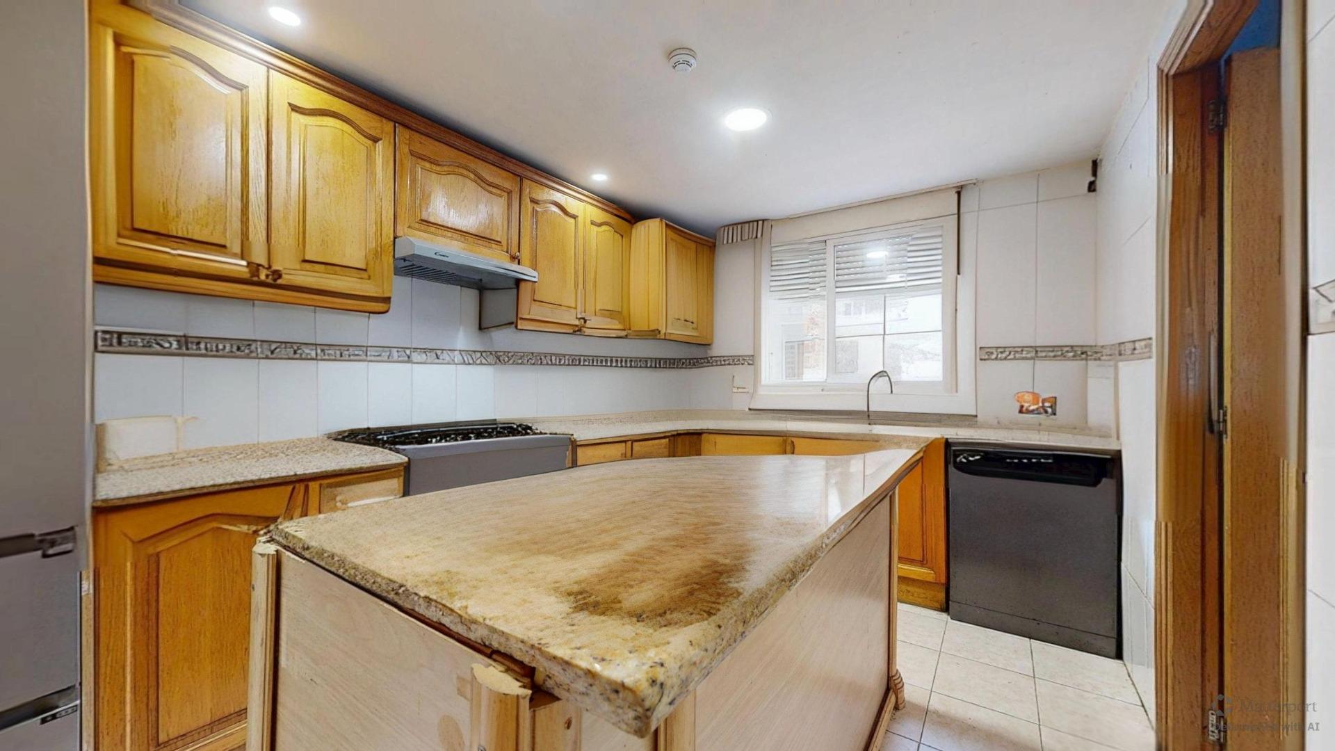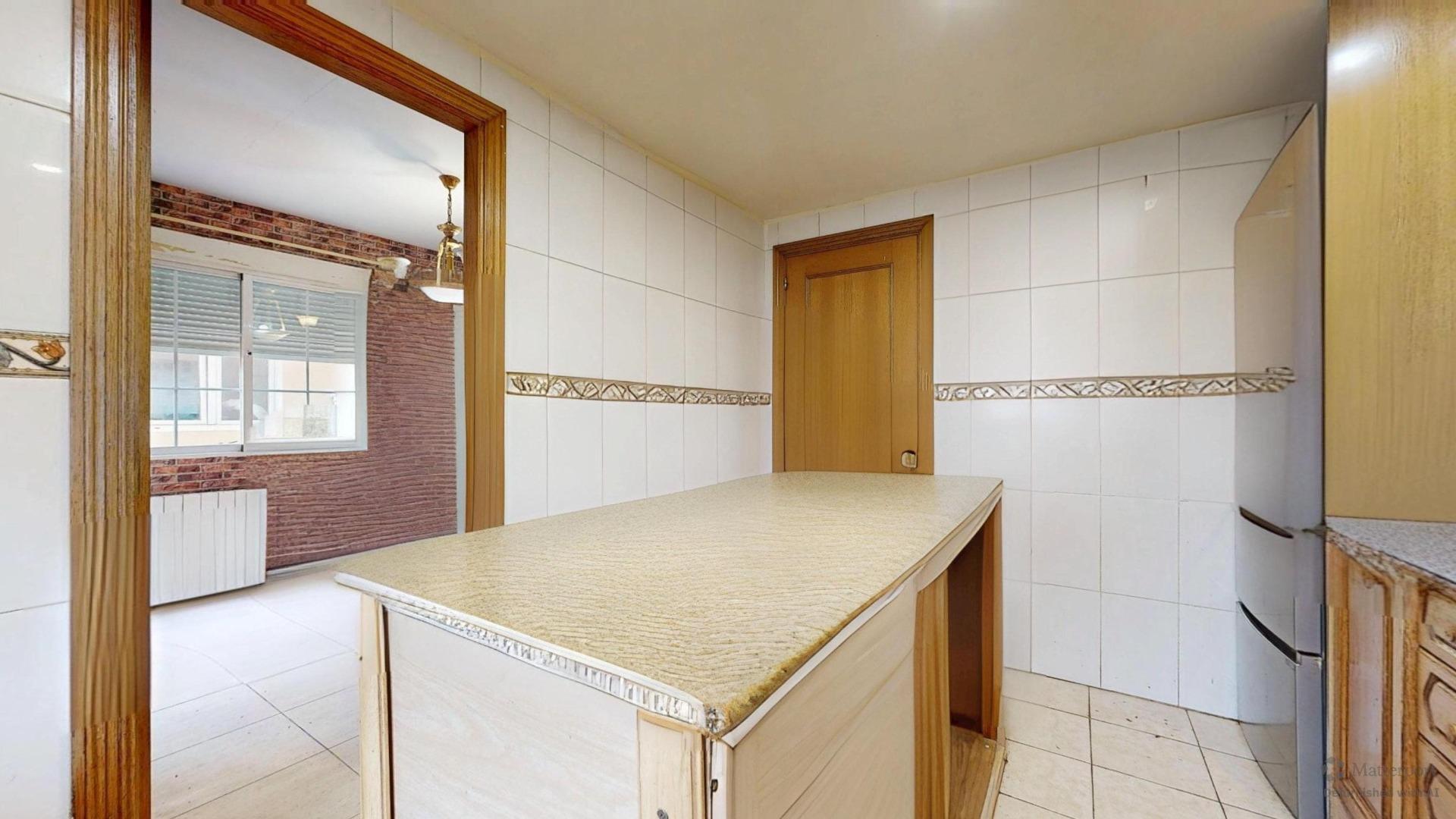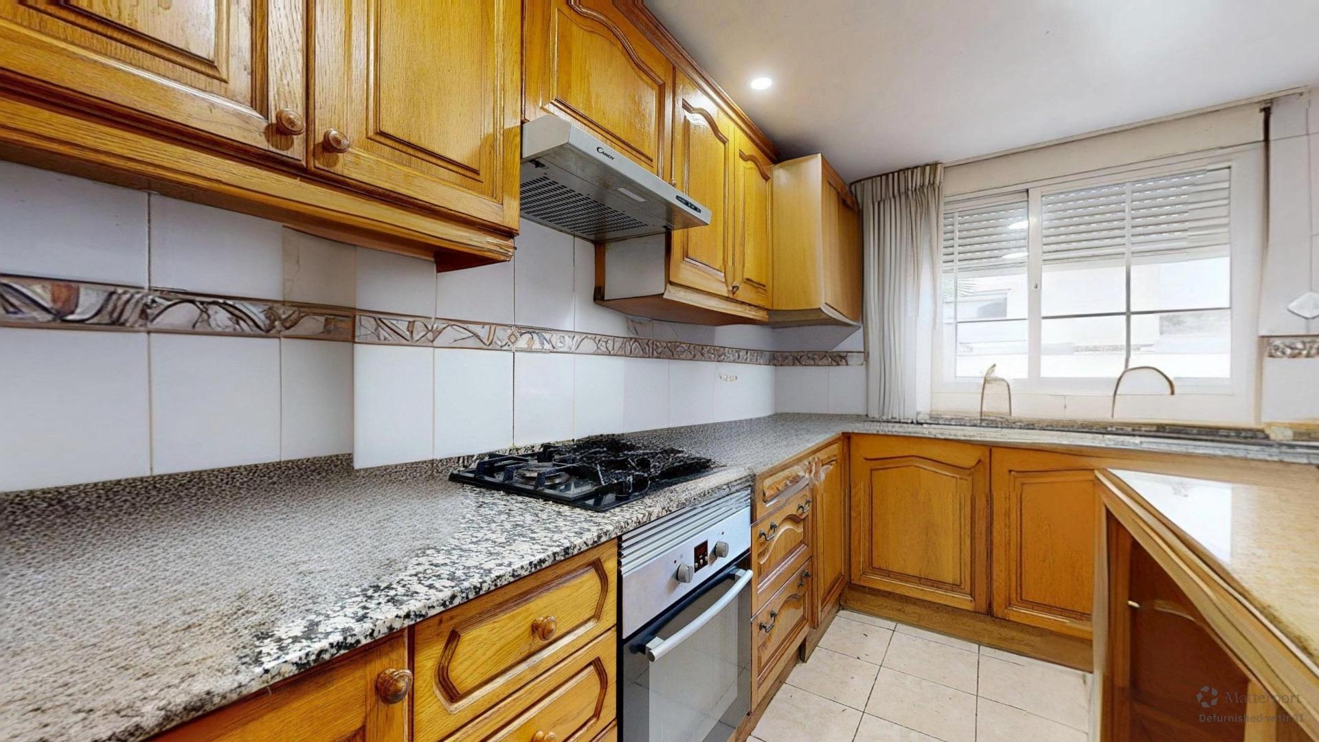 Cocina independiente con isla central y armario despensa, espaciosa y funcional, con todo lo necesario para disfrutar de la gastronomía en casa con un toque de modernidad. Lo que facilita el día a día y la conexión con la zona de ocio al aire libre.