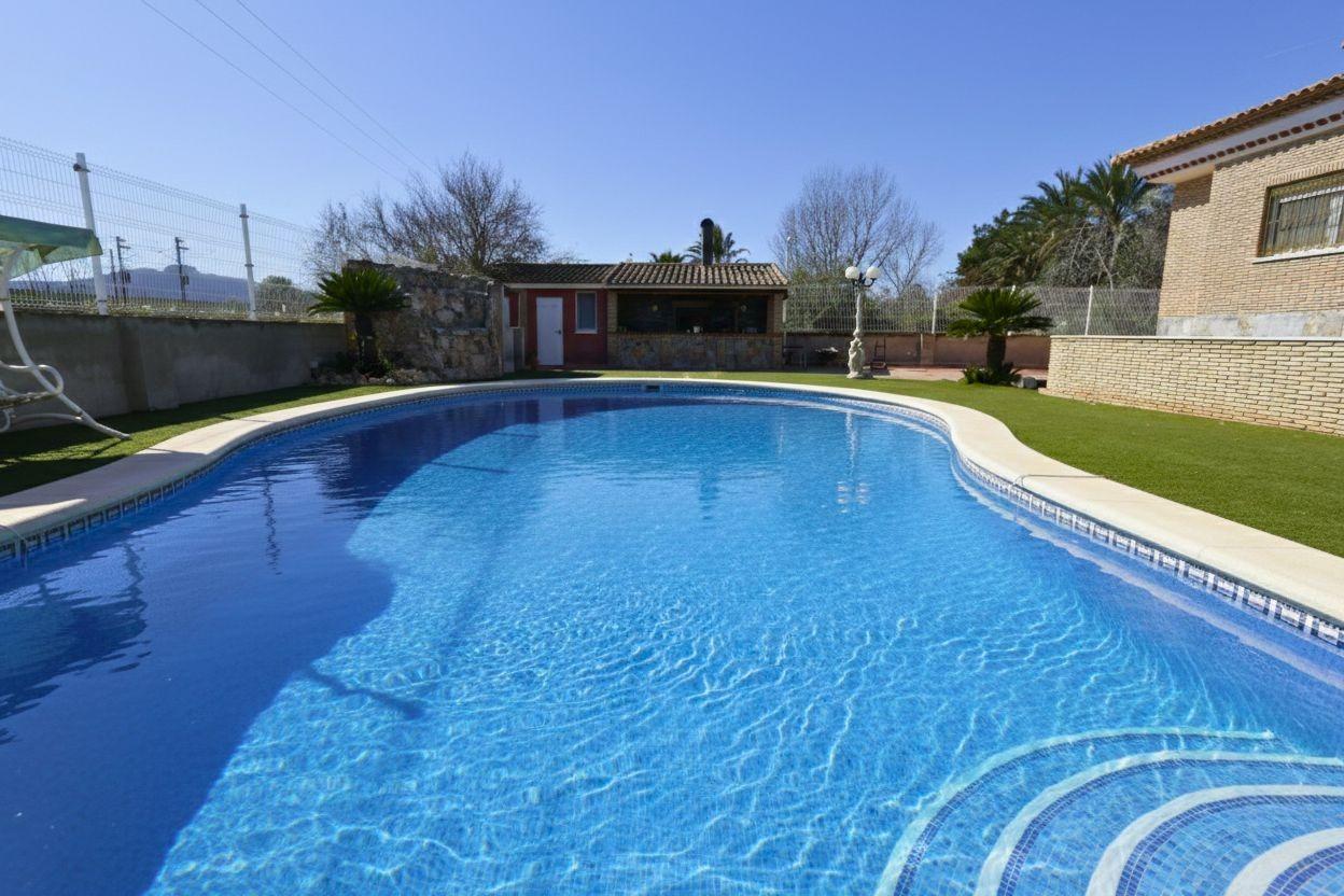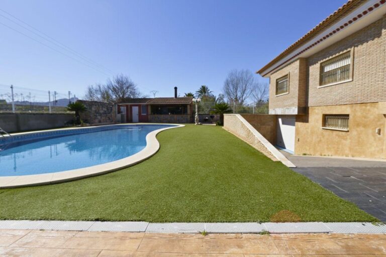 Uno de los grandes atractivos de la vivienda es su zona de piscina privada de aproximadamente 14 x 7 metros, acompañada de cocina de verano con bar, horno y barbacoa, además de baño y vestuario para la piscina y dos trasteros, configurando un espacio perfecto para disfrutar del clima mediterráneo con familia y amigos.