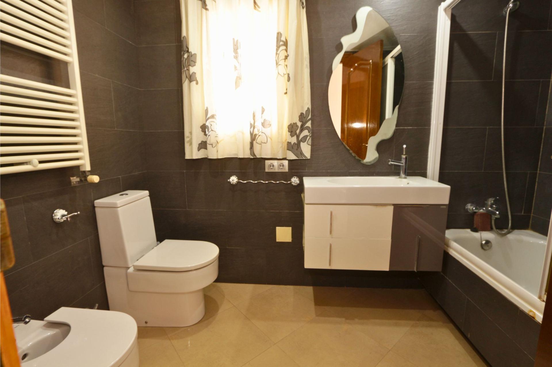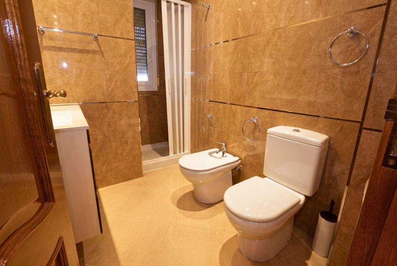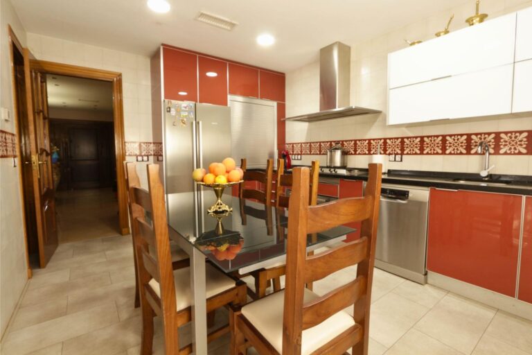 En cuanto a equipamiento, la vivienda dispone de calefacción mediante radiadores de gasoil en todas las estancias y aire acondicionado centralizado frío-calor por conductos, garantizando confort durante todo el año. Cuenta también con puertas interiores de roble, armarios empotrados, sistema de alarma antirrobo, videoportero y ventanas de aluminio blanco con doble acristalamiento tipo Climalit.