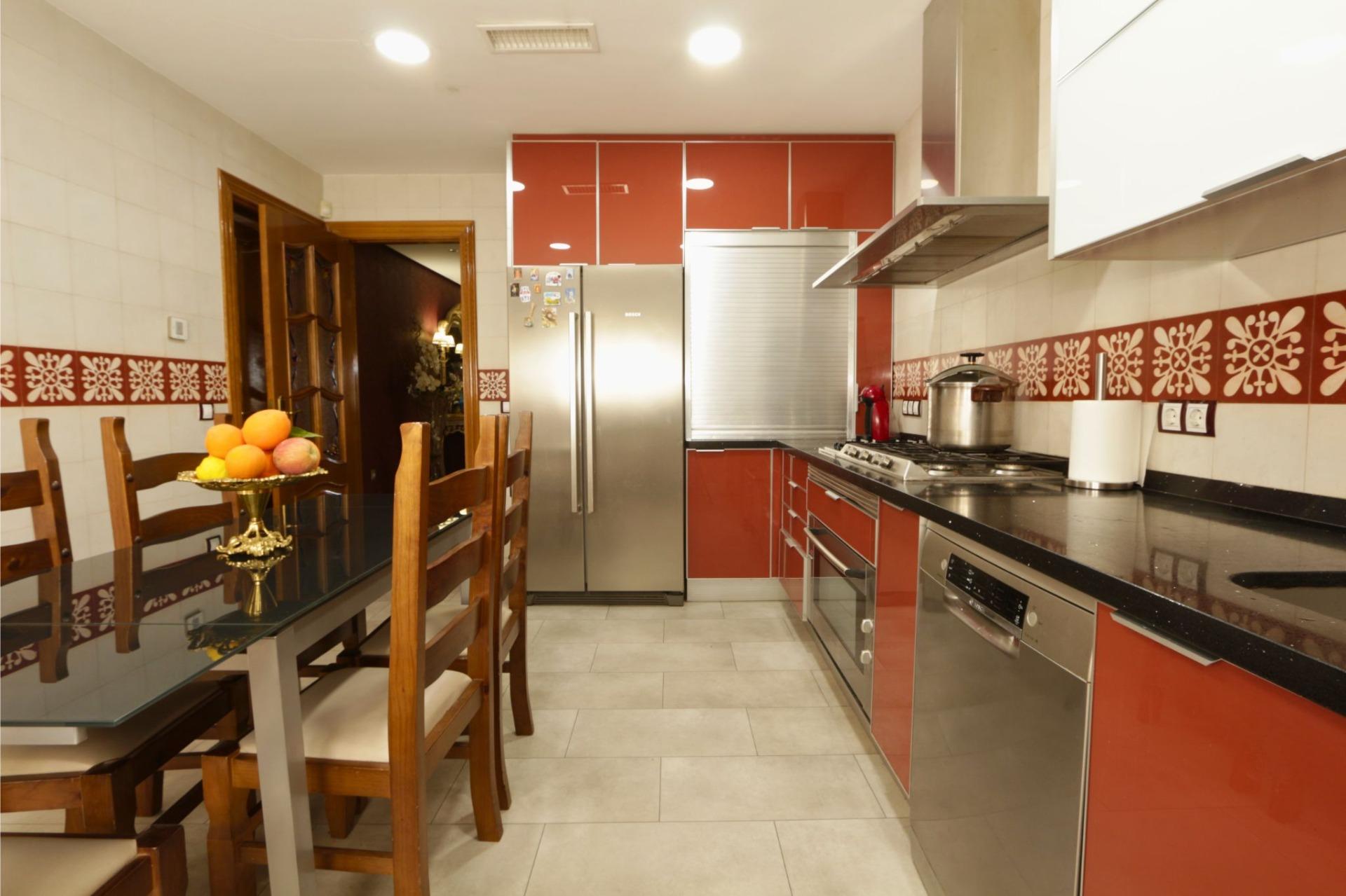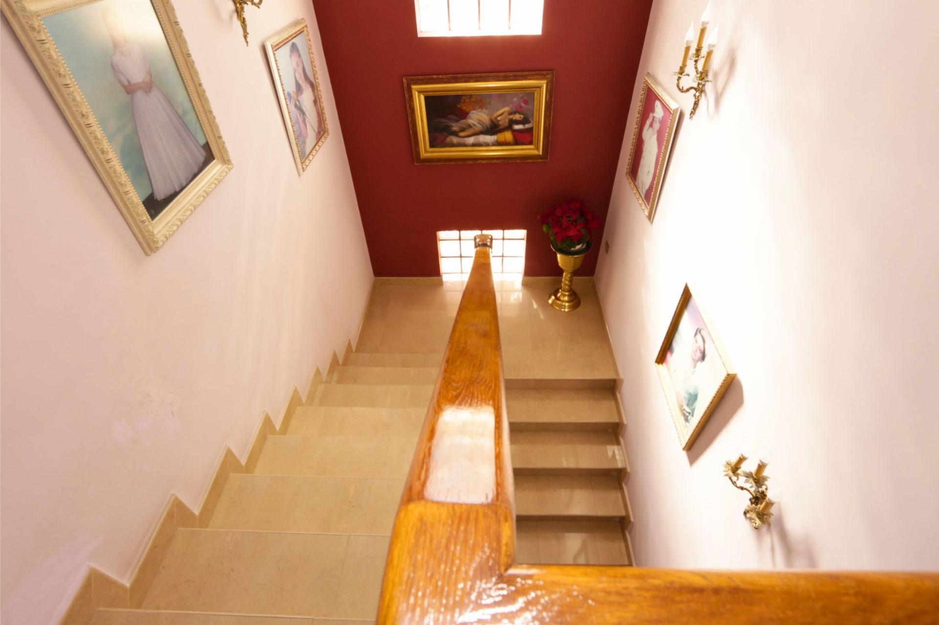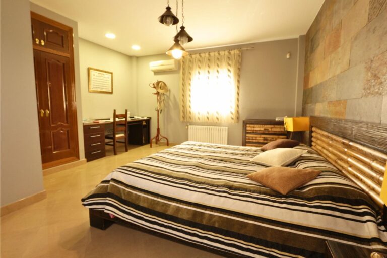 En la planta baja, un amplio porche de entrada da acceso a la vivienda y conduce a un pasillo distribuidor desde el que se accede al salón-comedor, una estancia amplia y luminosa orientada hacia la zona de piscina y jardín. La planta se completa con cocina independiente, despensa y galería, además de cuatro dormitorios y tres baños, dos de ellos en suite. El dormitorio principal dispone además de vestidor, aportando mayor comodidad y funcionalidad.