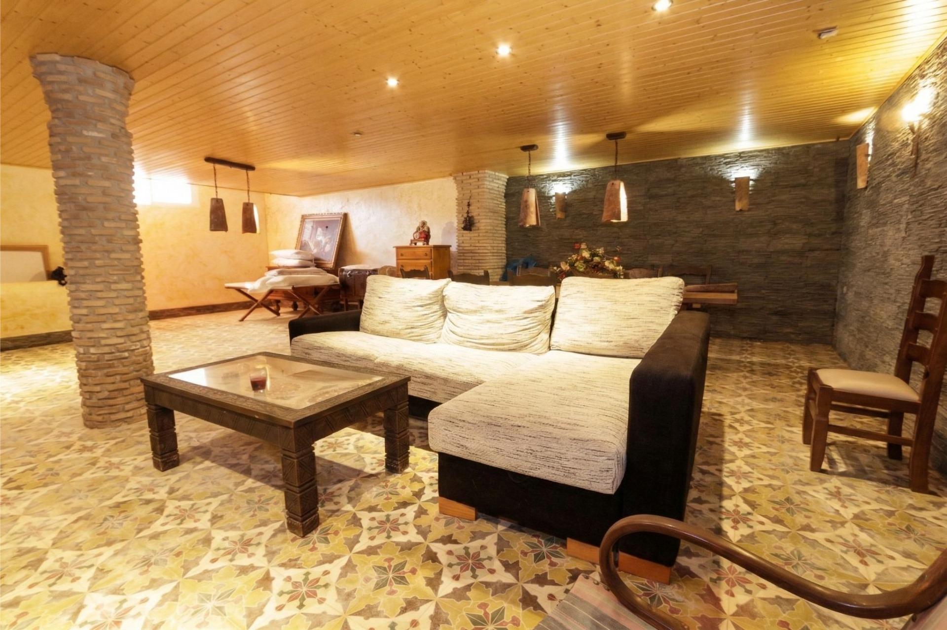 En la planta sótano encontramos un amplio garaje con capacidad para varios vehículos, además de un gran salón-comedor o sala de juegos con estufa de leña, un espacio perfecto para reuniones familiares, celebraciones o zona de ocio para los más jóvenes de la casa.
