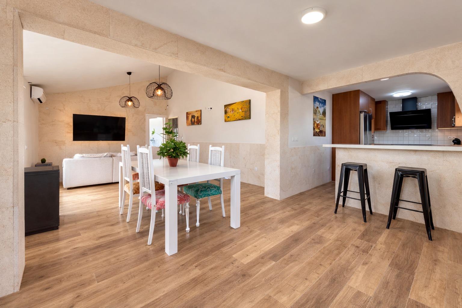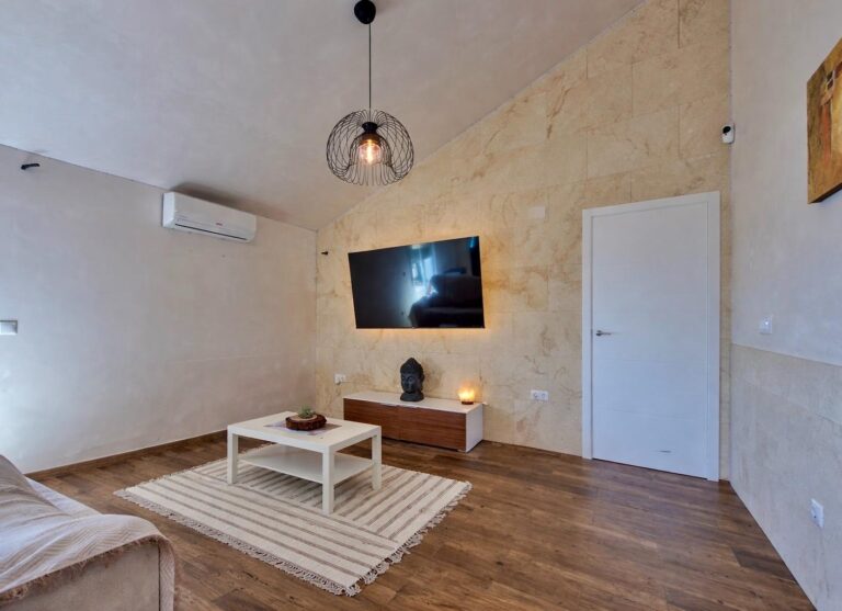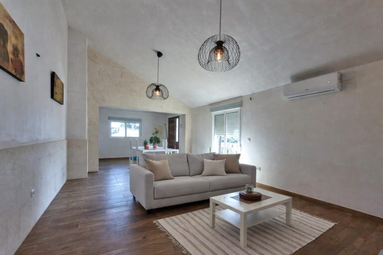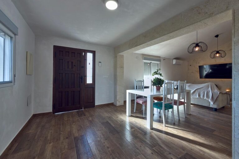 Destacan especialmente sus techos altos con inclinación y las paredes estucadas, que aportan carácter y una sensación de calidez muy especial.