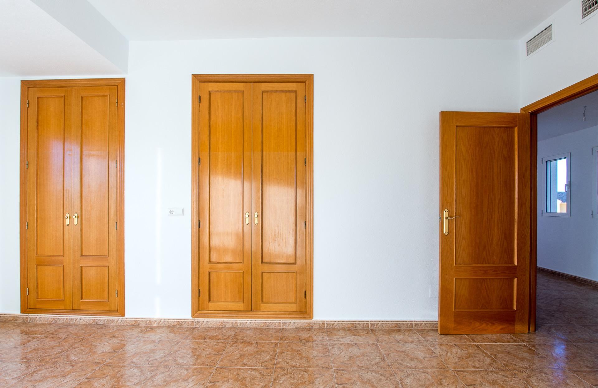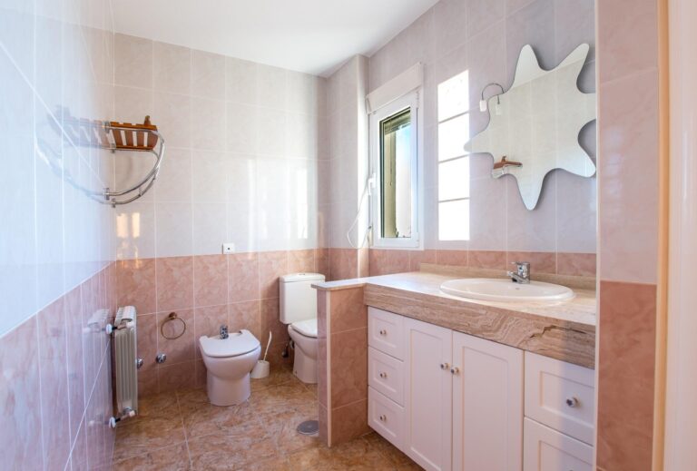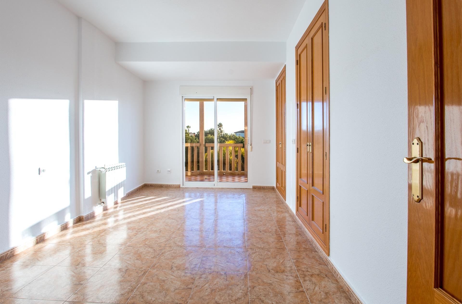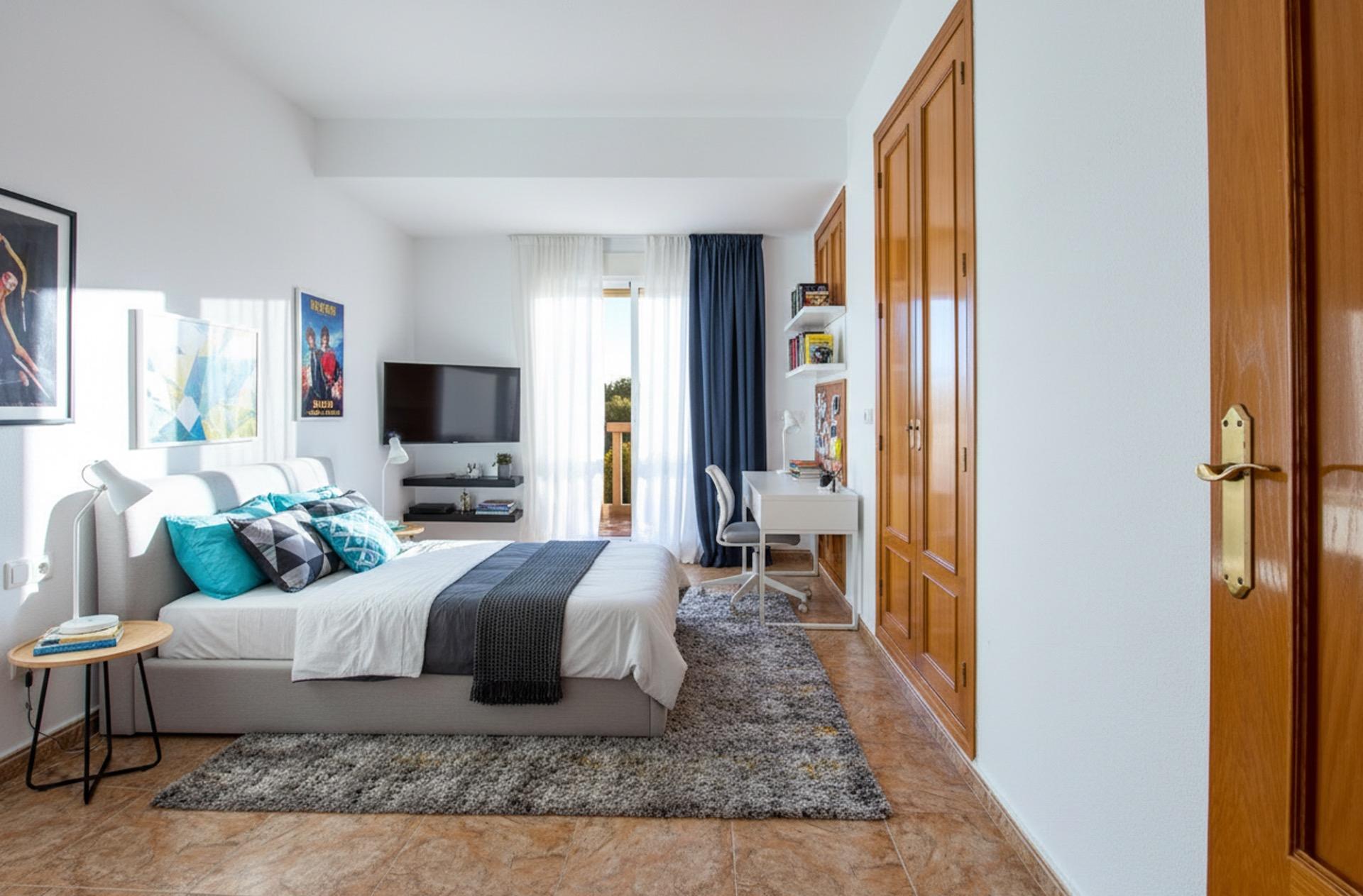 En la planta superior, tres dormitorios se reparten la luz y las vistas; el principal, con baño en suite, se convierte en un refugio privado con el campo de golf como telón de fondo.