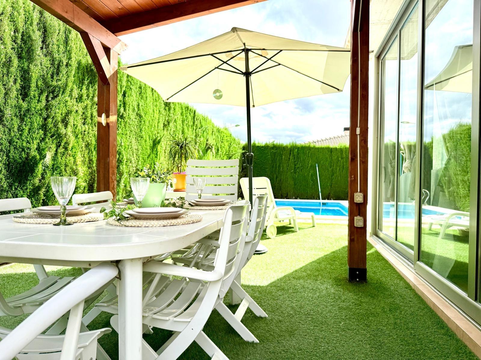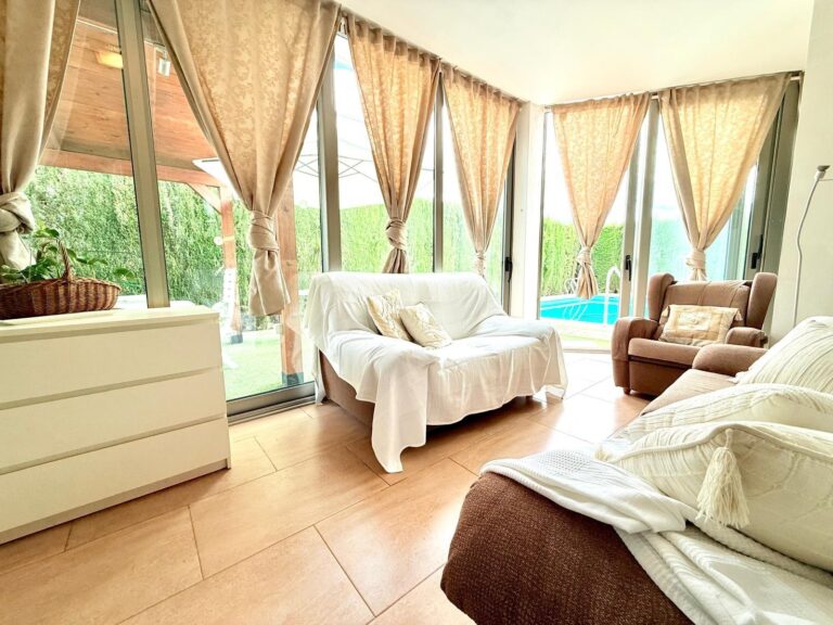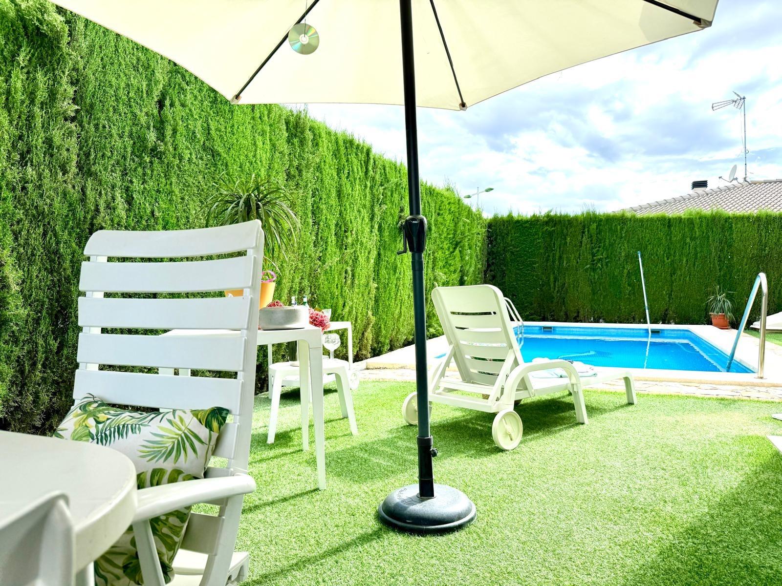 En el exterior, la vivienda cuenta con parcela privada con piscina, zonas de descanso y espacio suficiente para disfrutar del aire libre con total privacidad.