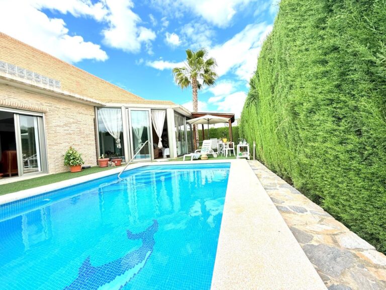 Chalet independiente en la urbanización La Alcayna, con más de 400 m² construidos sobre una parcela de 600 m² con piscina privada, ideal para quienes buscan amplitud, privacidad y múltiples espacios para disfrutar en familia.