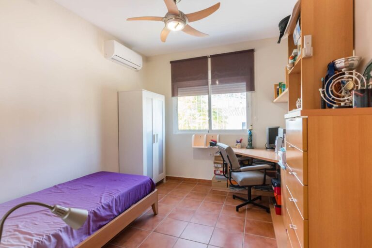 La planta primera alberga dos dormitorios adicionales, con amplias ventanas que permiten la entrada de luz natural, creando espacios luminosos y agradables. Además, esta planta cuenta con un baño completo que da servicio a estas estancias.