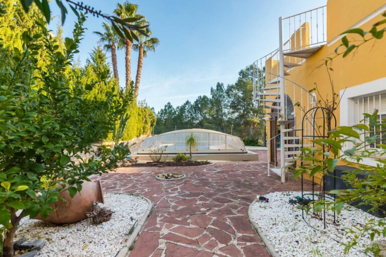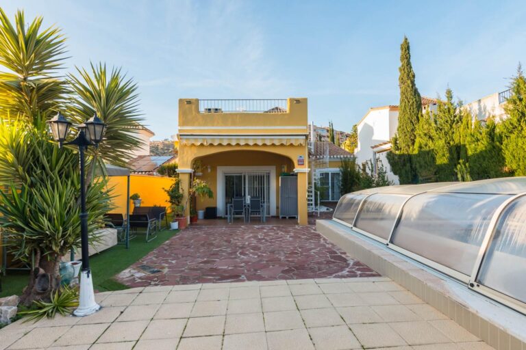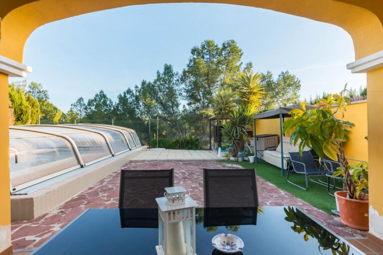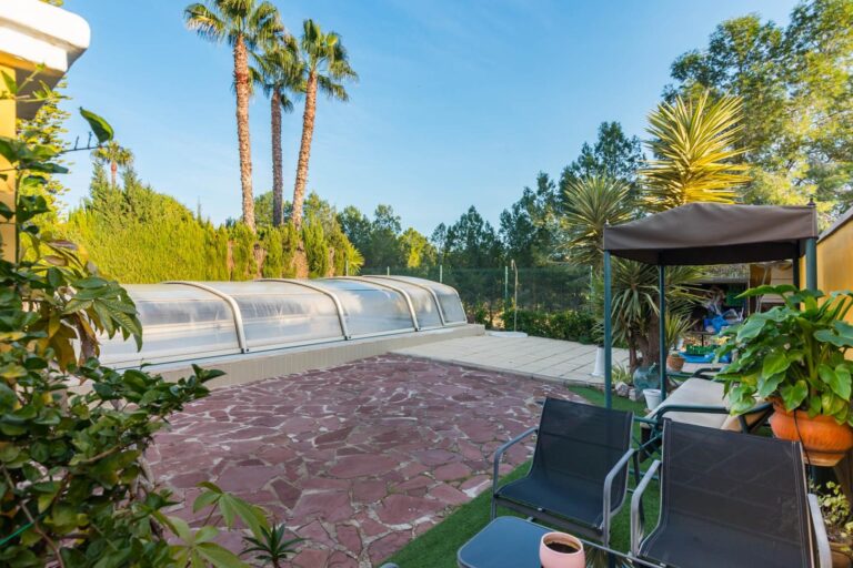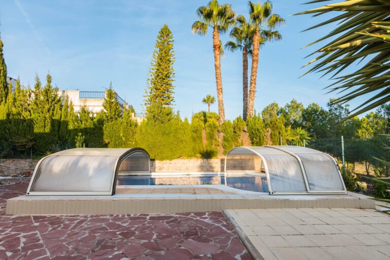 Piscina con cubierta retráctil, ideal para disfrutar de un baño en cualquier época del año.