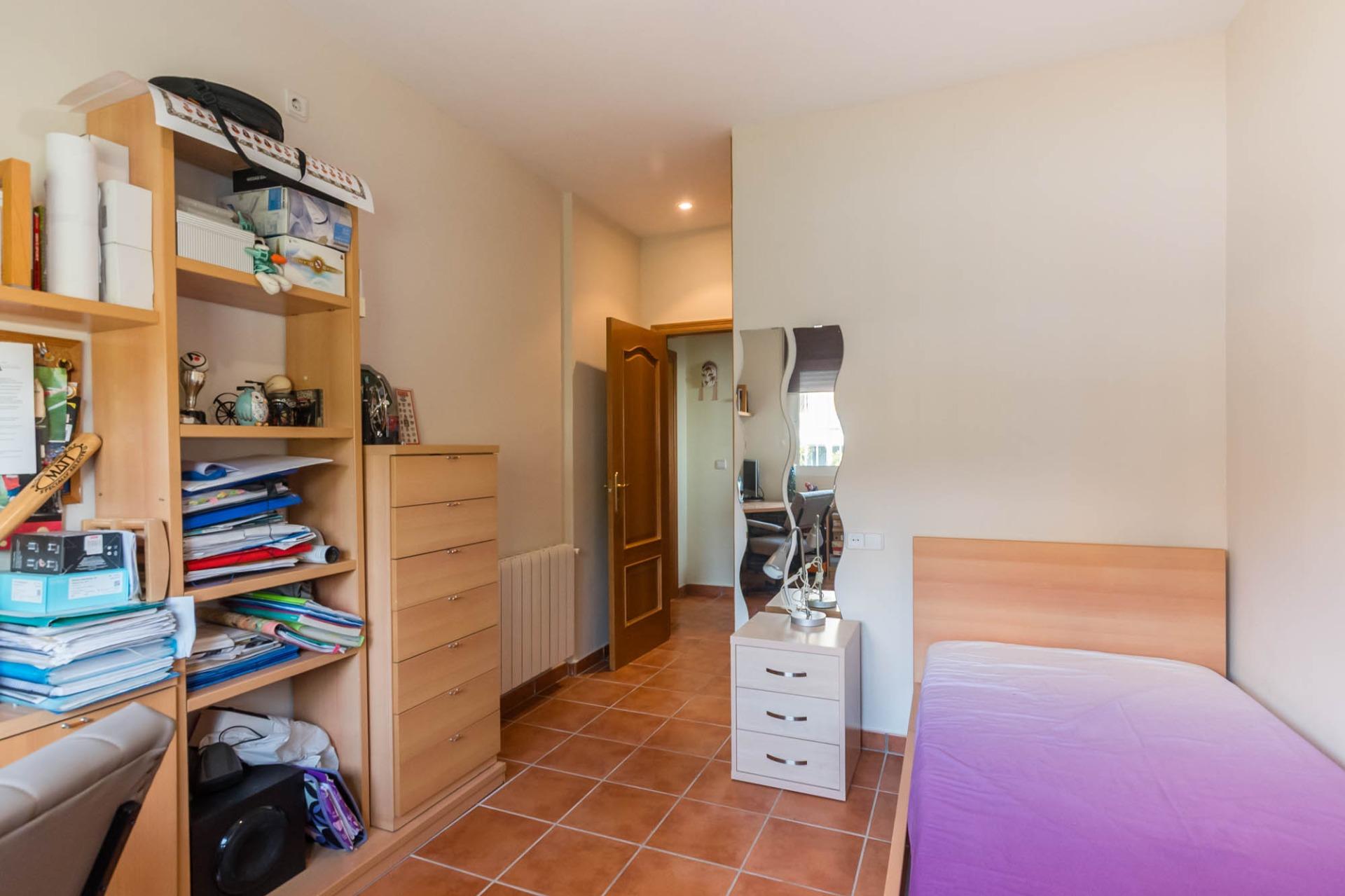 La planta primera alberga dos dormitorios adicionales, con amplias ventanas que permiten la entrada de luz natural, creando espacios luminosos y agradables. Además, esta planta cuenta con un baño completo que da servicio a estas estancias.