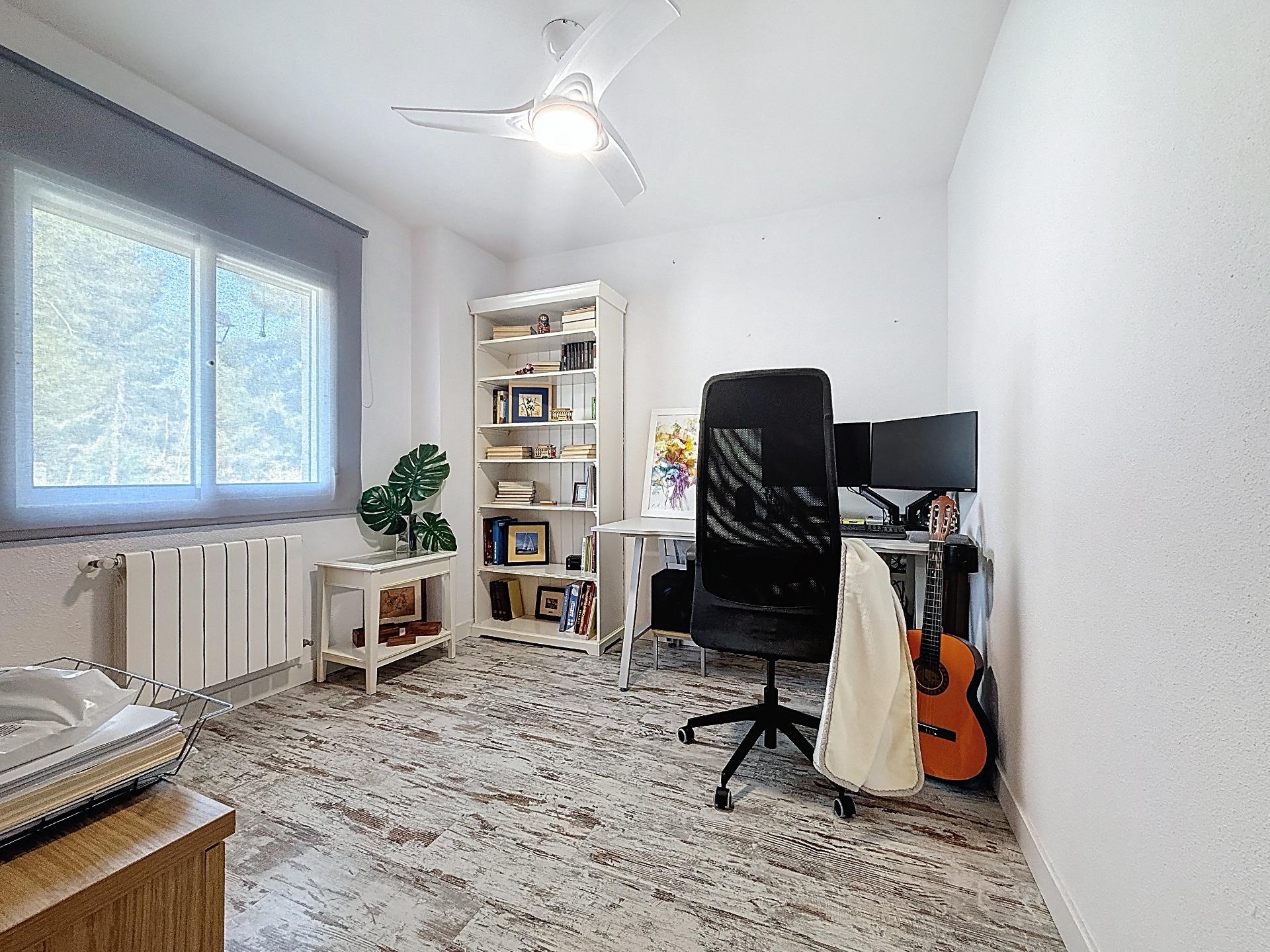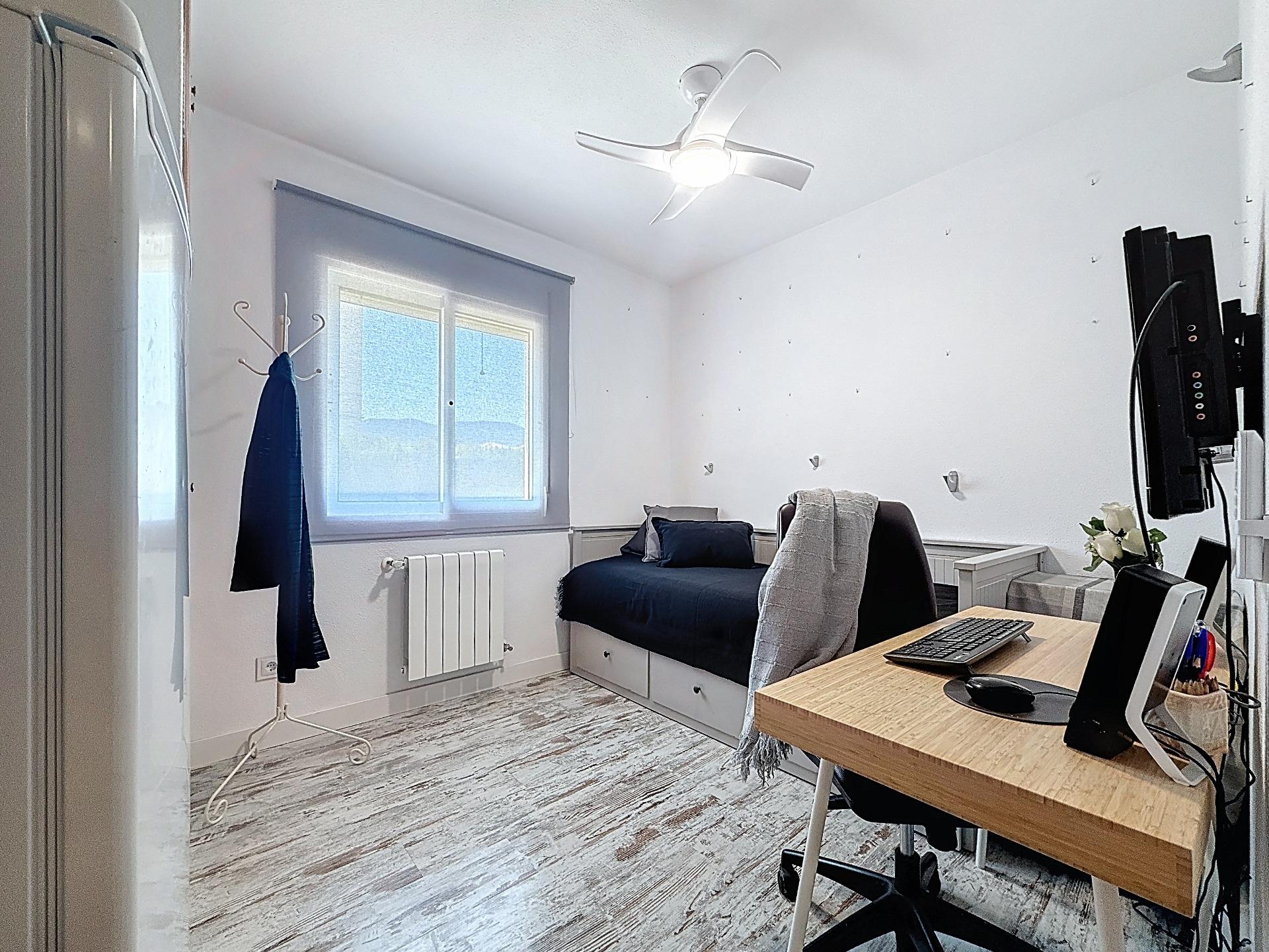 En la planta baja encontramos dos habitaciones individuales y un baño con bañera, una distribución muy cómoda para familias, invitados o incluso para destinar una estancia a despacho. En la primera planta se ubica la habitación principal, amplia y luminosa, con dos armarios empotrados, baño con ducha y terraza privada, un rincón perfecto para desconectar y disfrutar del entorno.