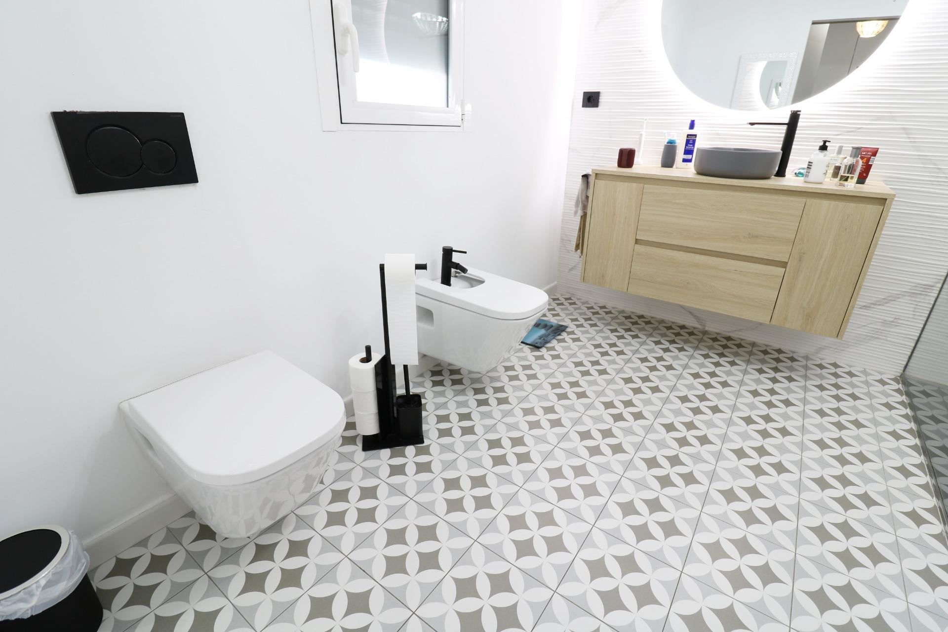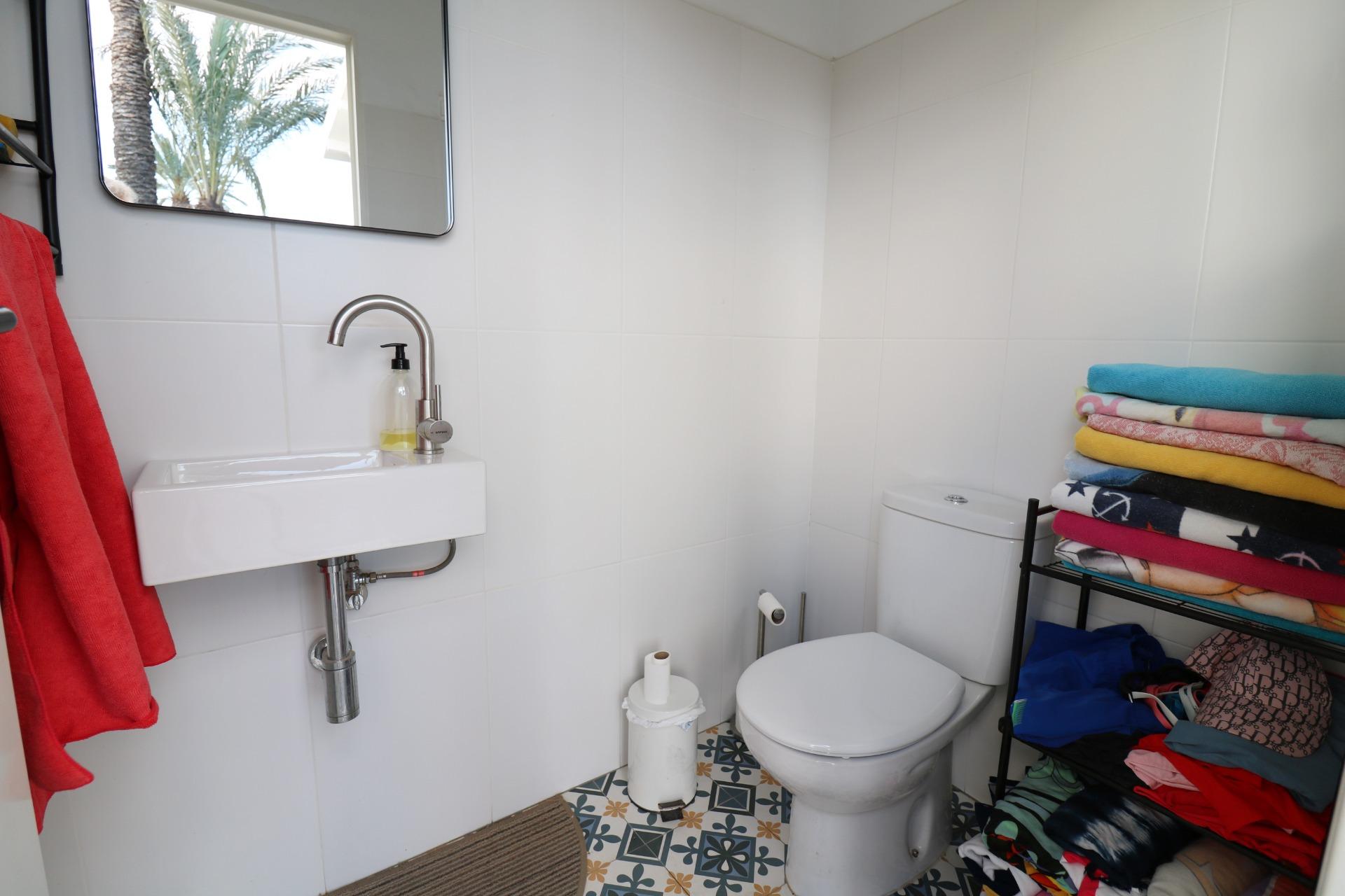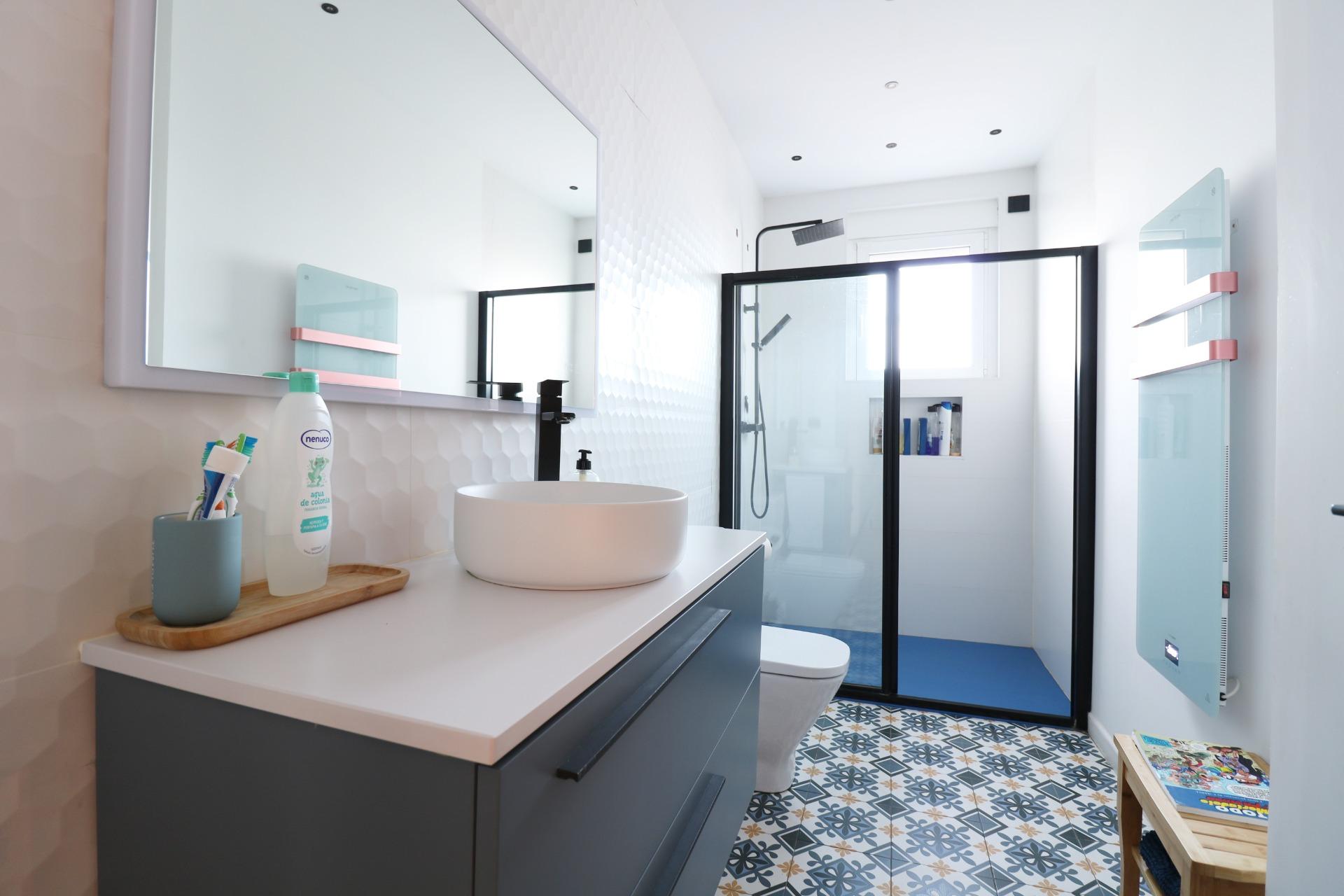 1 moderno baño completo y 1 aseo exterior para zona piscina.