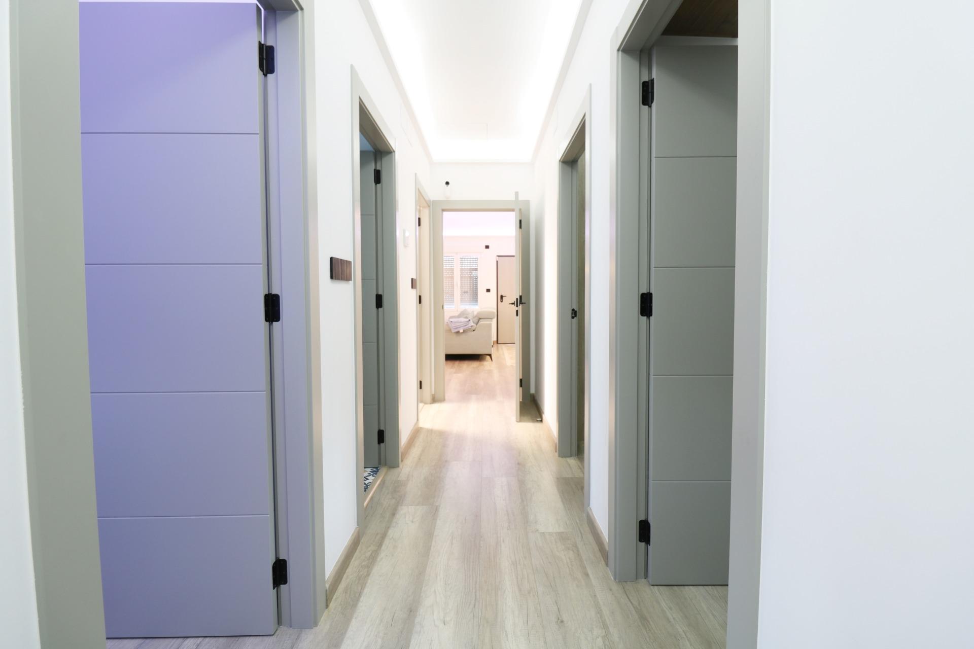 Carpintería lacada en blanco y suelos de parquet de alta calidad que aportan luminosidad y elegancia a cada rincón.