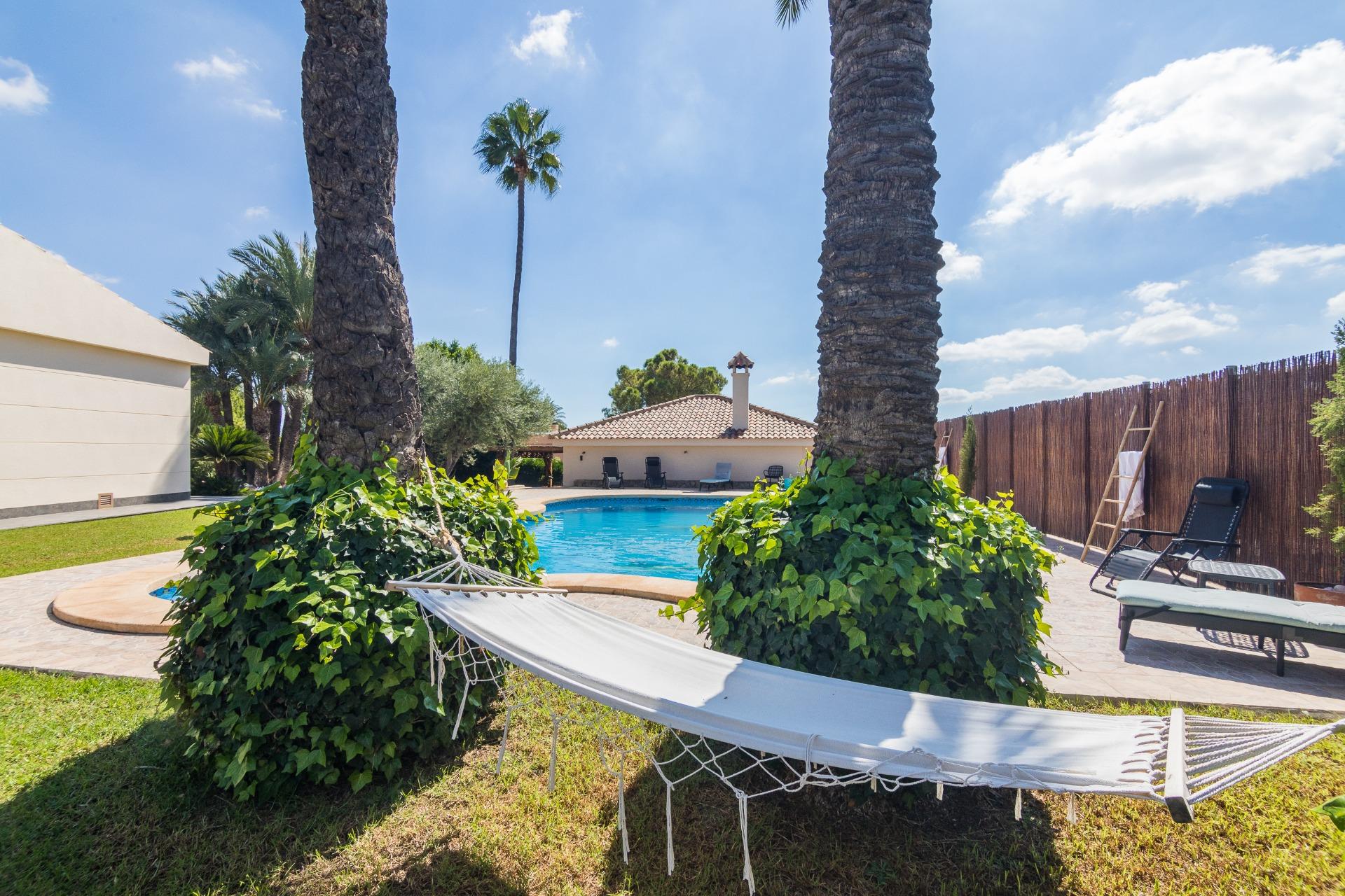 Este impresionante chalet independiente, a solo dos minutos de Elche, es una joya en la codiciada zona de Peña de las Águilas. Situado en un generoso terreno de 2204 metros cuadrados, esta casa es un oasis de comodidad y lujo.