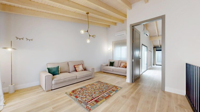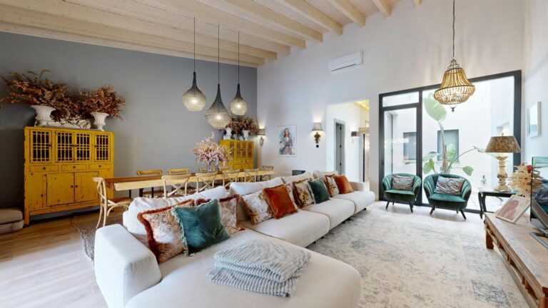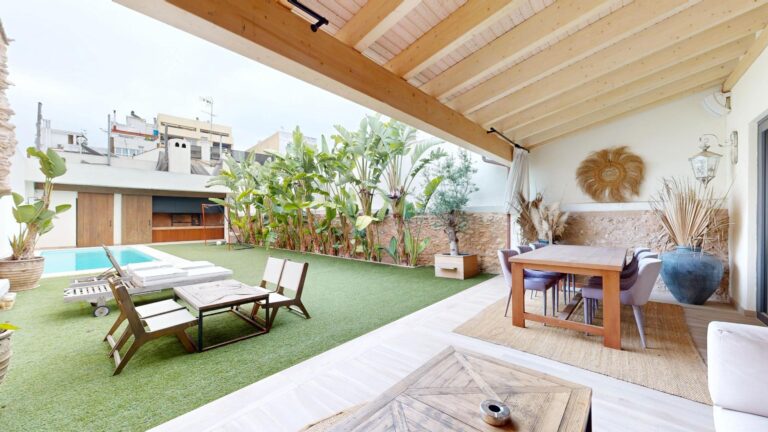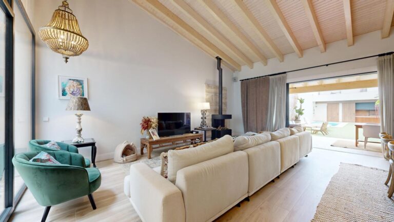Esta propiedad combina la arquitectura tradicional (fachada histórica y techos altos con vigas de madera laminadas) con comodidades modernas como la luz indirecta, climatización integral y espacios abiertos llenos de luz. La casa es completamente nueva del 2021.