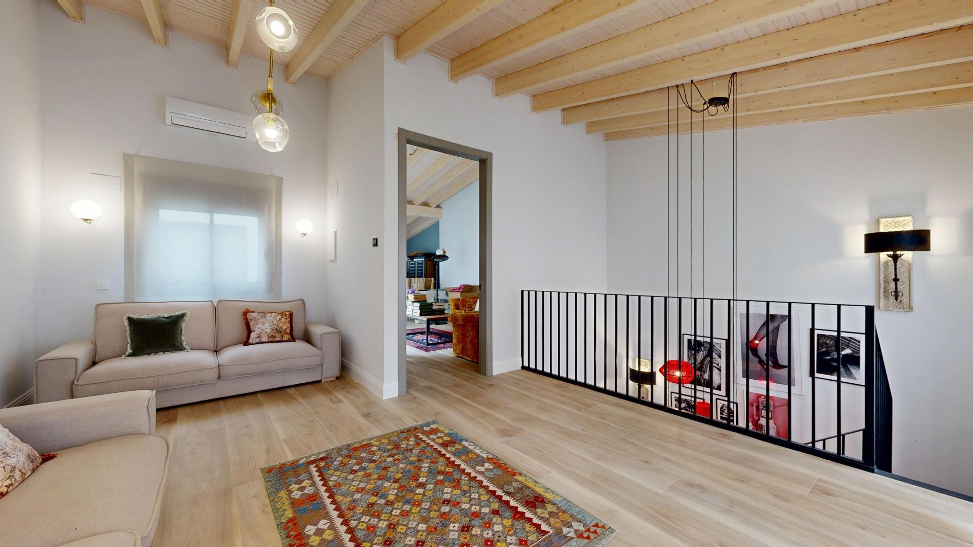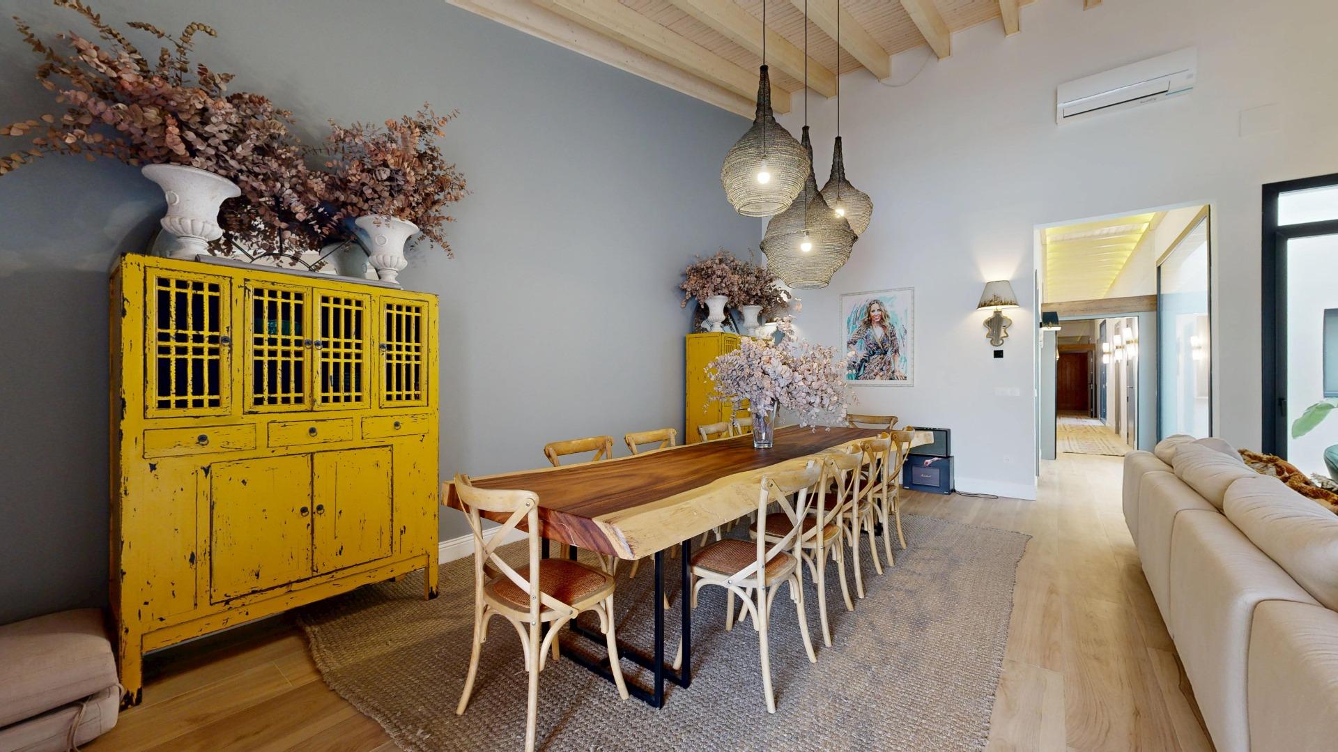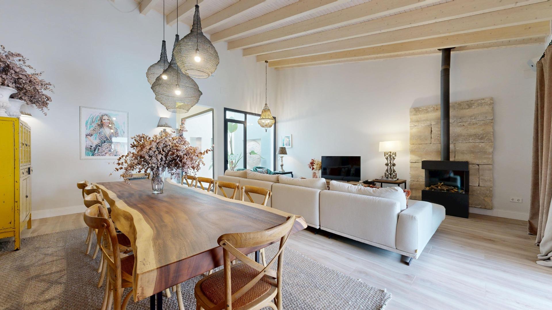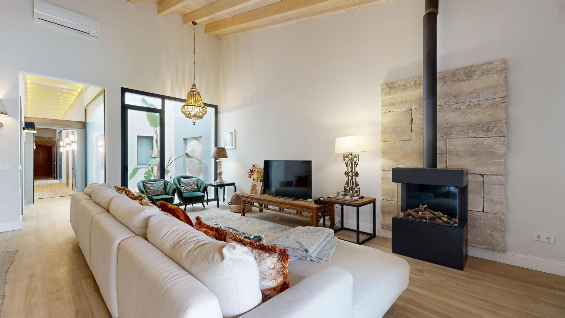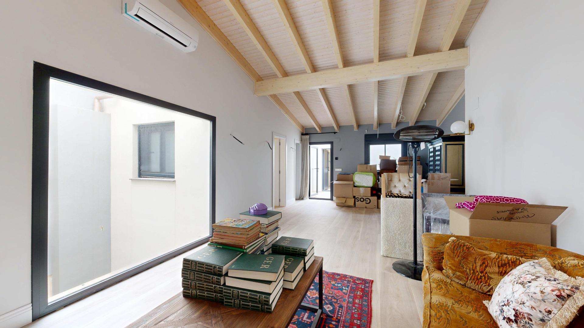 Esta propiedad combina la arquitectura tradicional (fachada histórica y techos altos con vigas de madera laminadas) con comodidades modernas como la luz indirecta, climatización integral y espacios abiertos llenos de luz. La casa es completamente nueva del 2021.