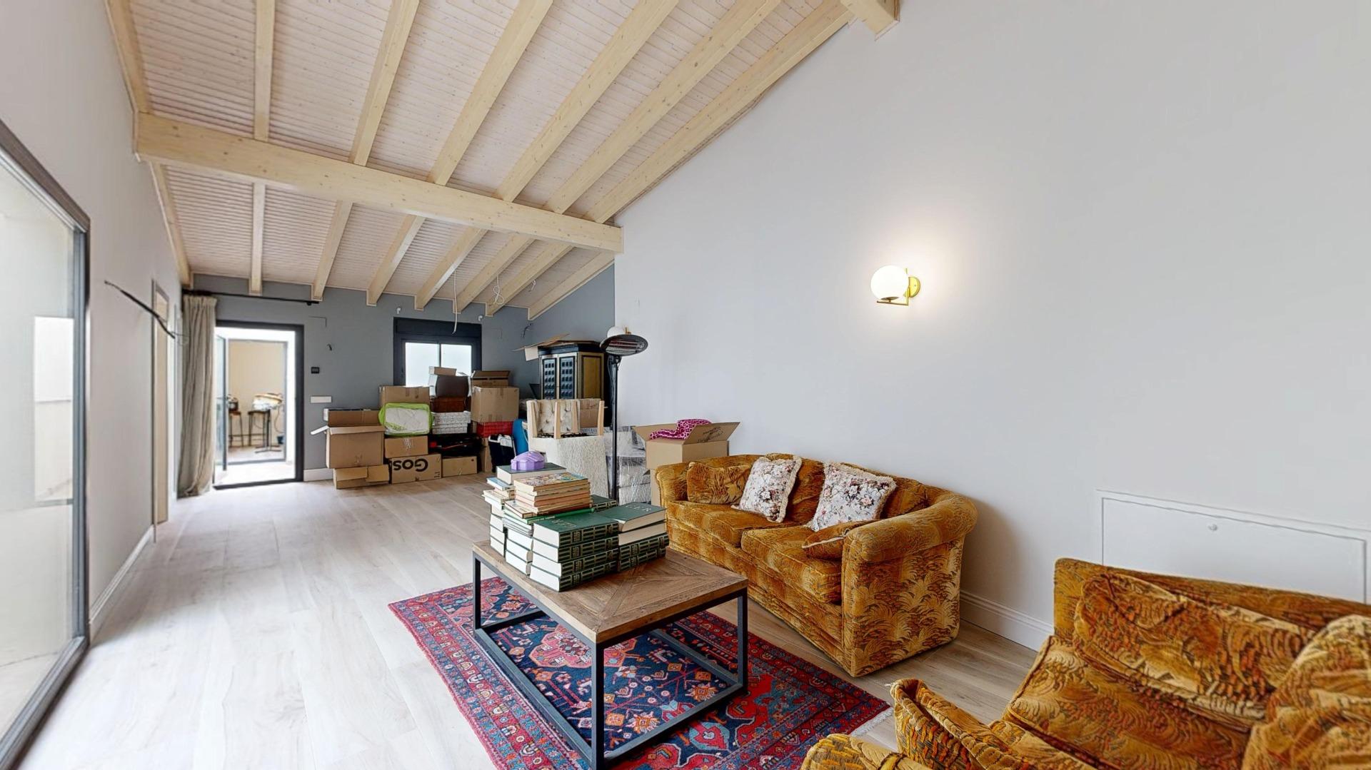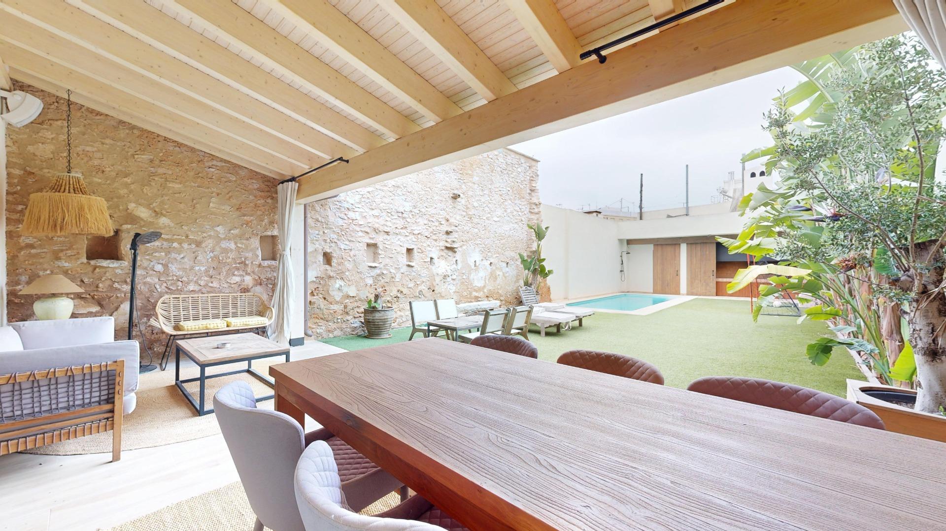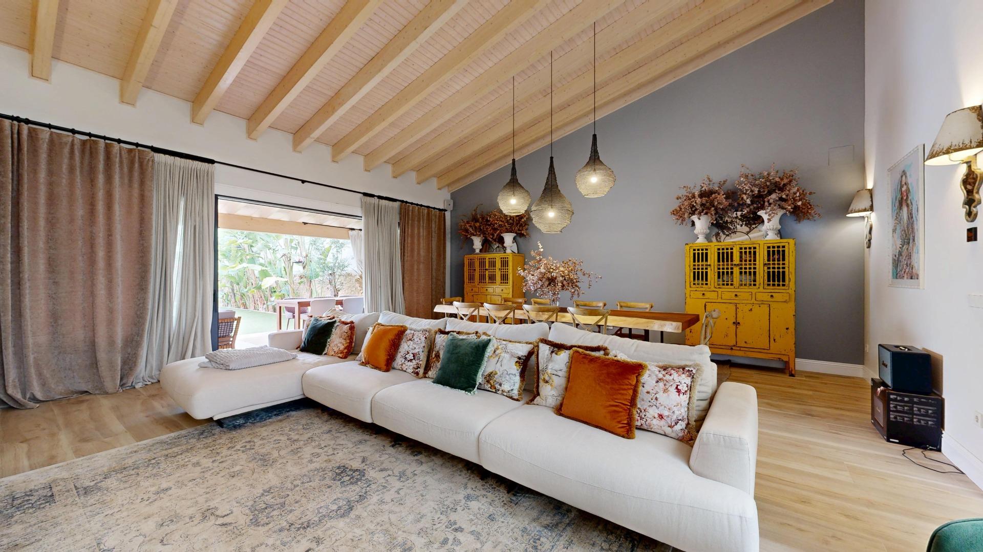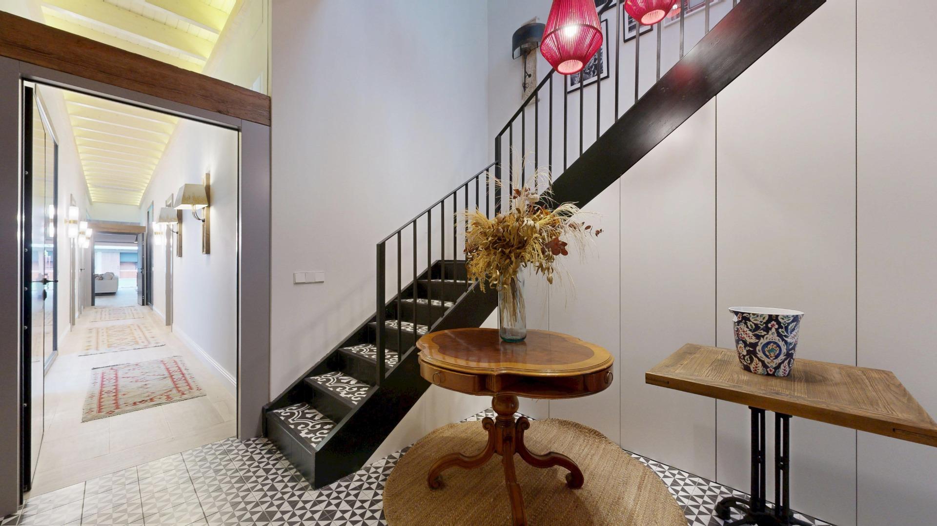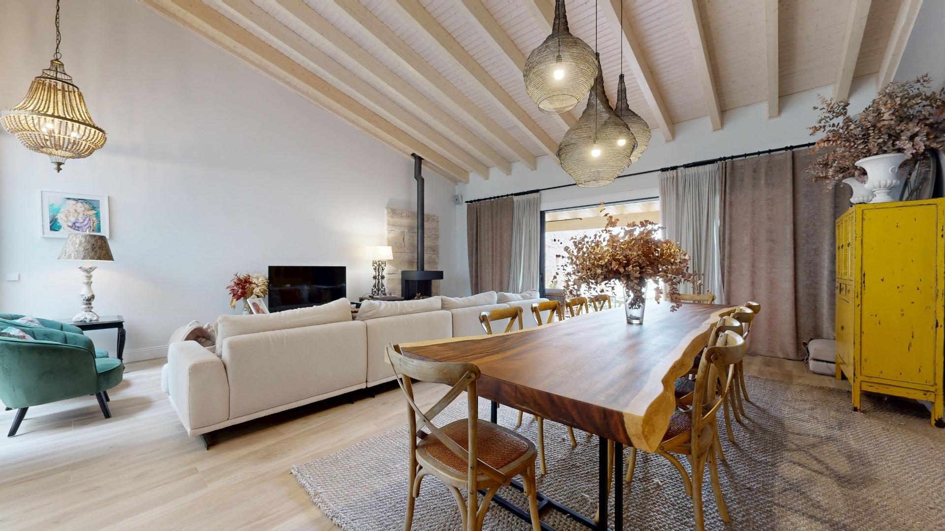 Esta propiedad combina la arquitectura tradicional (fachada histórica y techos altos con vigas de madera laminadas) con comodidades modernas como la luz indirecta, climatización integral y espacios abiertos llenos de luz. La casa es completamente nueva del 2021.